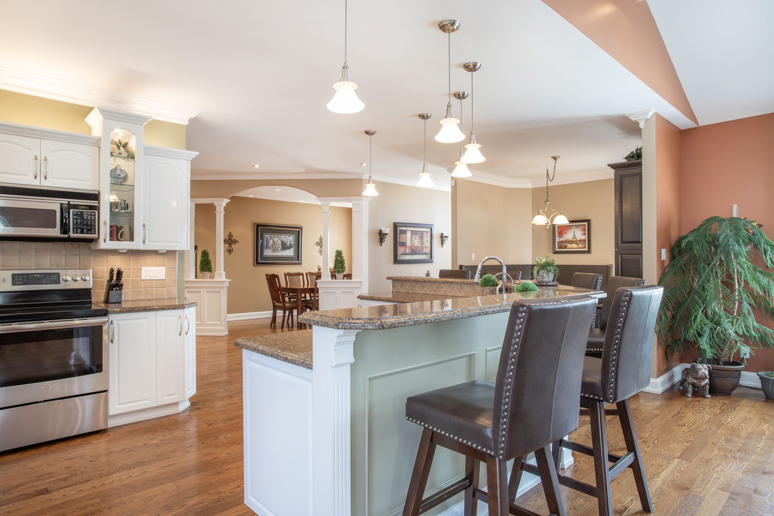 • Entertainer's kitchen with granite countertops and seating for six.