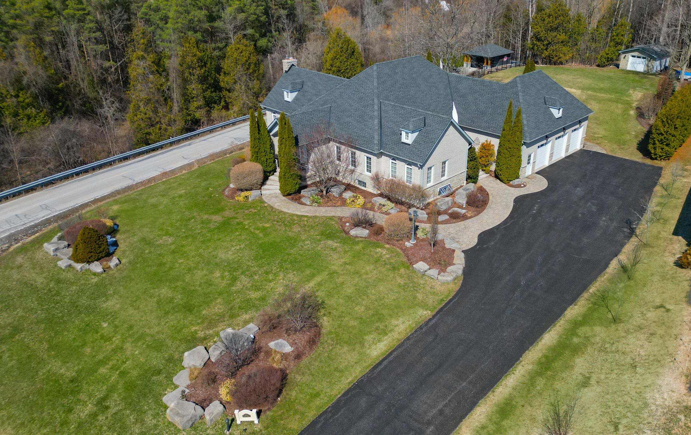 • Custom-built bungalow on a private ravine corner lot, 3/4 of an acre.
