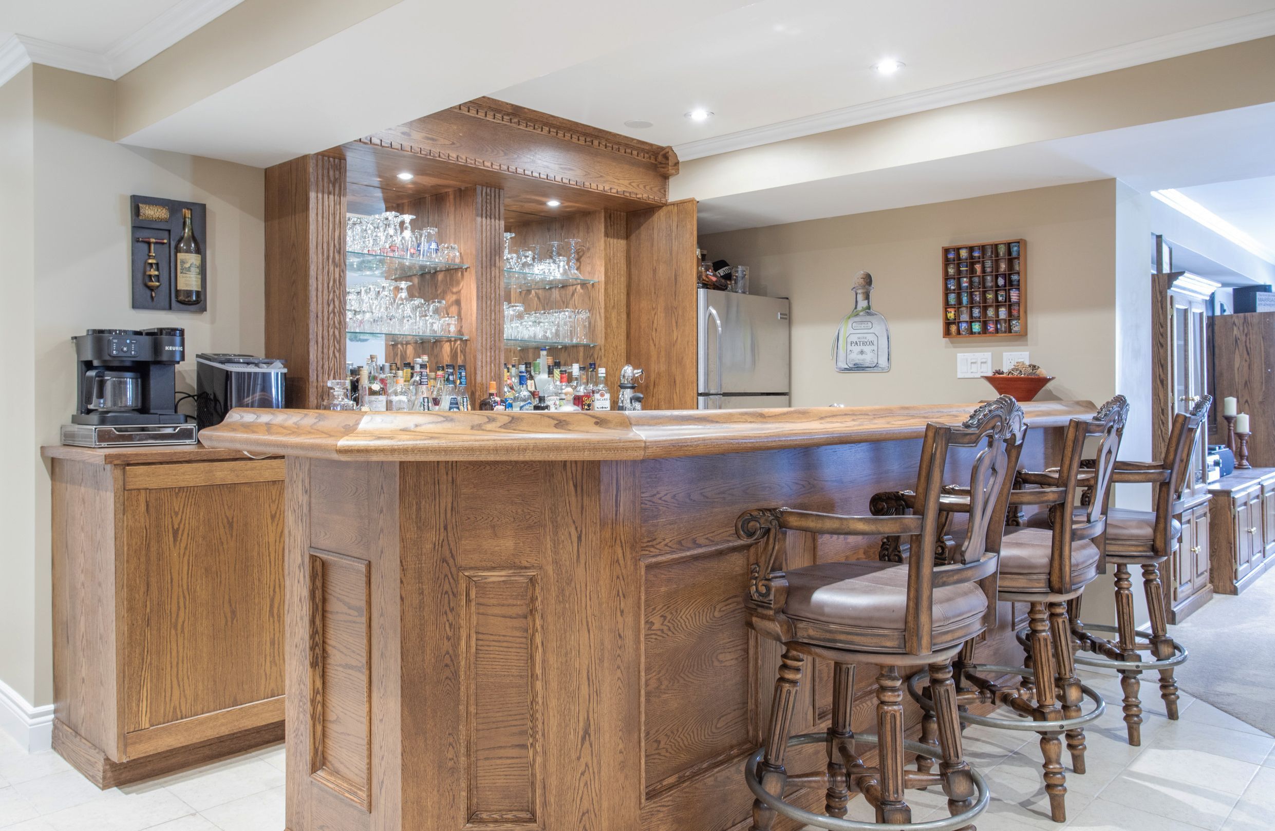 • Finished walkout basement features in-law suite and solid oak bar.