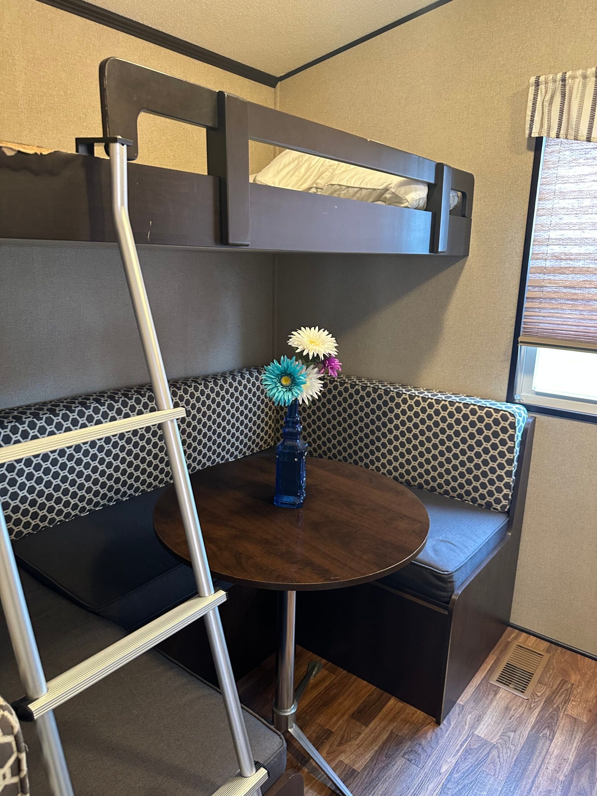 • Unique bunk bed design creates a fun separate area for kids or relaxation.