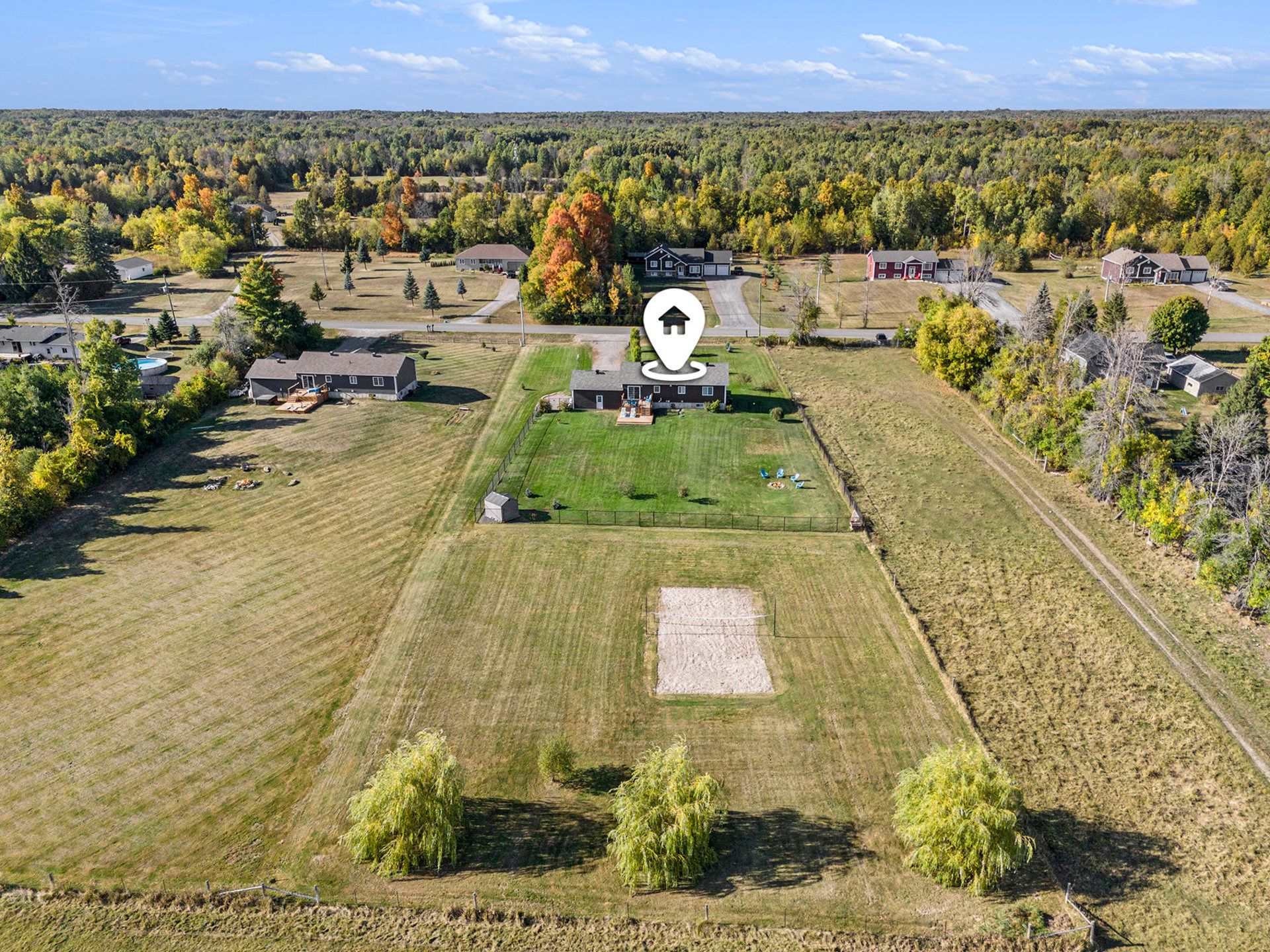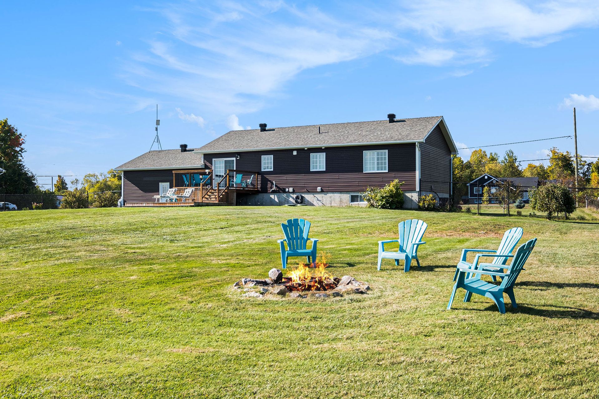 Welcome to a harmonious blend of rural charm and modern elegance on a 1. 5-acre property. Situated between kemptville and spencerville, this high ranch home offers ample space, privacy, and accessibility. Located on a quiet country road amidst scenic farmland, it's just minutes fromhwy 416, providing a 30-minute drive to ottawa and the usa bridge. Inside, the home radiates sophistication and comfort with engineered hardwood floors, porcelain tiles, upgraded trim, lighting, and custom cabinetry with quartz countertops. The open-concept design is ideal for gatherings, whether elegant dinners, family cooking nights, or quiet evenings. The main level features three bedrooms, including a primary suite with a private ensuite, and a stylish guest bathroom, both with quartz countertops. The newly updated lower level suits multigenerational living, with two extra bedrooms, a wet bar, and a kitchenette equipped with a dishwasher and beverage fridge. It also includes a large bathroom, a cozy living area with a propane stove, and a mudroom with access to the garage and backyard. Thoughtfully designed and insulated, it ensures apeaceful and private environment, perfect for guests or big families. Outside, enjoy a landscaped space with a fenced backyard, new deck, and a regulation-sized beach volleyball court. A propane bbq hook-up makes outdoor entertaining a breeze. Additional conveniences include taps on all sides of the house, with some bypassing the water softener, and a drinking water tap in the kitchen. The home features a gener-link system on the hydro meter and a generator that runs on gas or propane. The septic tank was recently emptied in 2024, with risers for easy access. Outdoor amenities also include a trailer parking spot with an electrical plug, a garden shed, and garage door openers on both doors. Don't miss this opportunity to own a slice of country paradise where modern style meets tranquil living
