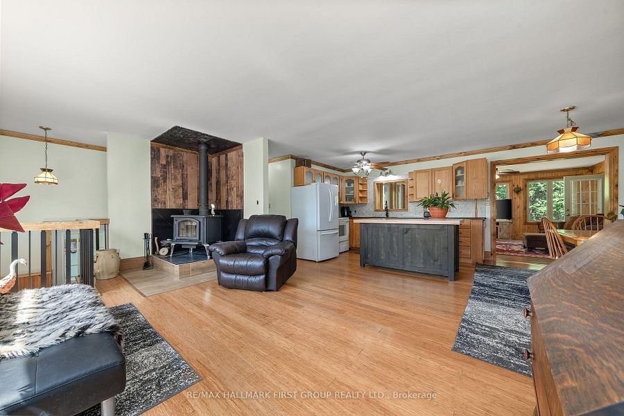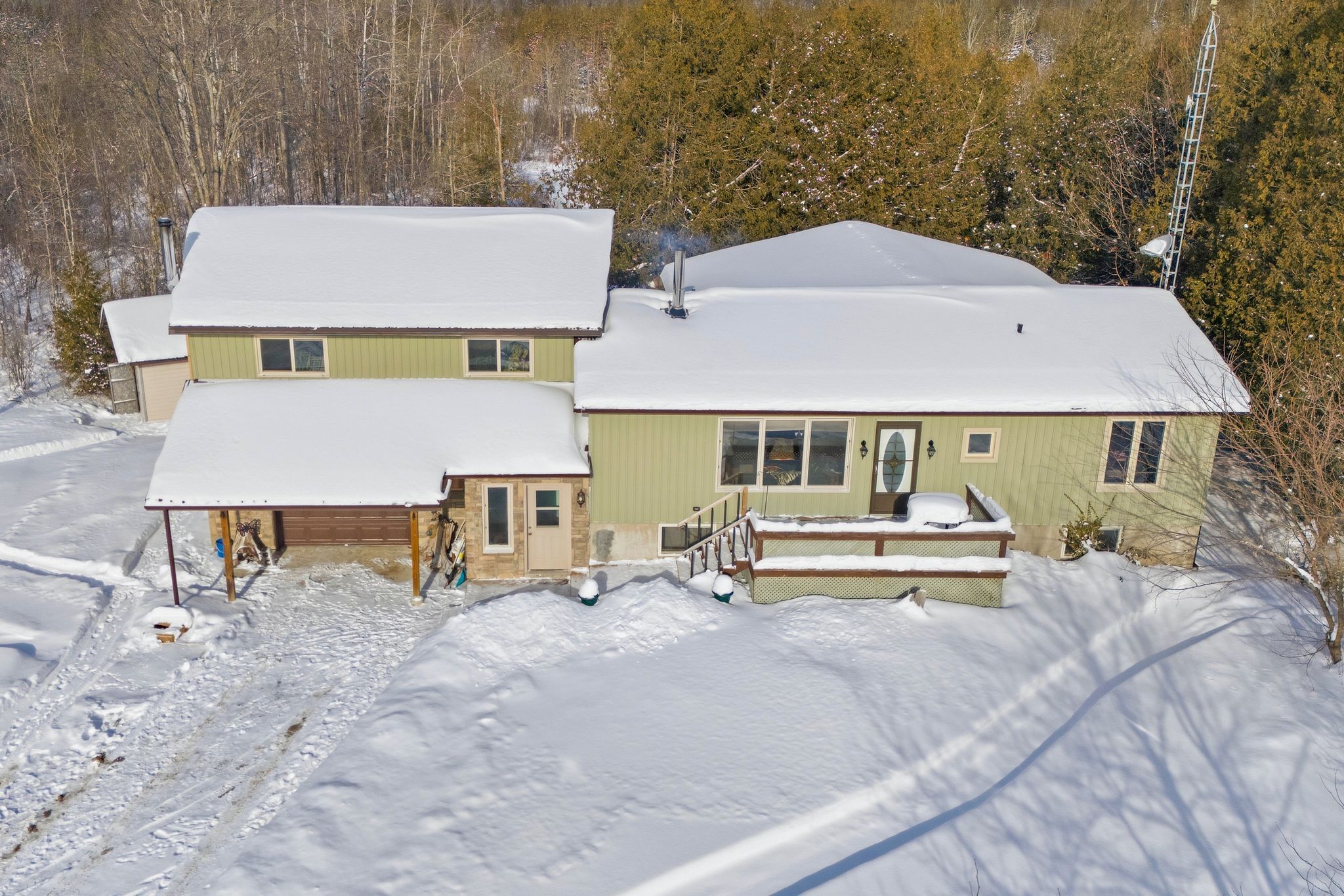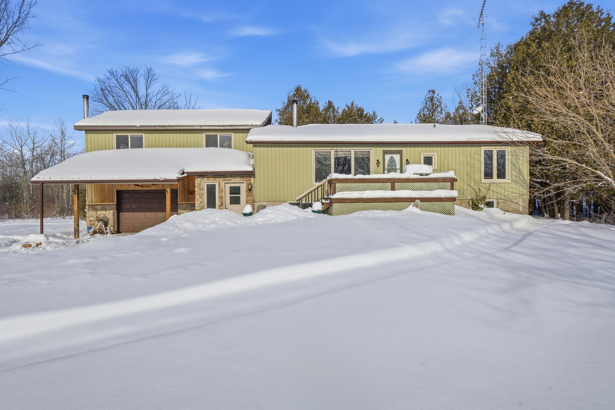 Wide open spaces await at your own private 100-acre oasis! This beautiful treed property offers hiking trails, nature walks, and hunting right in your backyard. The spacious family home sits just off a paved road, only 20 minutes to belleville/401 or 30 minutes to napanee. This lovely raised bungalow boasts over 2,200 sq. Ft. On the main floor, with many upgrades and a move-in ready feel. Step into the open-concept living, dining, and kitchen area, featuring a bright south-facing living room with a walkout to the front deck and a cozy woodstove. The kitchen is perfect for entertaining, with a large center island, while the family room's many windows overlook the backyard. Enjoy mornings in the screened-in porch or relax on the large tiered back deck with both shaded and sunny spots. The main level includes laundry, a 4-piece bath, and two large bedrooms-one with access to the screened porch and a spacious closet. A few steps up and you enter into the impressive owner's suite, which features cathedral wood ceilings, a propane fireplace, private sunroom, 5-piece ensuite with soaker tub and walk-in shower, plus a walk-in closet. The finished lower level offers a roomy rec area, a fourth bedroom (currently a gym), an office or storage room, and plenty of space for games or play. Main heating is propane forced air with two woodstove -one in the house and one in the garage. Additional highlights include a drilled well, metal roofs on the house and storage garage, and a rustic 16x30 ft off-grid cabin in the woods for hunting or quiet escapes. The large attached garage is insulated, heated with a woodstove, and has two overhead doors, perfect for a workshop or tinkering. This immaculate country home is a dream come true-value-packed and ready for you!