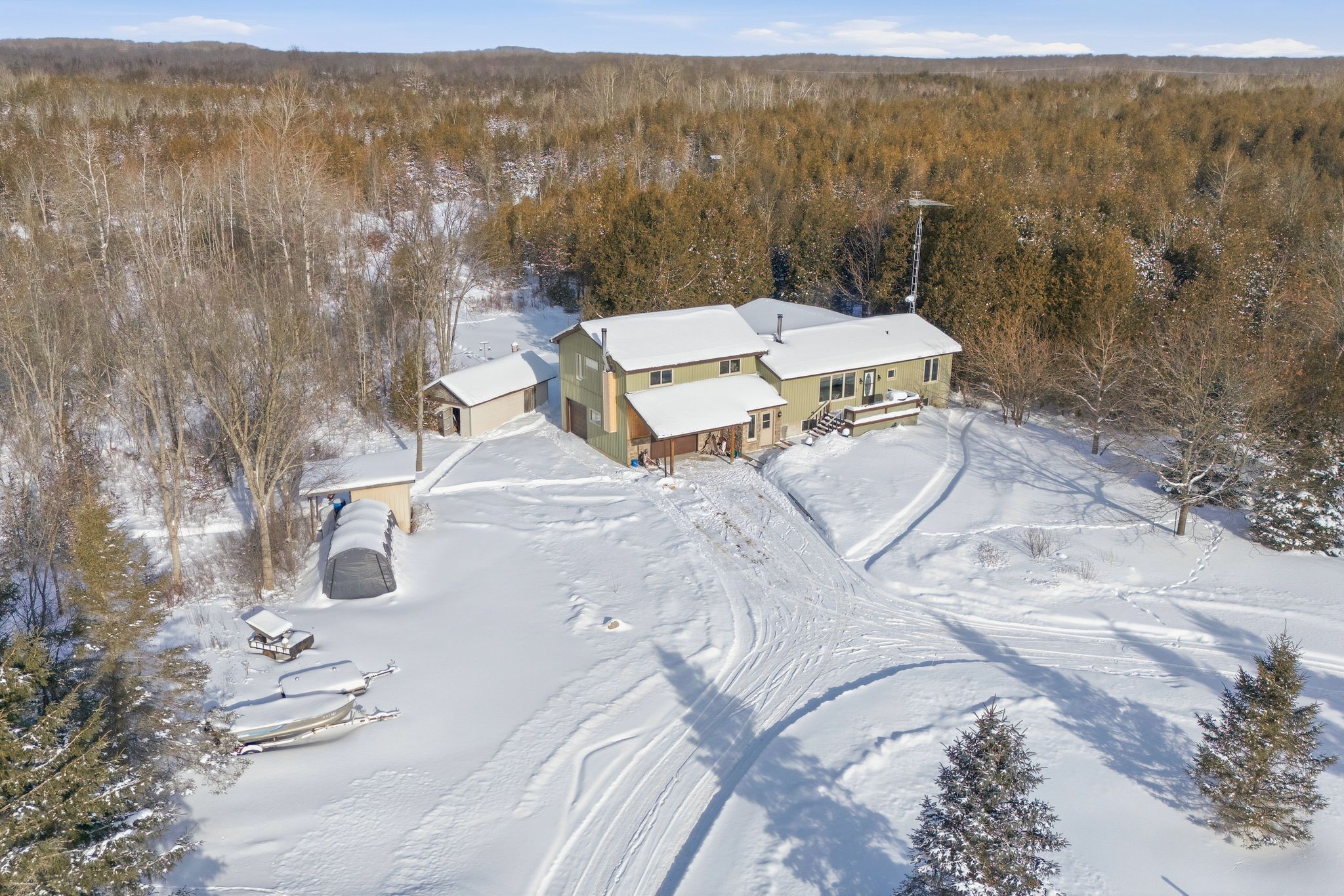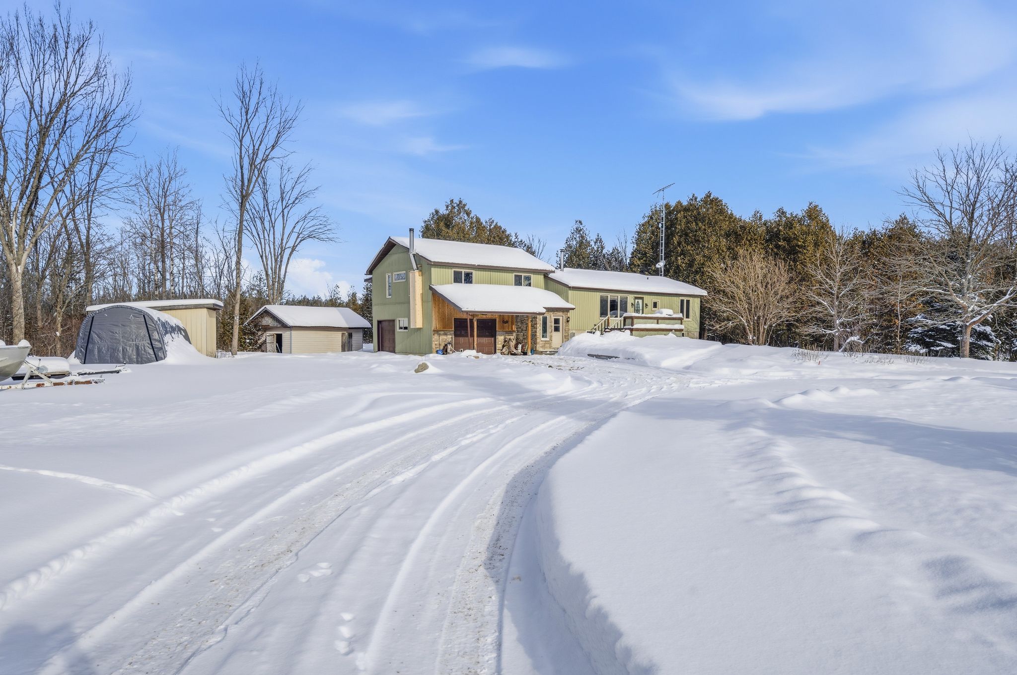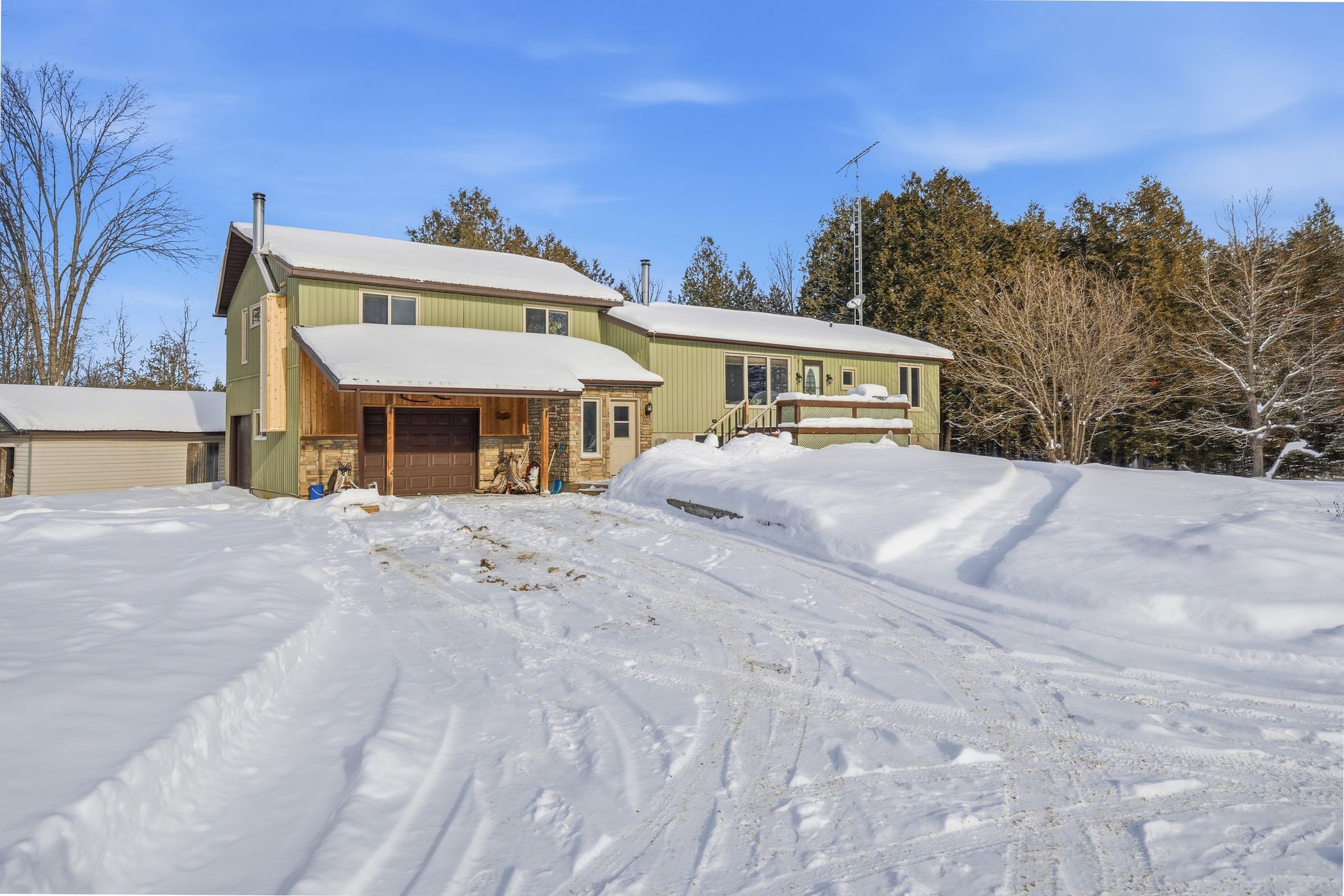 Wide open spaces await at your own private 100-acre oasis! This beautiful treed property offers hiking trails, nature walks, and hunting right in your backyard. The spacious family home sits just off a paved road, only 20 minutes to belleville/401 or 30 minutes to napanee. This lovely raised bungalow boasts over 2,200 sq. Ft. On the main floor, with many upgrades and a move-in ready feel. Step into the open-concept living, dining, and kitchen area, featuring a bright south-facing living room with a walkout to the front deck and a cozy woodstove. The kitchen is perfect for entertaining, with a large center island, while the family room's many windows overlook the backyard. Enjoy mornings in the screened-in porch or relax on the large tiered back deck with both shaded and sunny spots. The main level includes laundry, a 4-piece bath, and two large bedrooms-one with access to the screened porch and a spacious closet. A few steps up and you enter into the impressive owner's suite, which features cathedral wood ceilings, a propane fireplace, private sunroom, 5-piece ensuite with soaker tub and walk-in shower, plus a walk-in closet. The finished lower level offers a roomy rec area, a fourth bedroom (currently a gym), an office or storage room, and plenty of space for games or play. Main heating is propane forced air with two woodstove -one in the house and one in the garage. Additional highlights include a drilled well, metal roofs on the house and storage garage, and a rustic 16x30 ft off-grid cabin in the woods for hunting or quiet escapes. The large attached garage is insulated, heated with a woodstove, and has two overhead doors, perfect for a workshop or tinkering. This immaculate country home is a dream come true-value-packed and ready for you!