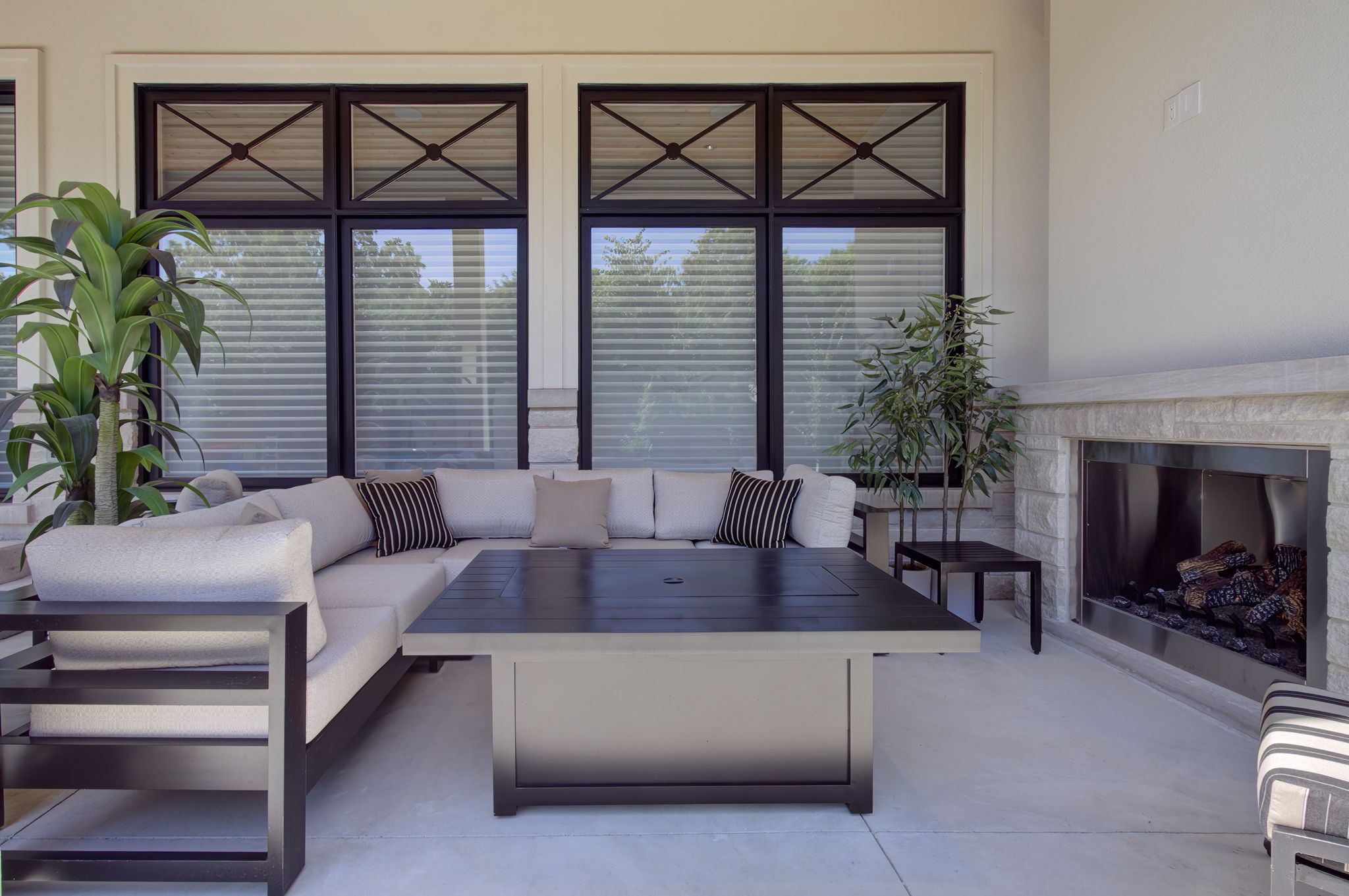 • Expansive covered porch perfect for entertaining with a gas fireplace.