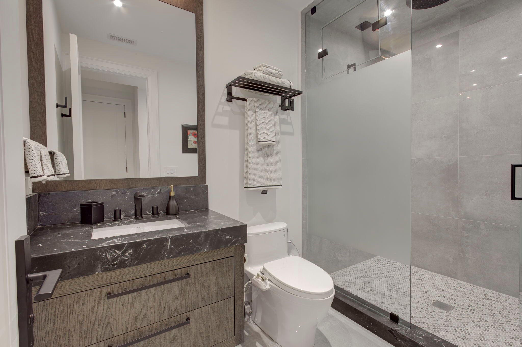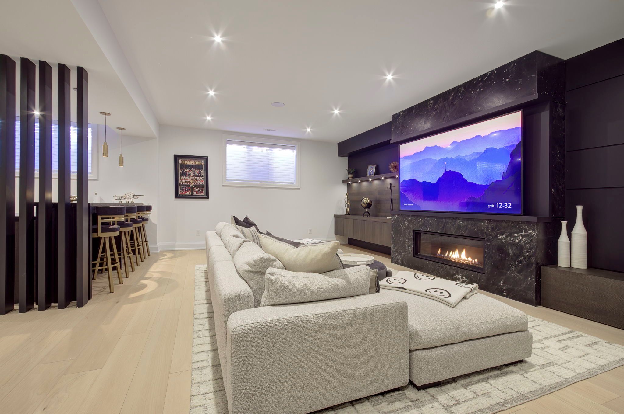 • Fully finished lower level with home theatre, gym, and spa-inspired bathroom.