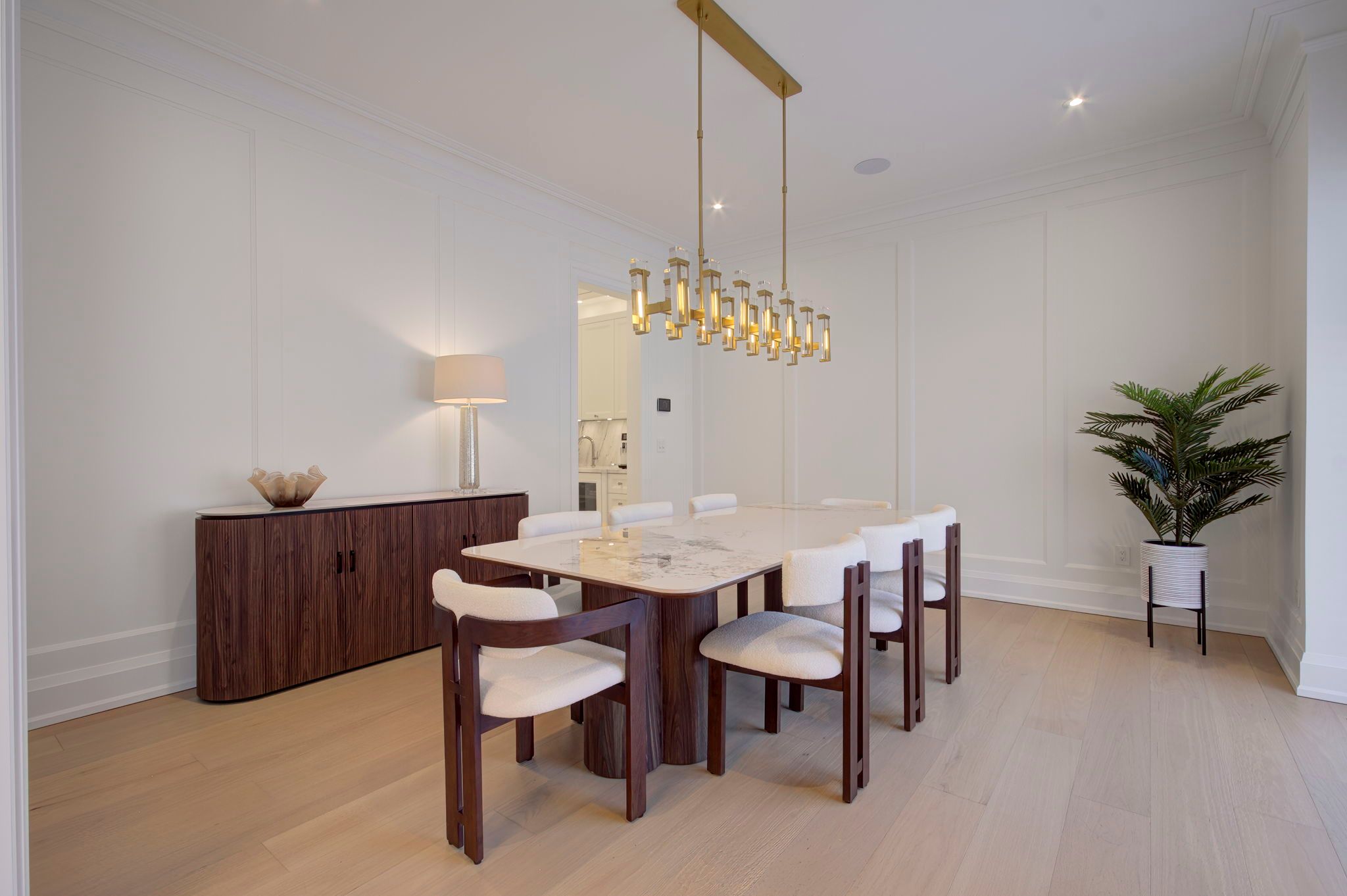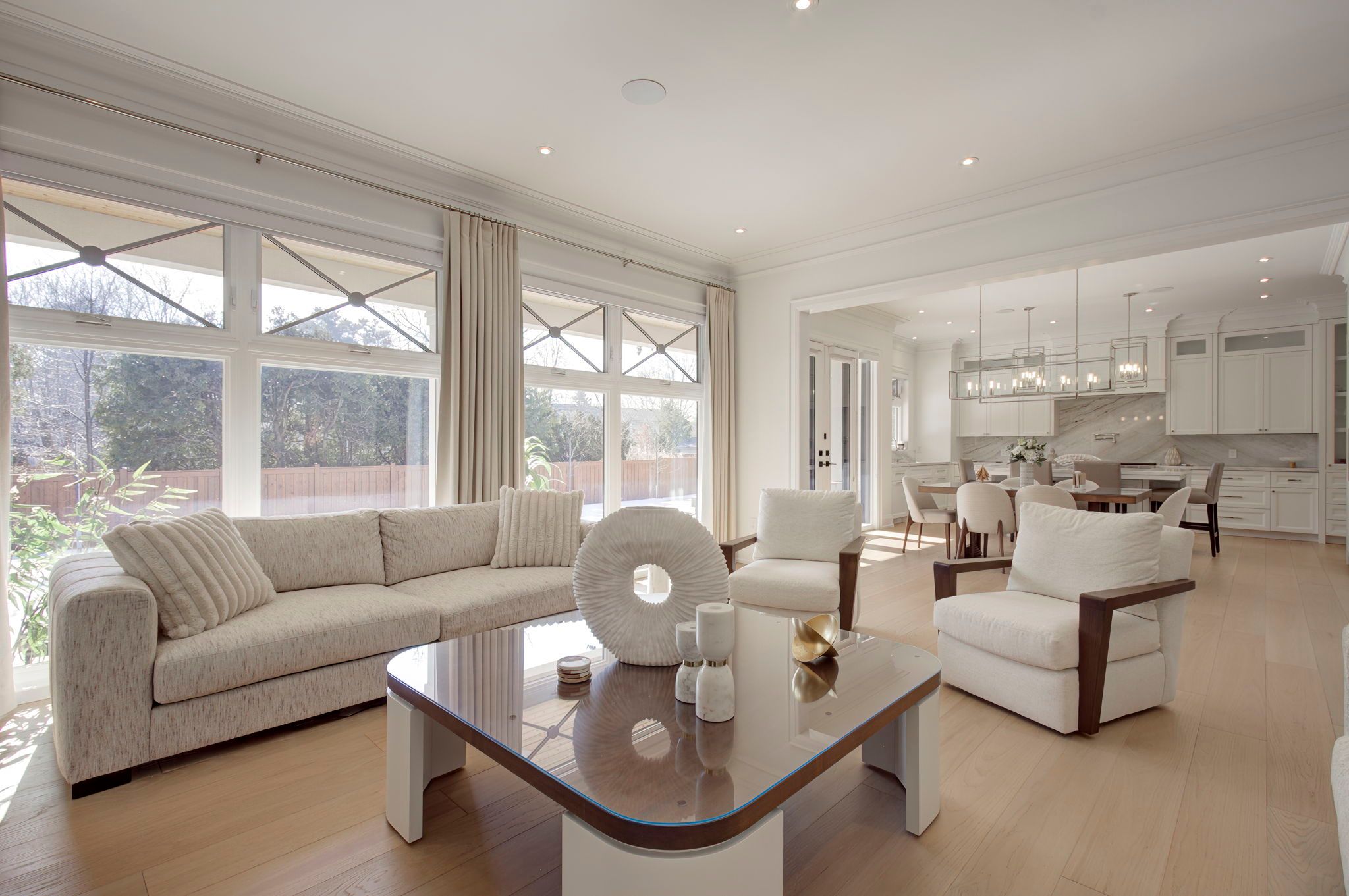 • Chef's kitchen boasts high-end appliances and a separate servery for convenience.