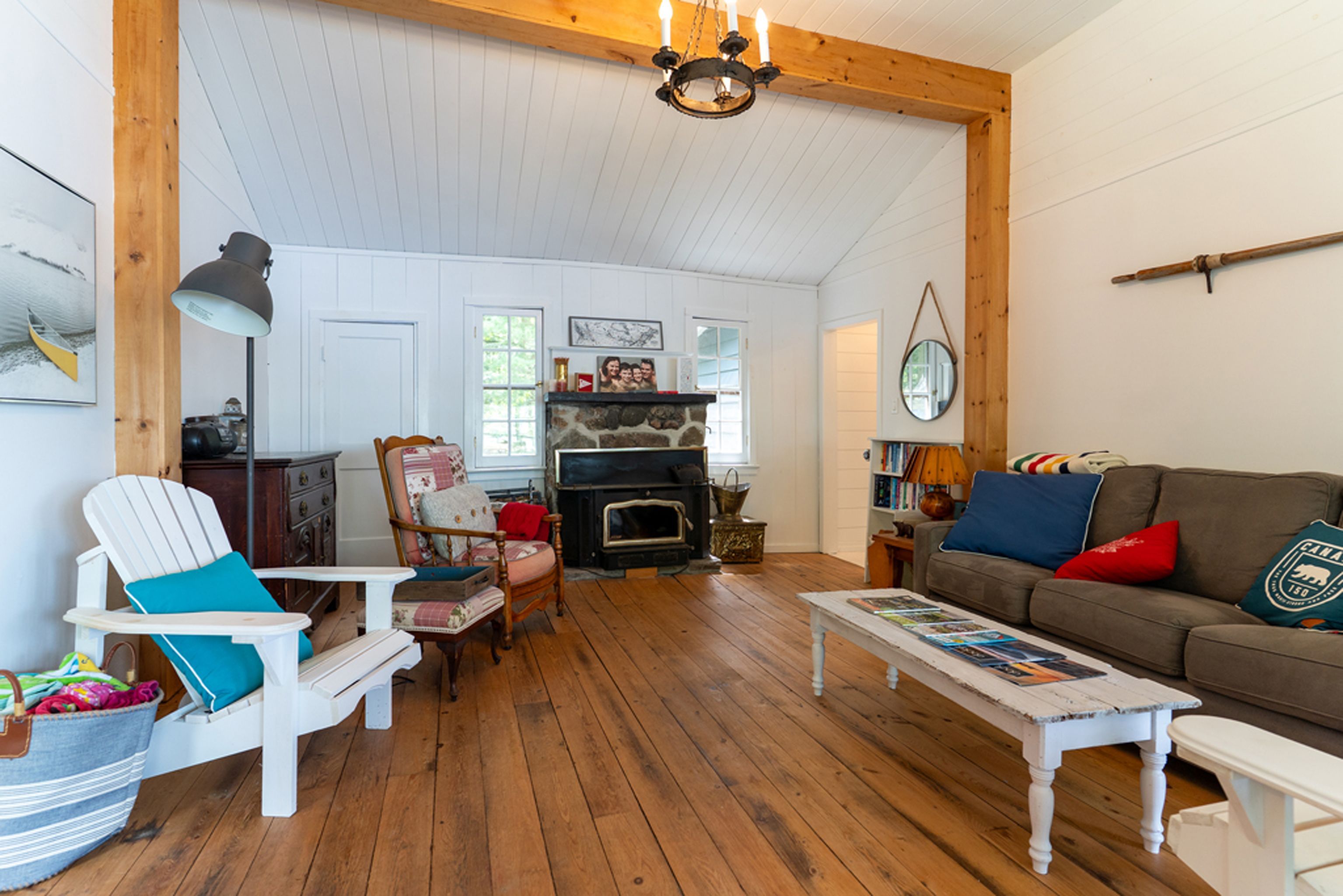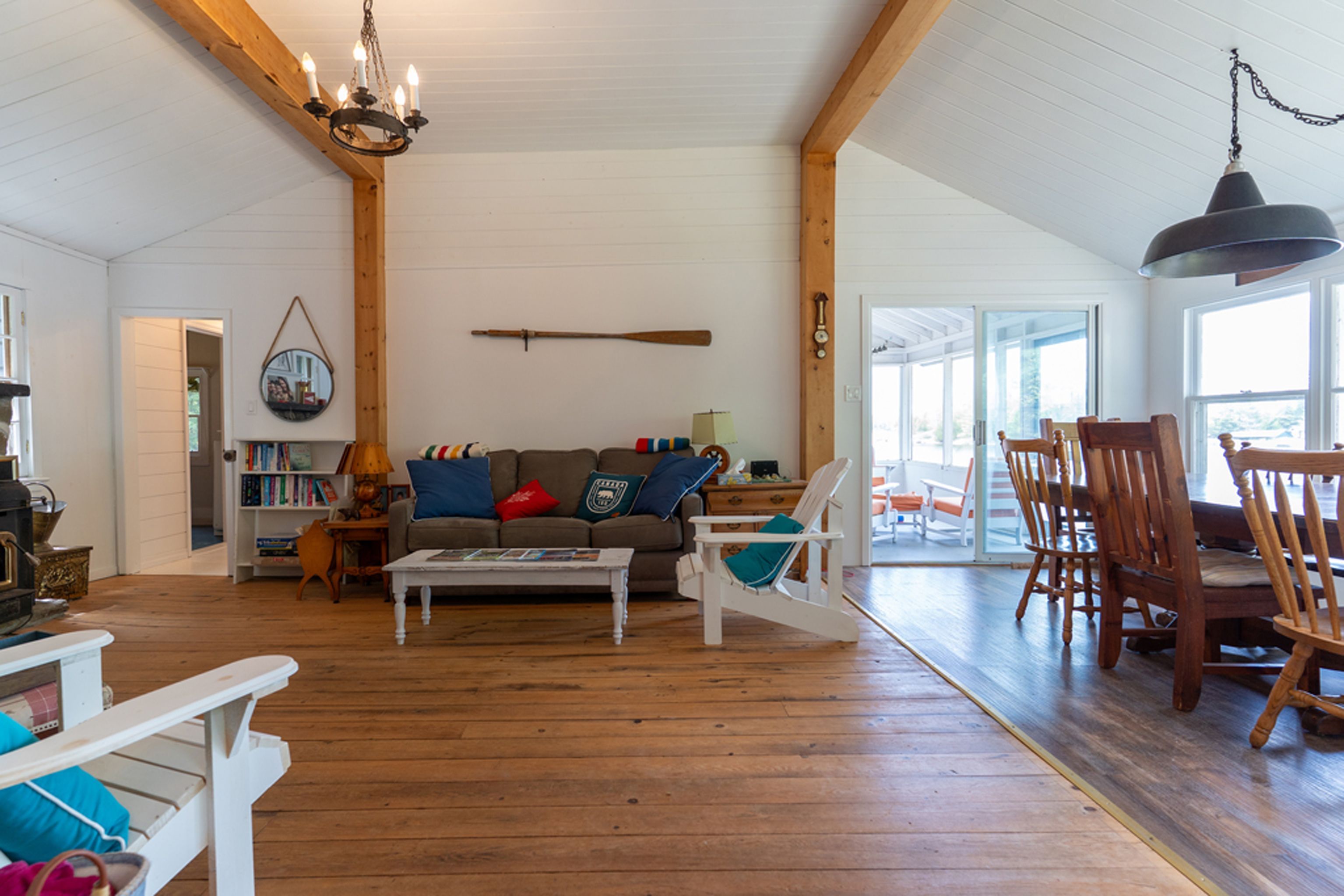 • Main cottage offers 3 bedrooms, open living area, and a screened porch.