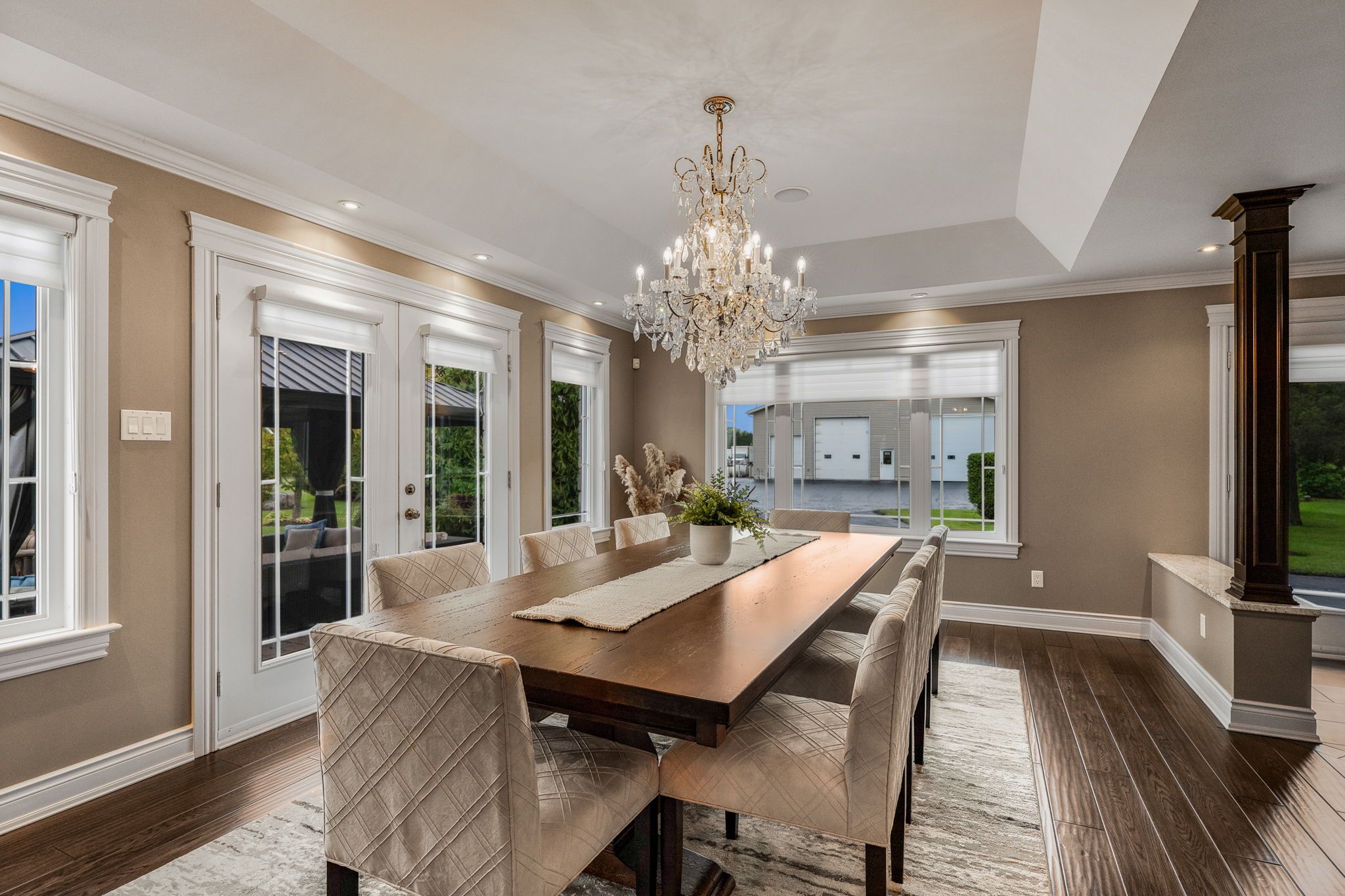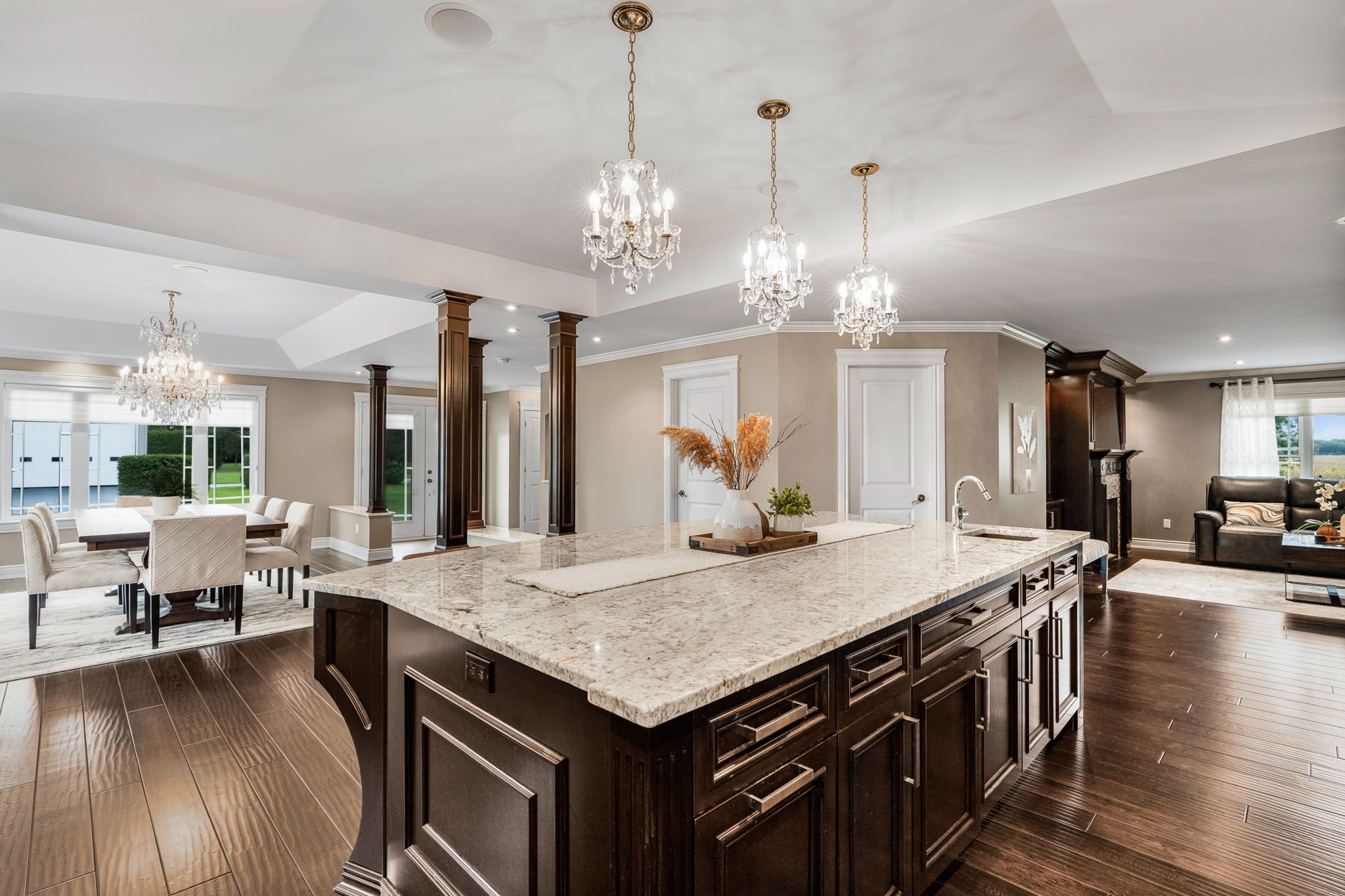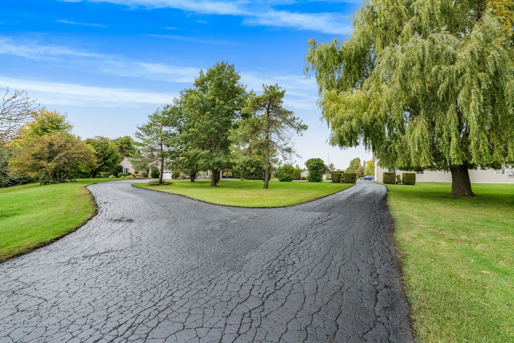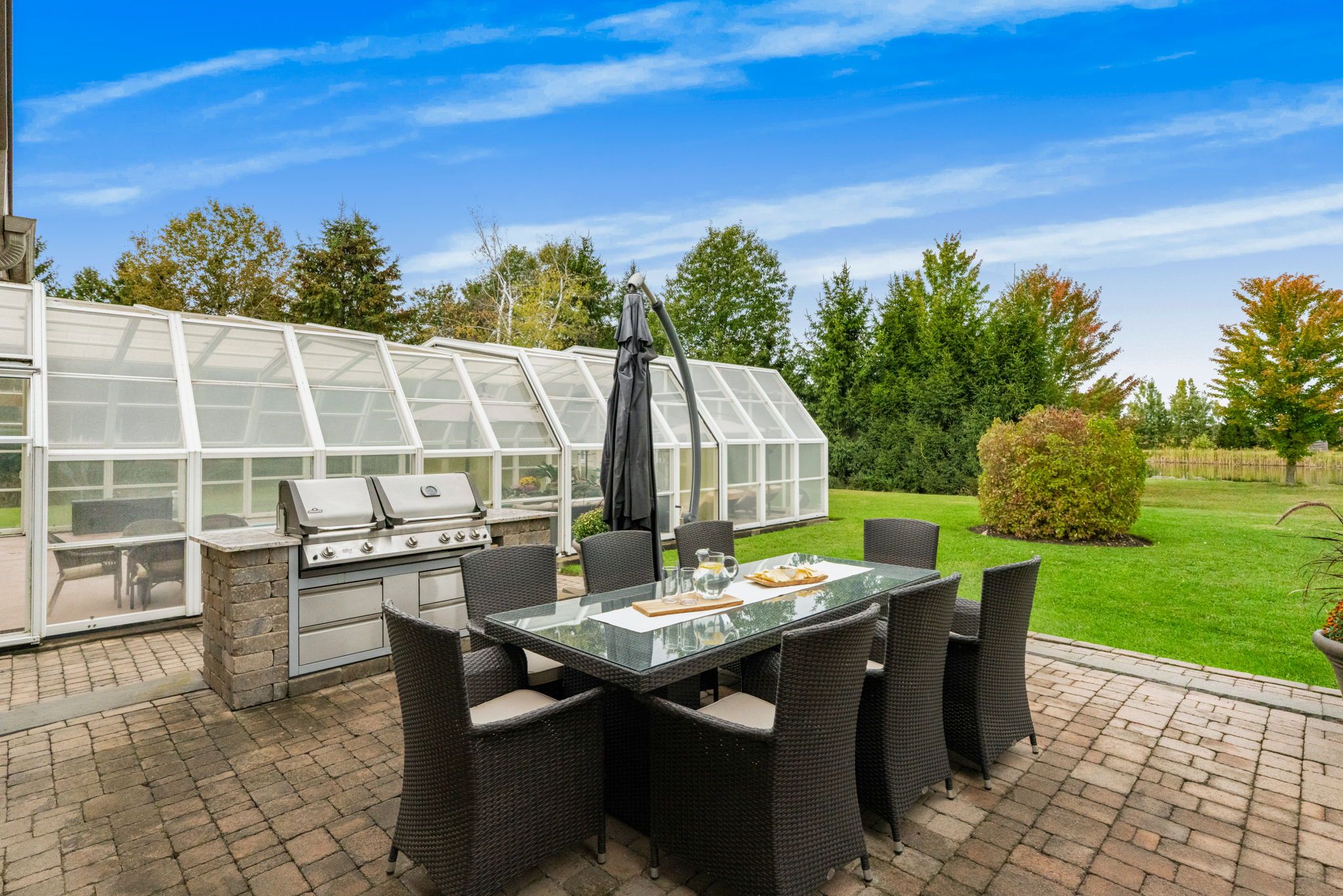 Welcome to this extraordinary estate offering over 6 acres of private countryside living with luxury finishes, extensive outdoor amenities, and exceptional spaces for both entertaining and hobbyists alike. Step inside to find an elegant open-concept main floor featuring a chef-inspired kitchen with rich wood cabinetry, high-end appliances, granite countertops, and a striking stone backsplash. The expansive island with seating flows seamlessly into the bright dining area, highlighted by a crystal chandelier and large windows overlooking the scenic grounds. The inviting living room boasts custom built-ins and a cozy natural gas fireplace-perfect for family gatherings. The home offers 4 bedrooms filled with natural light, stylish bathrooms with modern vanities, and a lower-level retreat complete with heated floors for year-round comfort. Outdoors, enjoy resort-style living with an all-season in-ground pool under a retractable enclosure, multiple lounge areas, and a peaceful private pond. For the hobbyist or entrepreneur, this property includes a 2,800 sq. Ft. Heated garage plus an additional 1,600 sq. Ft. Garage-ideal for car enthusiasts, a workshop, or storing recreational toys. Located just minutes from town amenities yet surrounded by nature, this estate combines luxury, functionality, and tranquility. This is more than a home-its a lifestyle. Serious inquiries only and must be pre-approved before scheduling a visit.