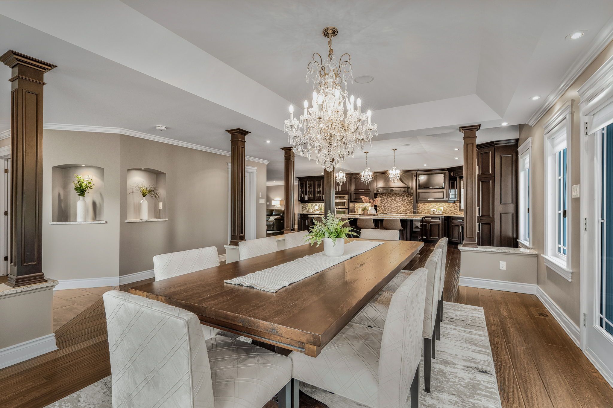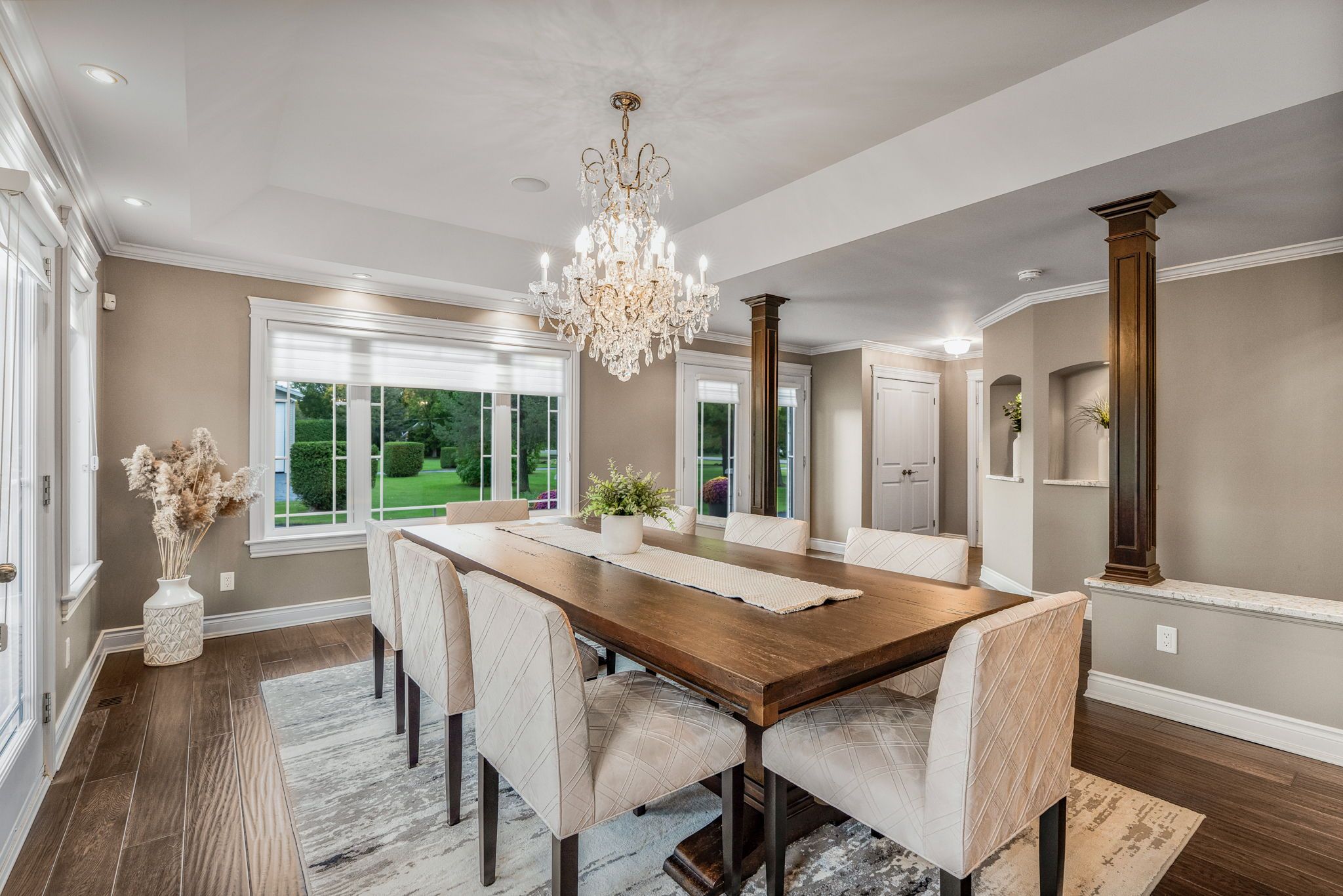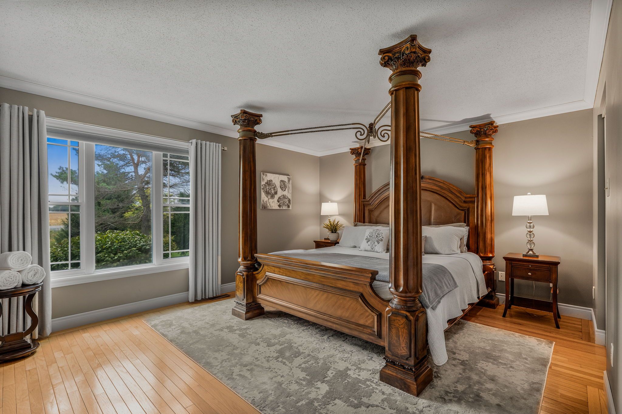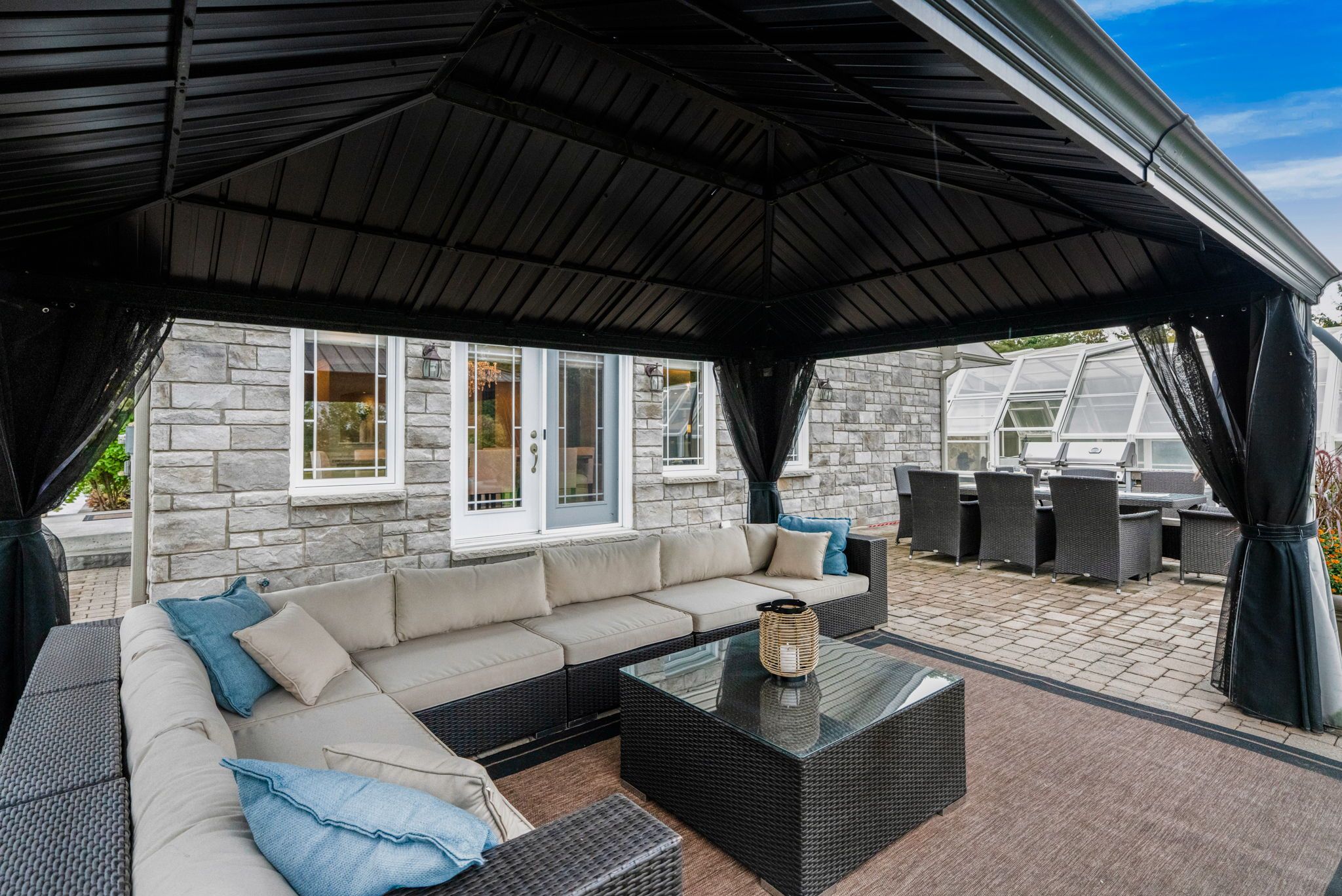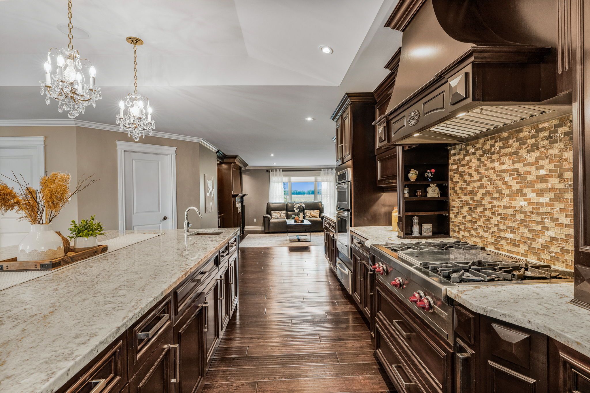 Welcome to this extraordinary estate offering over 6 acres of private countryside living with luxury finishes, extensive outdoor amenities, and exceptional spaces for both entertaining and hobbyists alike. Step inside to find an elegant open-concept main floor featuring a chef-inspired kitchen with rich wood cabinetry, high-end appliances, granite countertops, and a striking stone backsplash. The expansive island with seating flows seamlessly into the bright dining area, highlighted by a crystal chandelier and large windows overlooking the scenic grounds. The inviting living room boasts custom built-ins and a cozy natural gas fireplace-perfect for family gatherings. The home offers 4 bedrooms filled with natural light, stylish bathrooms with modern vanities, and a lower-level retreat complete with heated floors for year-round comfort. Outdoors, enjoy resort-style living with an all-season in-ground pool under a retractable enclosure, multiple lounge areas, and a peaceful private pond. For the hobbyist or entrepreneur, this property includes a 2,800 sq. Ft. Heated garage plus an additional 1,600 sq. Ft. Garage-ideal for car enthusiasts, a workshop, or storing recreational toys. Located just minutes from town amenities yet surrounded by nature, this estate combines luxury, functionality, and tranquility. This is more than a home-its a lifestyle. Serious inquiries only and must be pre-approved before scheduling a visit.