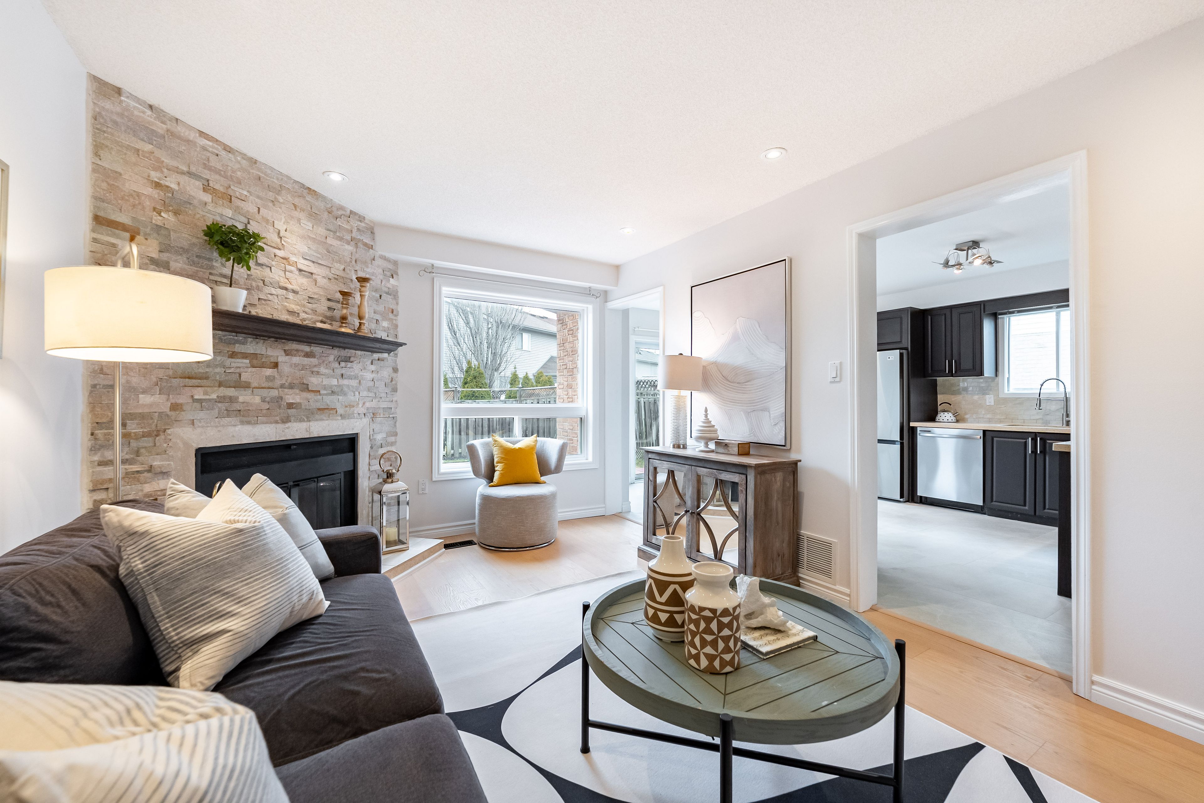 Welcome to this beautifully updated 3-bedroom home offering a perfect blend of modern finishes and everyday comfort. The bright, open-concept living and dining area is enhanced by large windows that fill the space with natural light, creating a warm and inviting setting for both relaxing and entertaining. The family room flows seamlessly into the kitchen and features a cozy fireplace-ideal for gatherings with family and friends. The kitchen is equipped with brand new stainless steel appliances and elegant quartz countertops, combining style and functionality. The main floor showcases brand new engineered hardwood flooring and brand new large-format porcelain tiles for a sleek, contemporary look. This home also features updated washrooms, upgraded built-in closets, and stylish light fixtures throughout. The newly renovated basement rec room offers versatile additional living space, perfect for a home office, media room, or play area. Freshly painted throughout, this move-in ready home is ready for you to enjoy from day one. Ideally located close to shopping, restaurants, parks, and places of worship, with convenient access to pickering town centre, pickering go station, and highway 401, commuting is effortless. Offering an exceptional balance of comfort, style, and convenience, this is a home you won't want to miss!