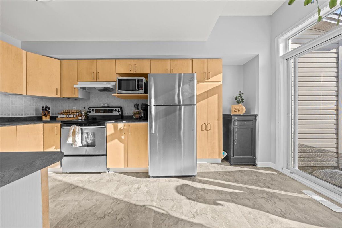 Welcome to this bright and beautifully updated 3-bedroom townhome with no rear neighbours, backing onto greenspace. Thoughtfully maintained and move-in ready, this home offers excellent flow, abundant natural light, and a calm, airy feel throughout. Recent upgrades include luxury vinyl tile in the kitchen and vinyl plank flooring on the staircase and second-floor hallway (jan 2026), along with new furnace, a/c, and hot water tank (july 2023). The bedrooms, bathrooms and main floor ceiling was freshly painted in nov 2024, and all curtains and rods are brand new and included. The main floor living room and kitchen are filled with light thanks to large windows overlooking the fenced backyard with direct access to greenspace - perfect for pets, relaxing or entertaining. This floor also includes a dedicated dining area, offering a comfortable and functional space for everyday meals and entertaining. Upstairs, the tranquil primary bedroom features a large window, walk-in closet, and 3-piece ensuite with tub/shower combo. Two additional bedrooms and a full family bath complete the upper level. The finished lower level offers a cozy family room with gas fireplace, convenient laundry closet, and ample storage space. A fantastic opportunity to enjoy comfort, privacy, and modern updates in a well-established orleans neighbourhood, close to excellent schools, parks, shopping, transit routes, and everyday amenities, with easy access to recreation, dining, and highway 174.