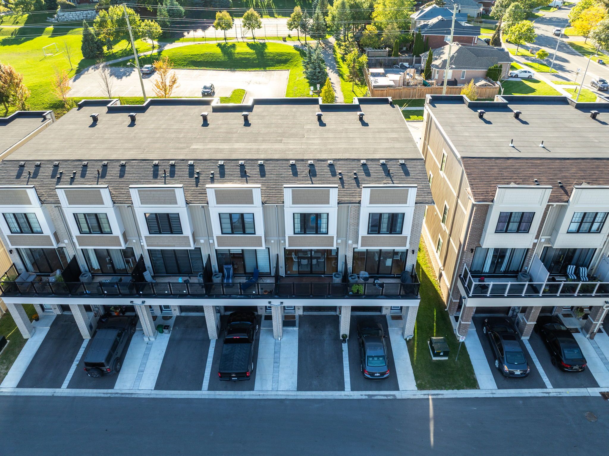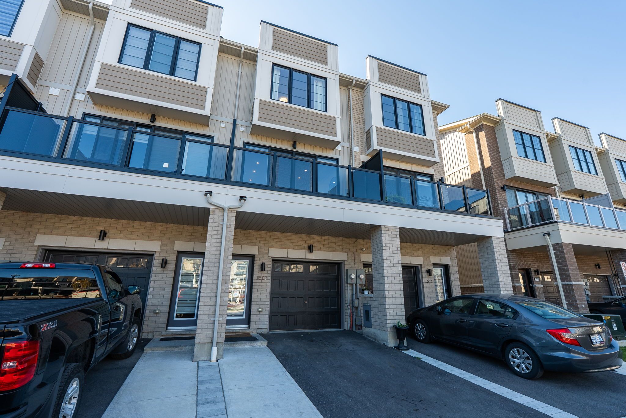 Welcome to this versatile 4-bedroom, 3-bathroom townhouse in one of bowmanville's most desirable communities, perfect for end-users, investors, and multi-generational families alike. The ground level offers a self-contained unit with its own private entrance, complete with a bedroom, full bathroom, laundry, and a modern kitchenette featuring quartz countertops. Already licensed for airbnb and averaging $1,900/month, this space provides excellent income potential or the ideal in-law suite. Upstairs, the bright and open main level is filled with natural light and 9-foot ceilings. The modern kitchen boasts quartz countertops, stainless steel appliances, a large island, pot lights, and a walkout to a balcony overlooking a peaceful parkette. The living area features large windows and a cozy fireplace, creating a welcoming space to entertain or unwind. The upper level offers three generously sized bedrooms with soaring ceilings and two full bathrooms. The primary retreat includes a walk-in closet and a stylish 4-piece ensuite, while another bedroom enjoys its own private balcony. Additional highlights include an attached garage, a private driveway, and low potl fees. A sought-after location near schools, shopping, and transit routes makes this property a smart choice for both living and investing.