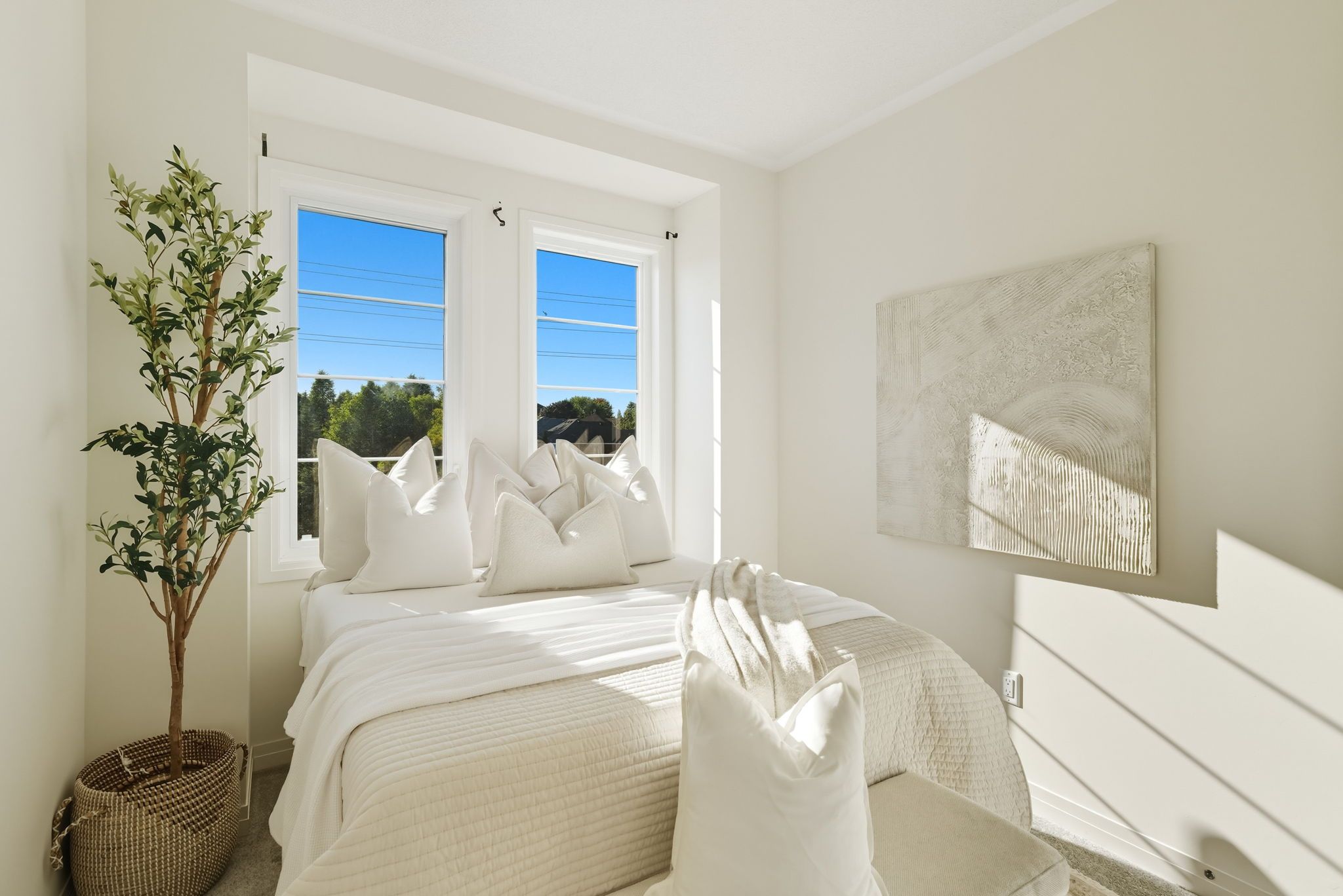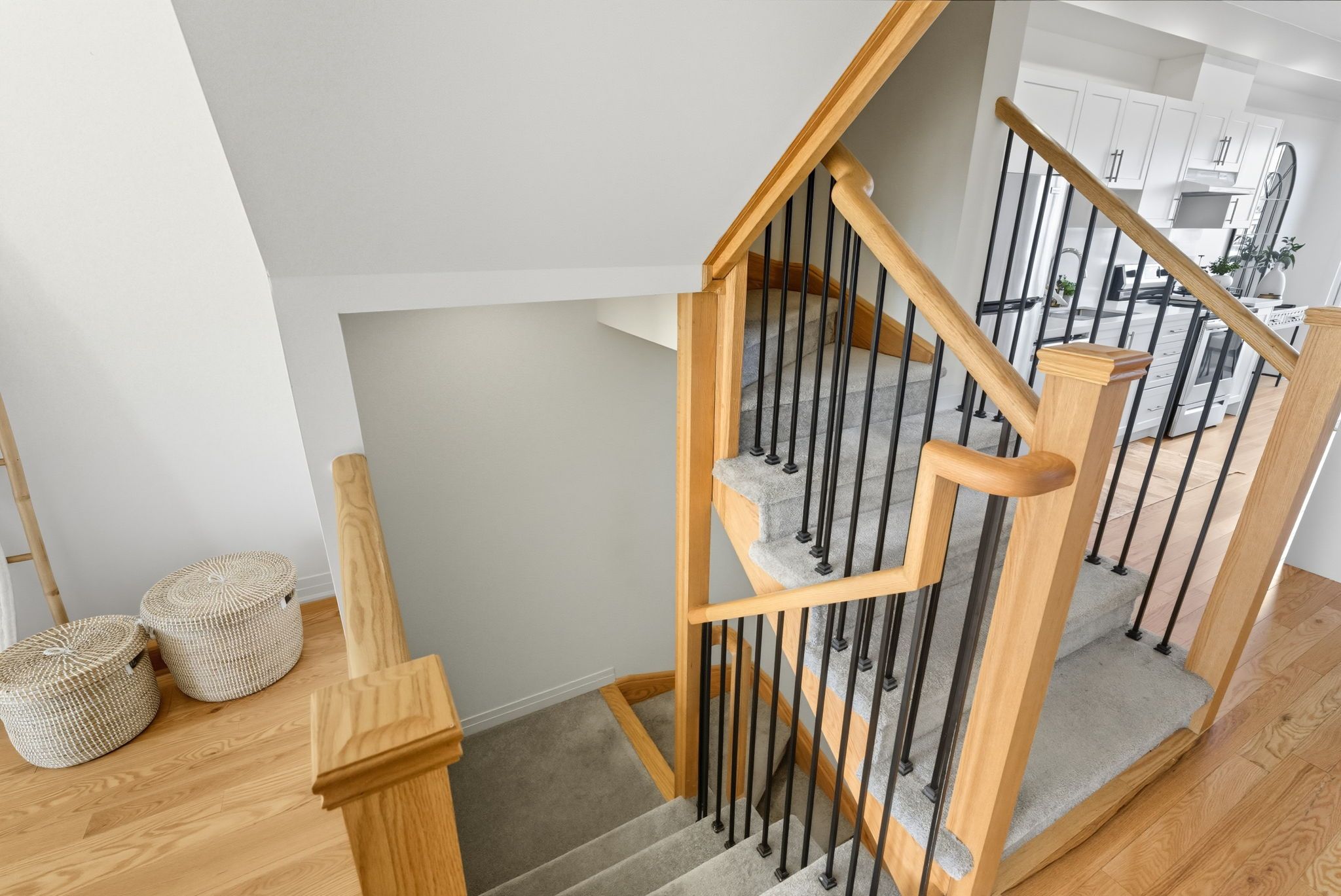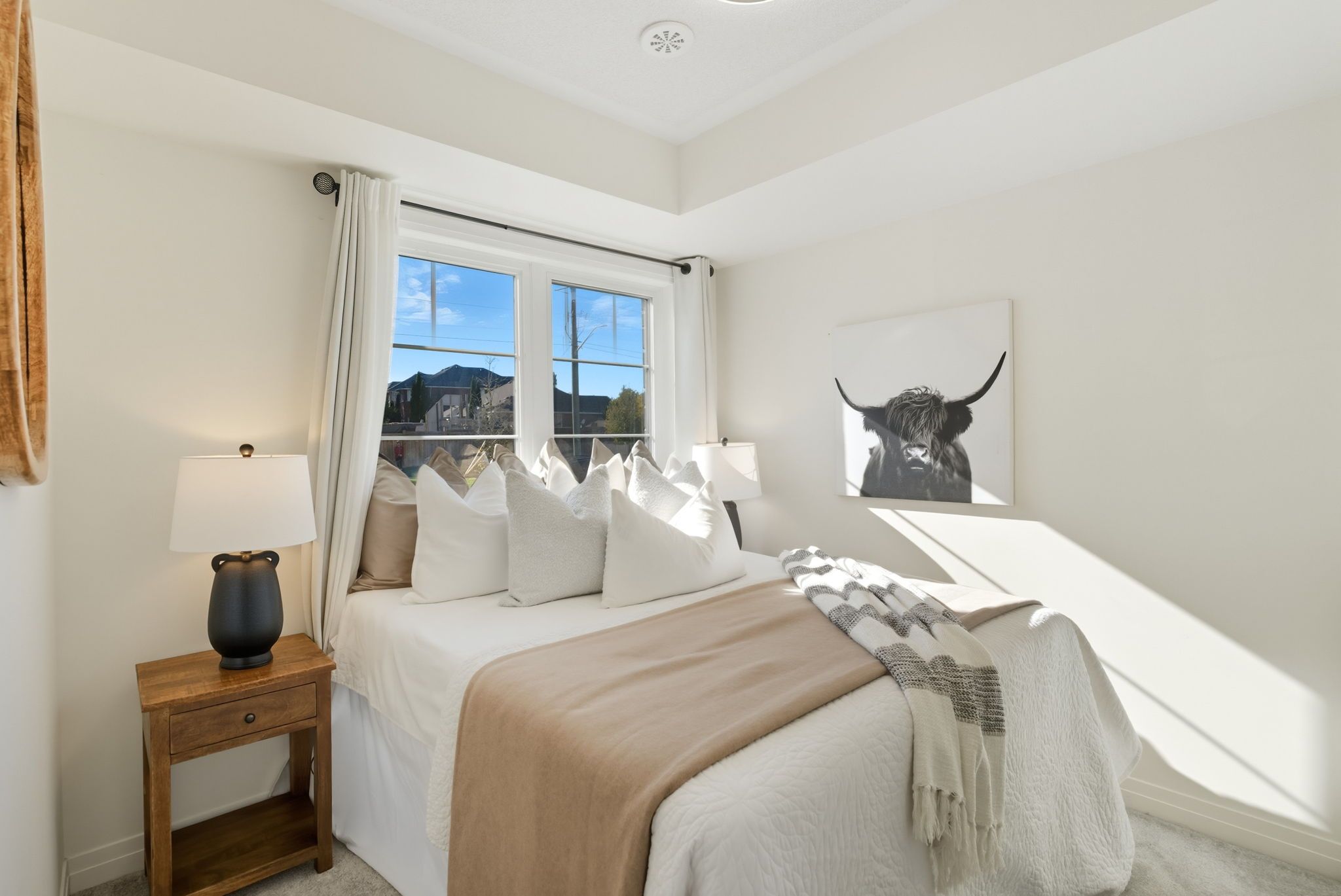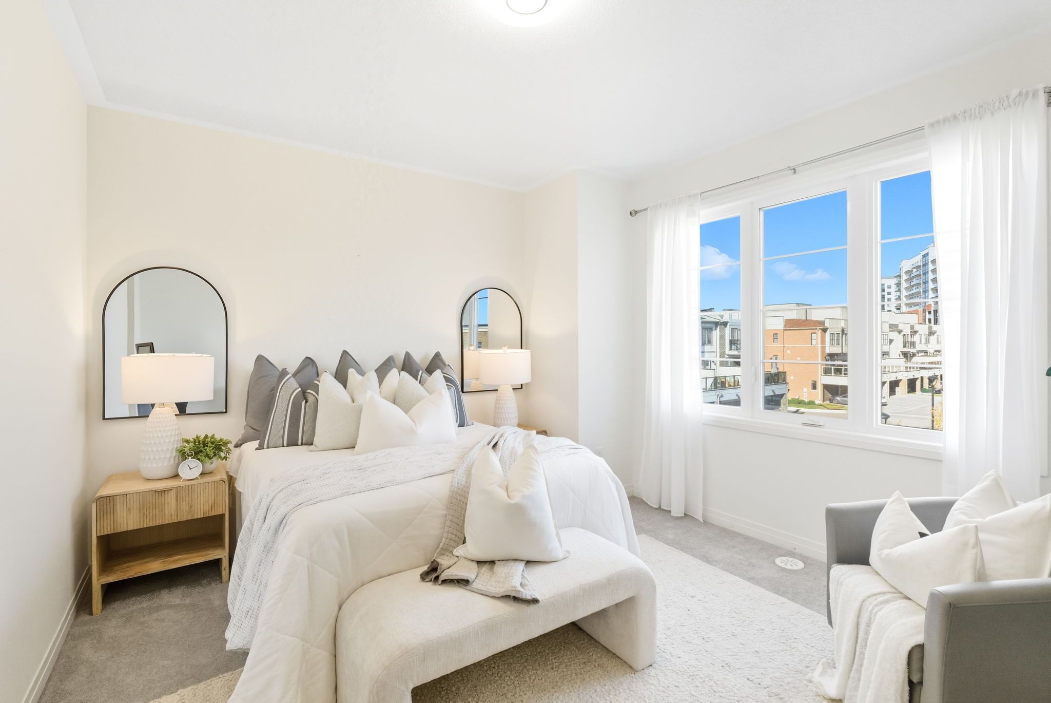 • Three large bedrooms on the upper level with ample natural light and high ceilings.