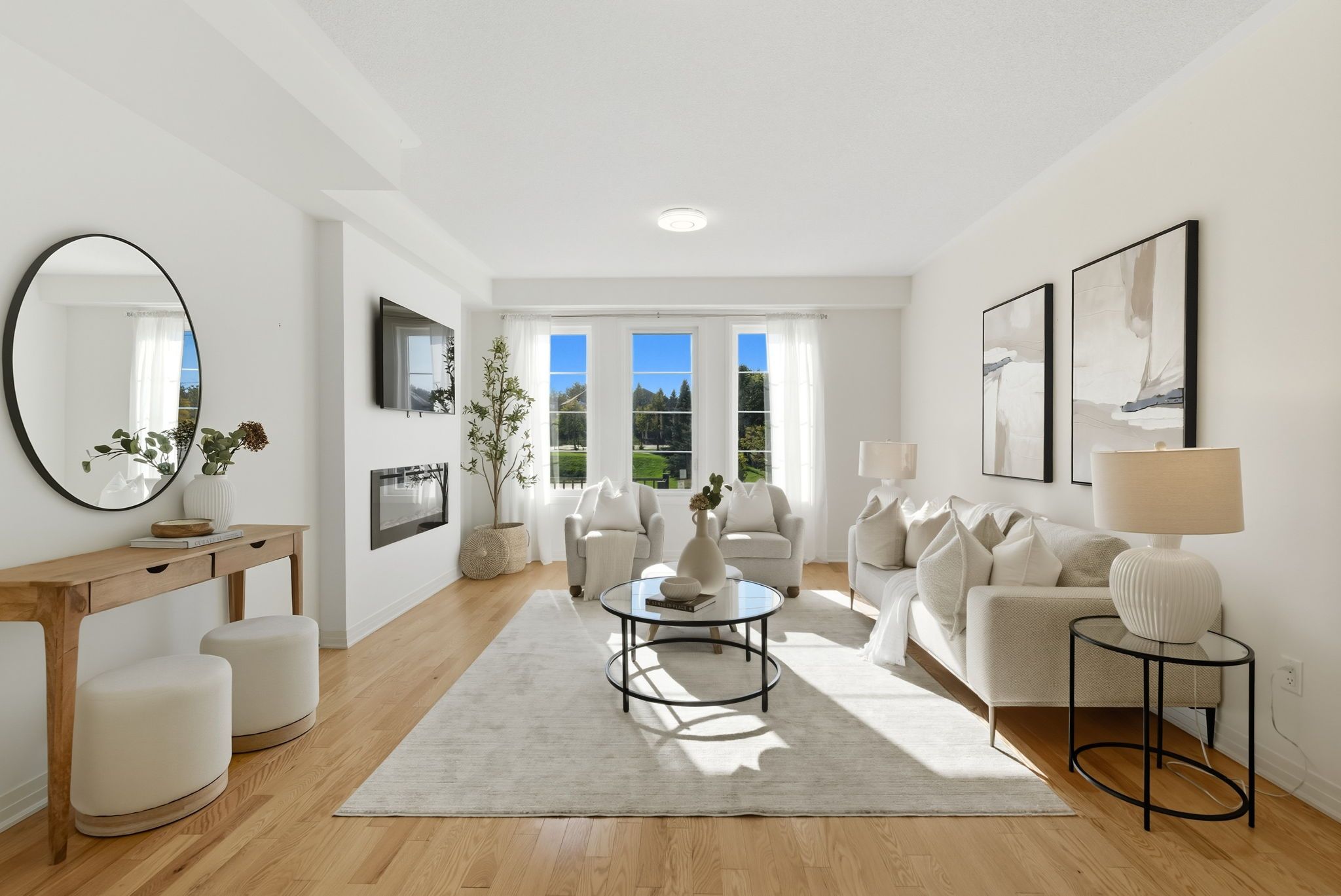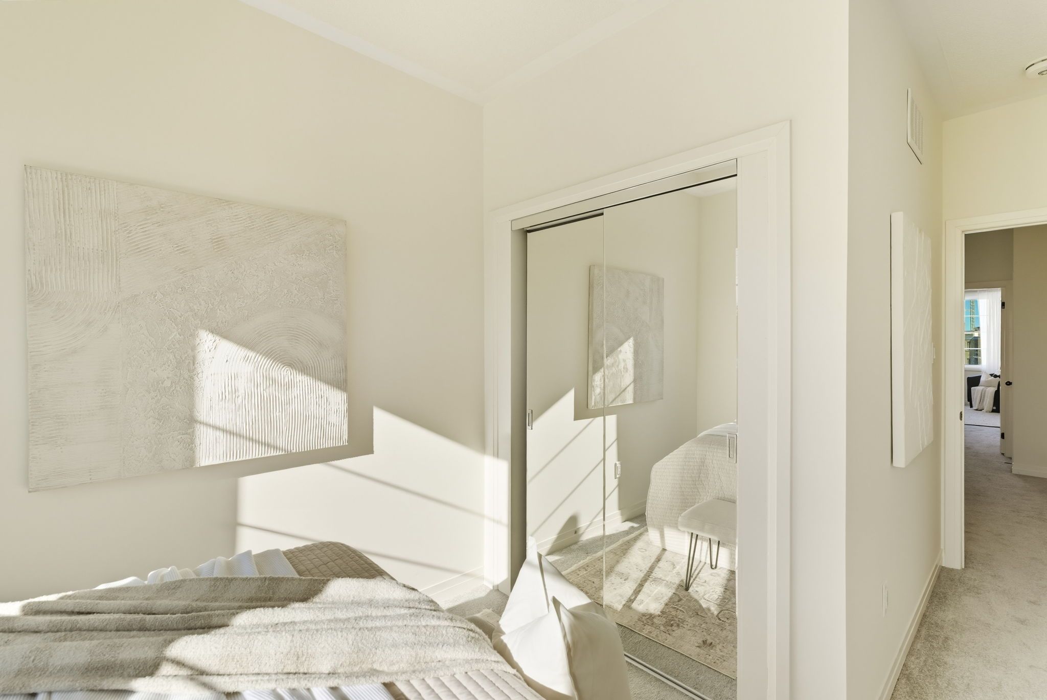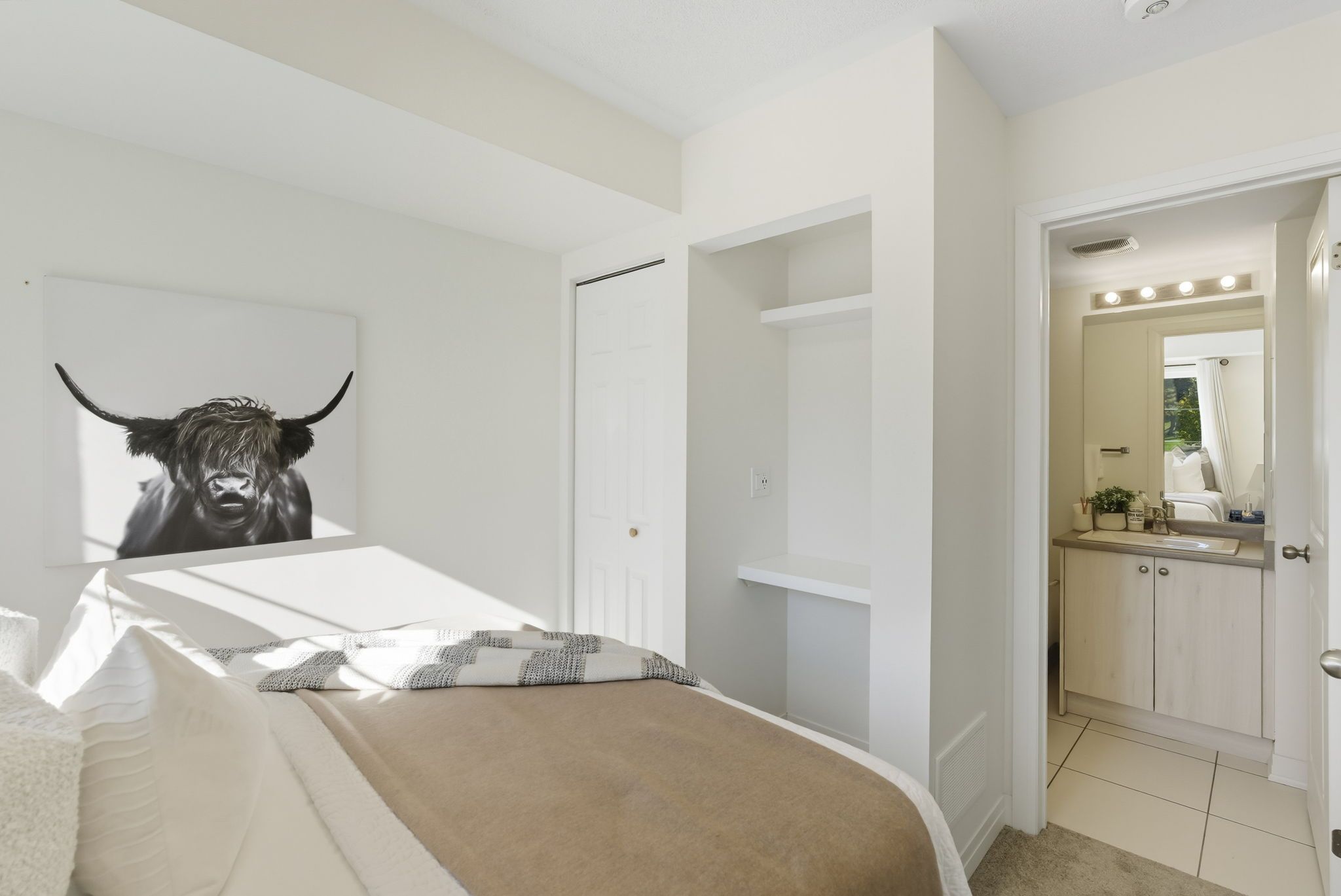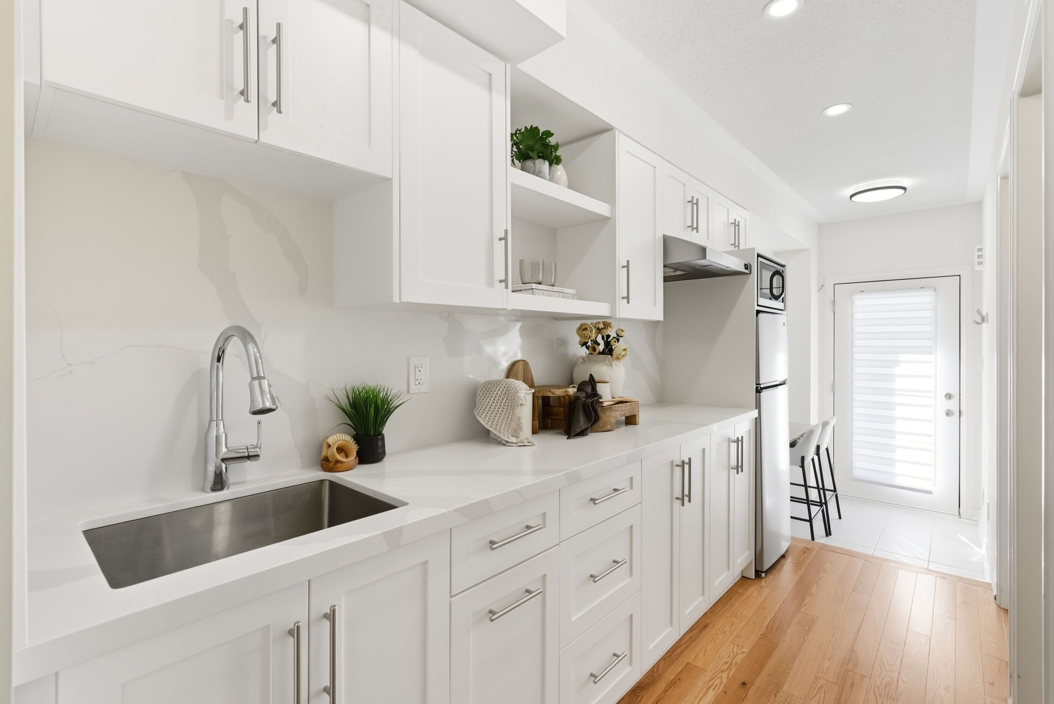 • Three large bedrooms on the upper level with ample natural light and high ceilings.