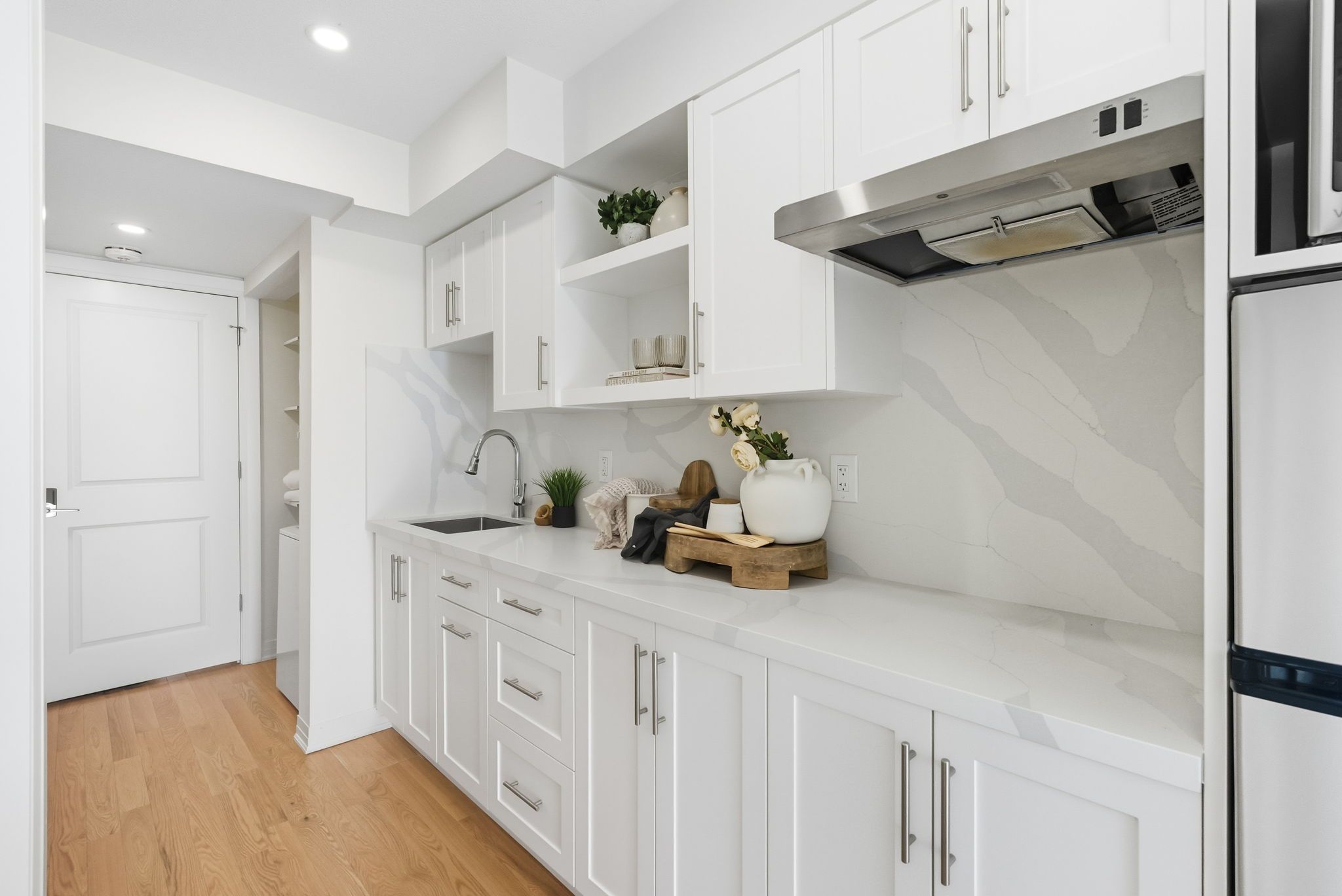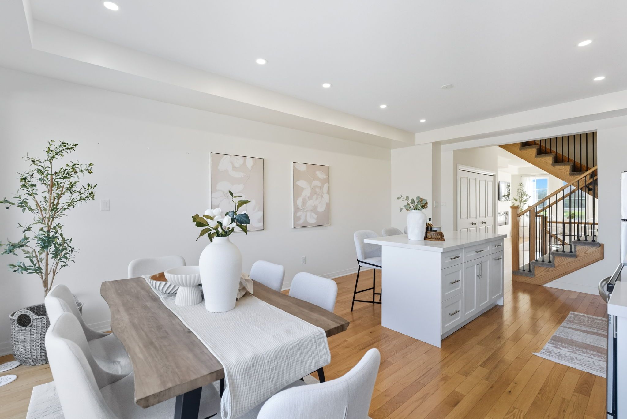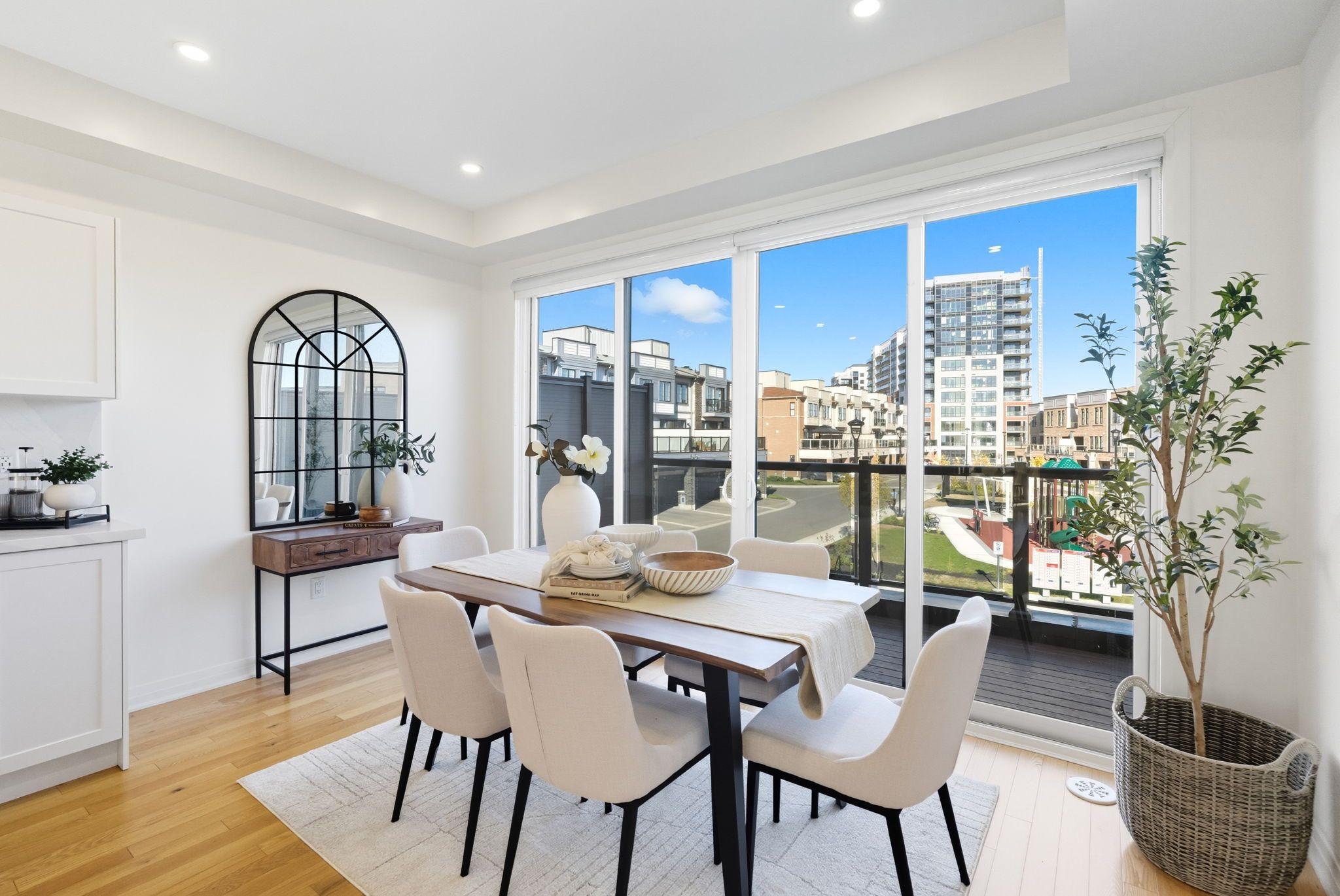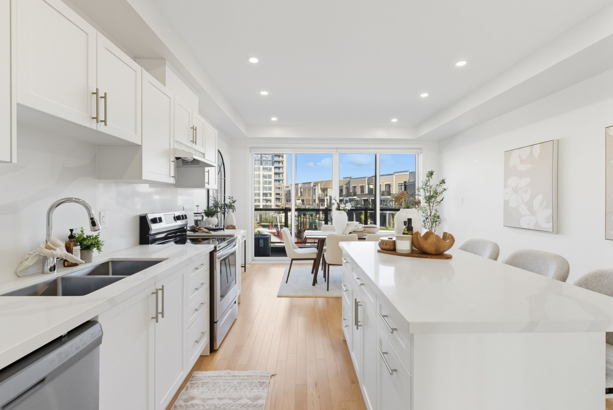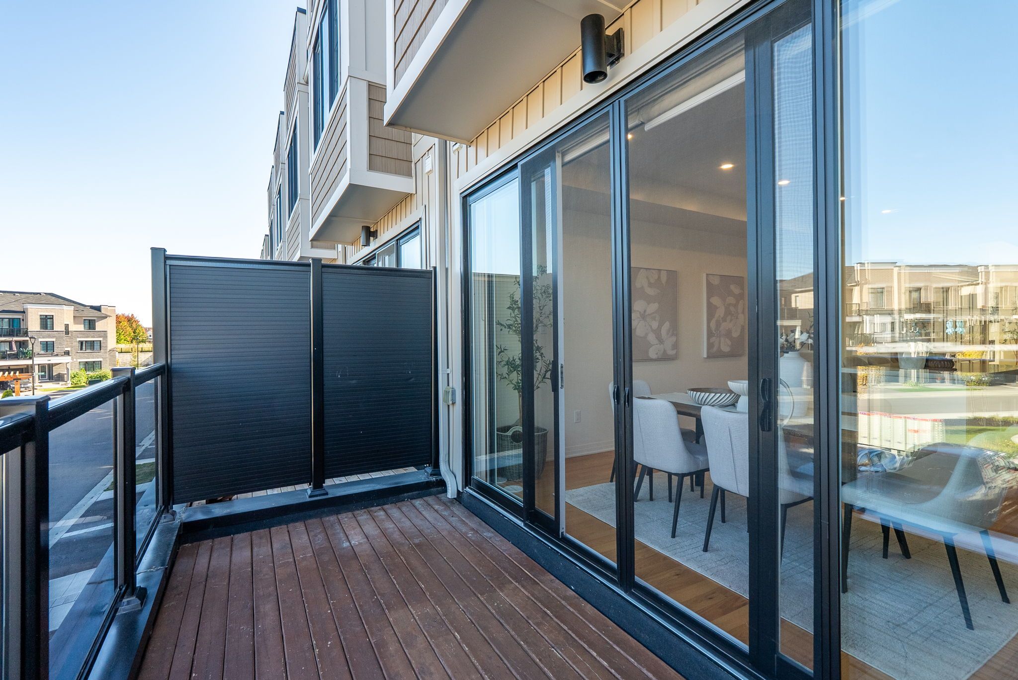 • Bright main level with modern kitchen, large island, and spacious balcony.