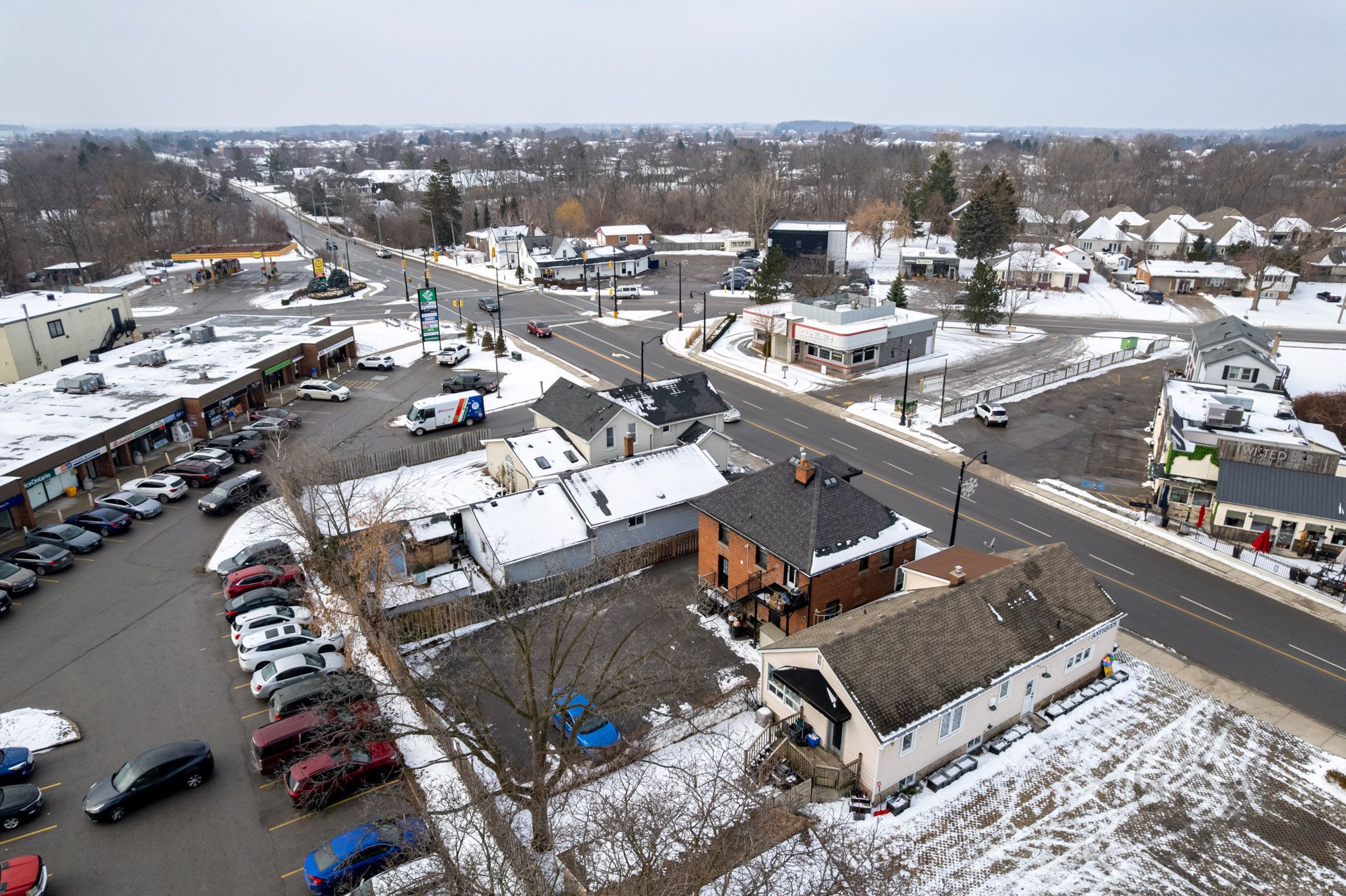 Freestanding high-profile commercial building with ample parking & excellent exposure. Great street presence and visibility along busy niagara stone road, and from the four mile creek intersection. Main-floor office or retail space with access to the basement, as well as front and back doors and provides a 2-piece bathroom and lovely covered front porch with charming bay windows. Upper unit is currently a 1-2 bedroom apartment, where the current tenant is paying $1716. 87/month and is open to staying. Updates include windows, driveway and parking lot paving, central air, and basement waterproofing.