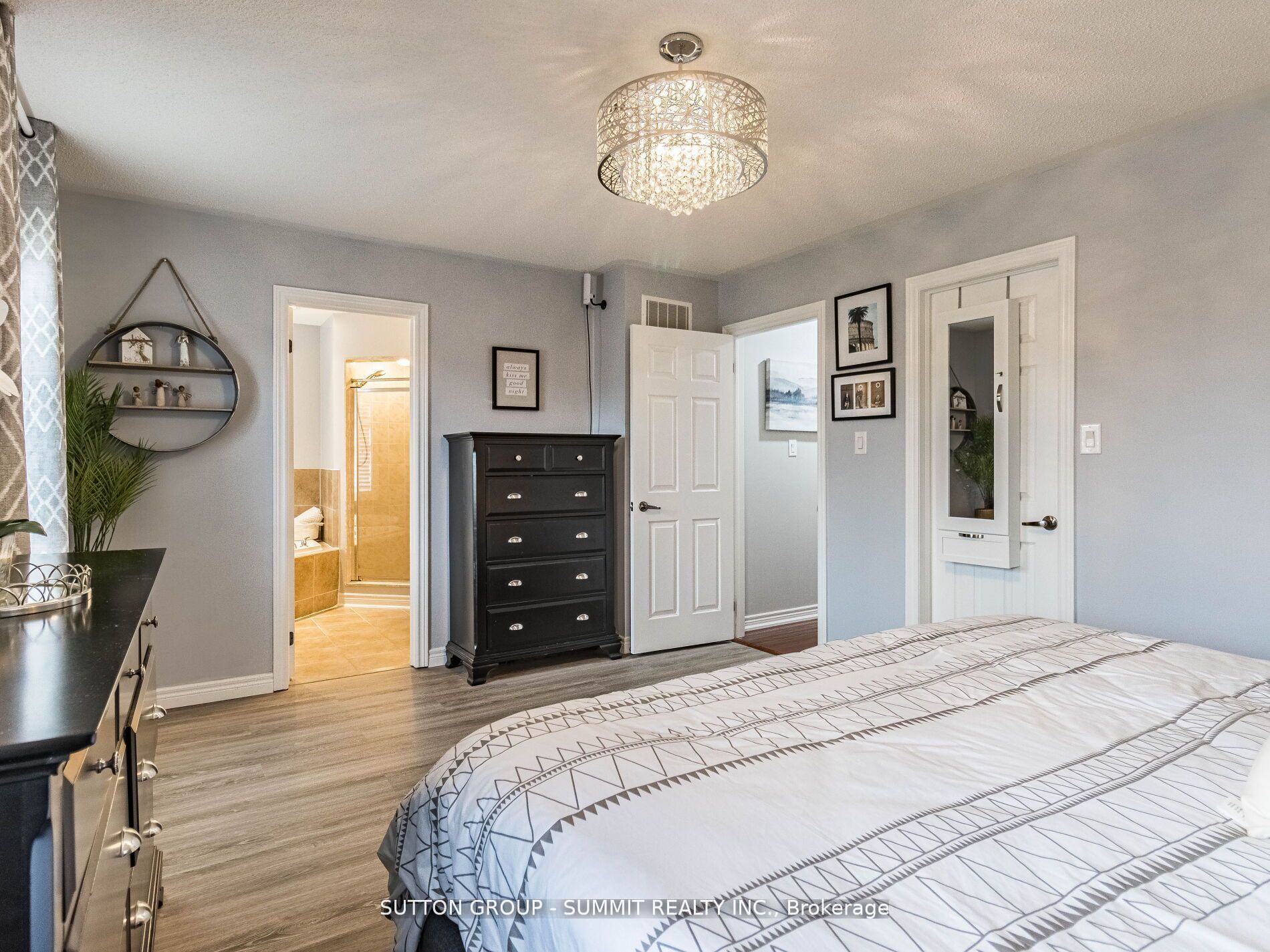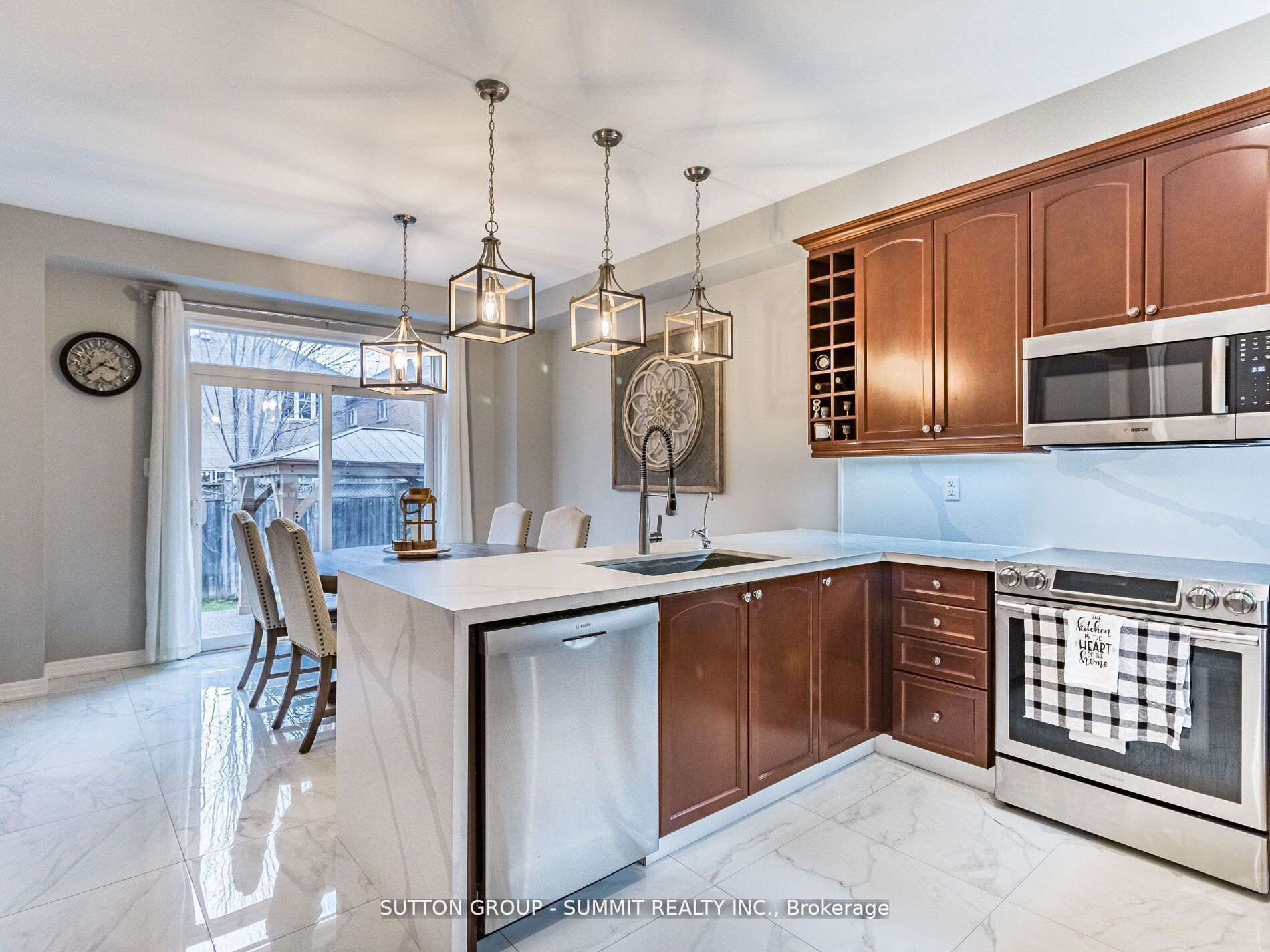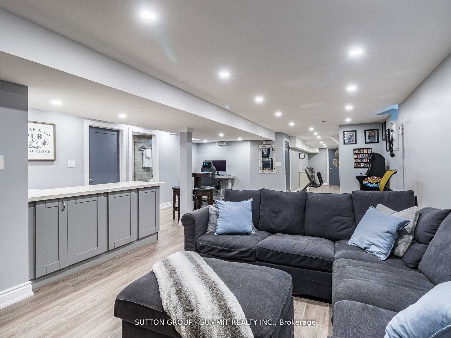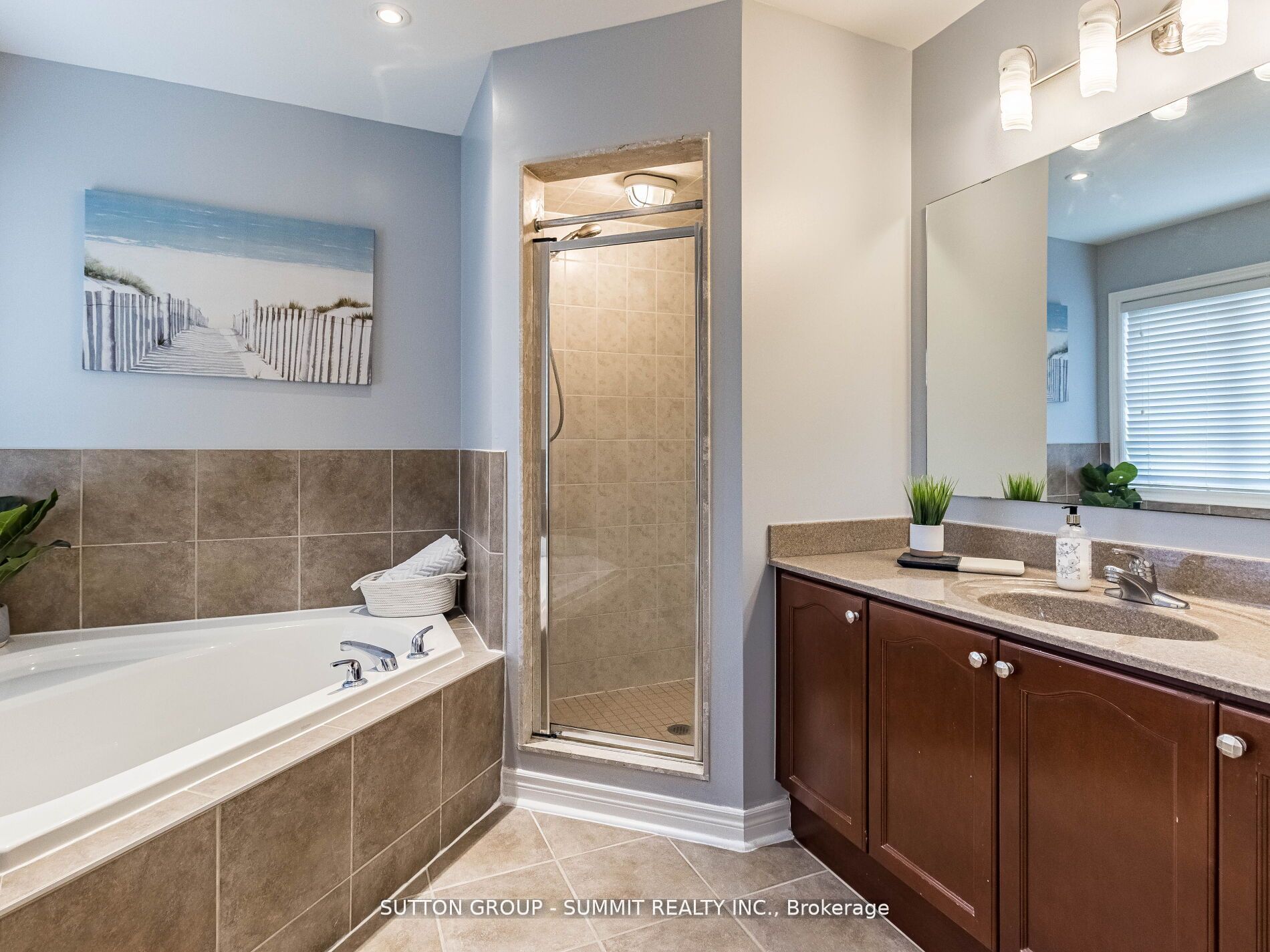Gorgeous and meticulously maintained, this all-brick and stone 2-storey home showcases true pride of ownership. Featuring a grand 2-storey foyer, 4 bedrooms, 4 bathrooms, and a beautifully finished basement (2020) with separate entrance, recreation room, wet bar with quartz countertop, electric fireplace, and heated-floor 3-piece bath. The open-concept main floor offers 9 ft ceilings, crown moulding, pot lights, and hardwood flooring throughout, with updated tile in the kitchen, powder room, and foyer. The upgraded kitchen features quartz countertops with a stunning waterfall peninsula, matching backsplash (2024), and a walk-out to an aggregate concrete patio. The family room with gas fireplace overlooks the breakfast area, while the combined living and dining space is perfect for entertaining. Upstairs features hardwood in the hallway and luxury vinyl plank flooring in all bedrooms, including a spacious primary suite with walk-in closet and 4-piece ensuite. Enjoy the fully fenced backyard with hot tub (2022) and yardistry cedar gazebo (2022), plus added conveniences like ev charger in the garage, gas bbq hookup, water filtration system, reverse osmosis, cold cellar, and main floor laundry. Located close to schools, parks, trails, and all amenities.