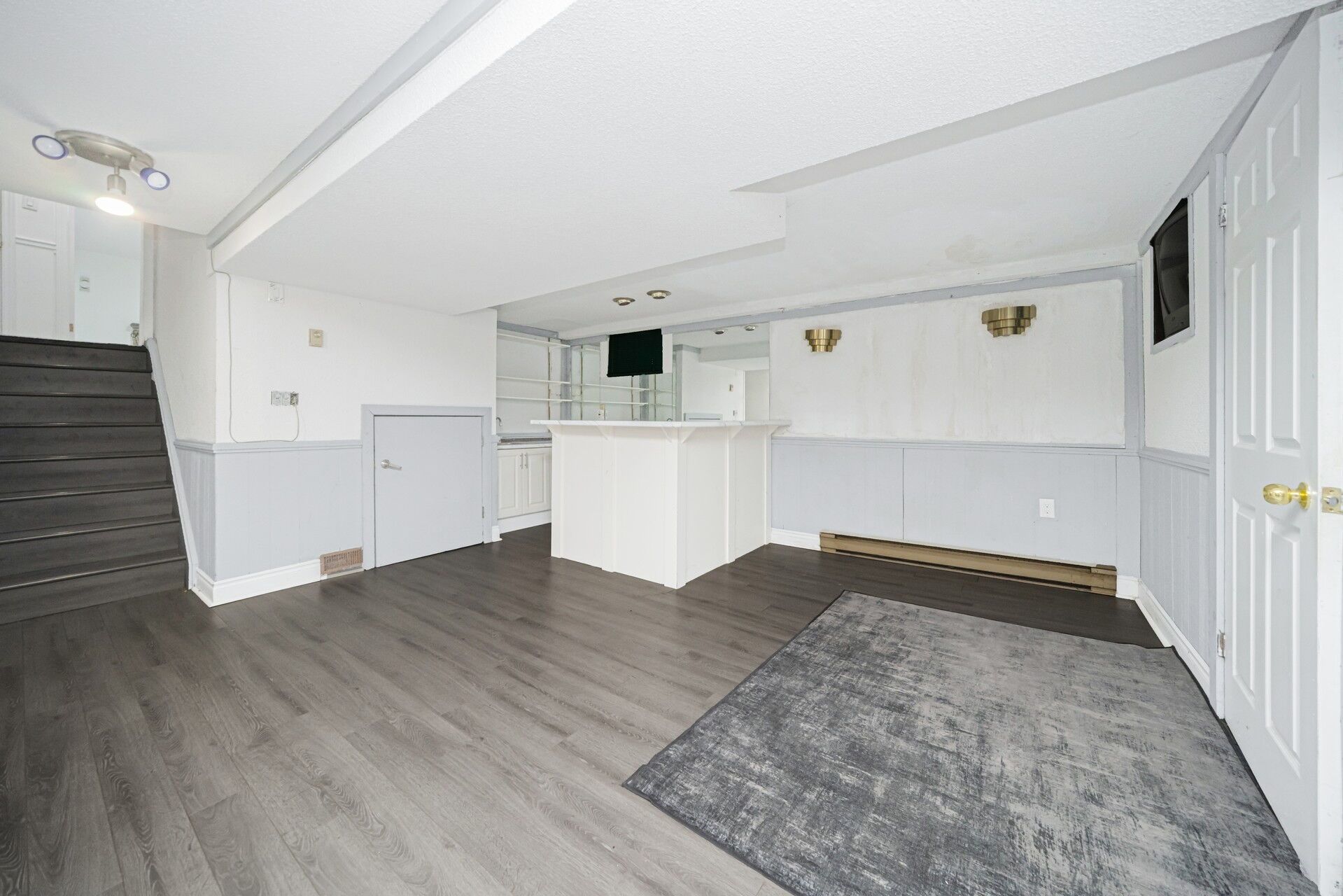 • Finished basement includes a wet bar for entertainment.