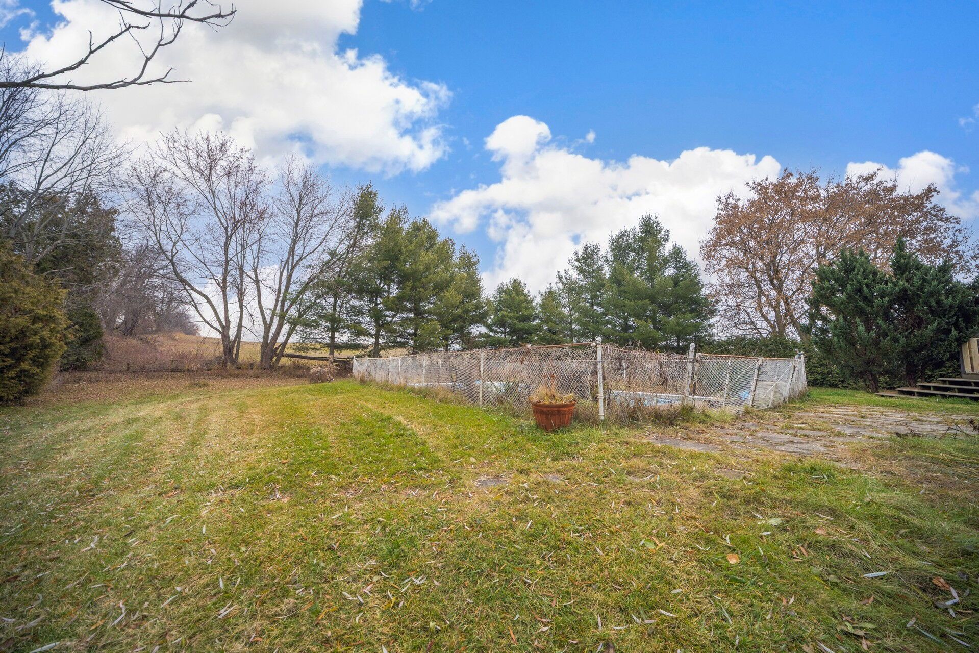 • Private backyard with an inground swimming pool and deck.
