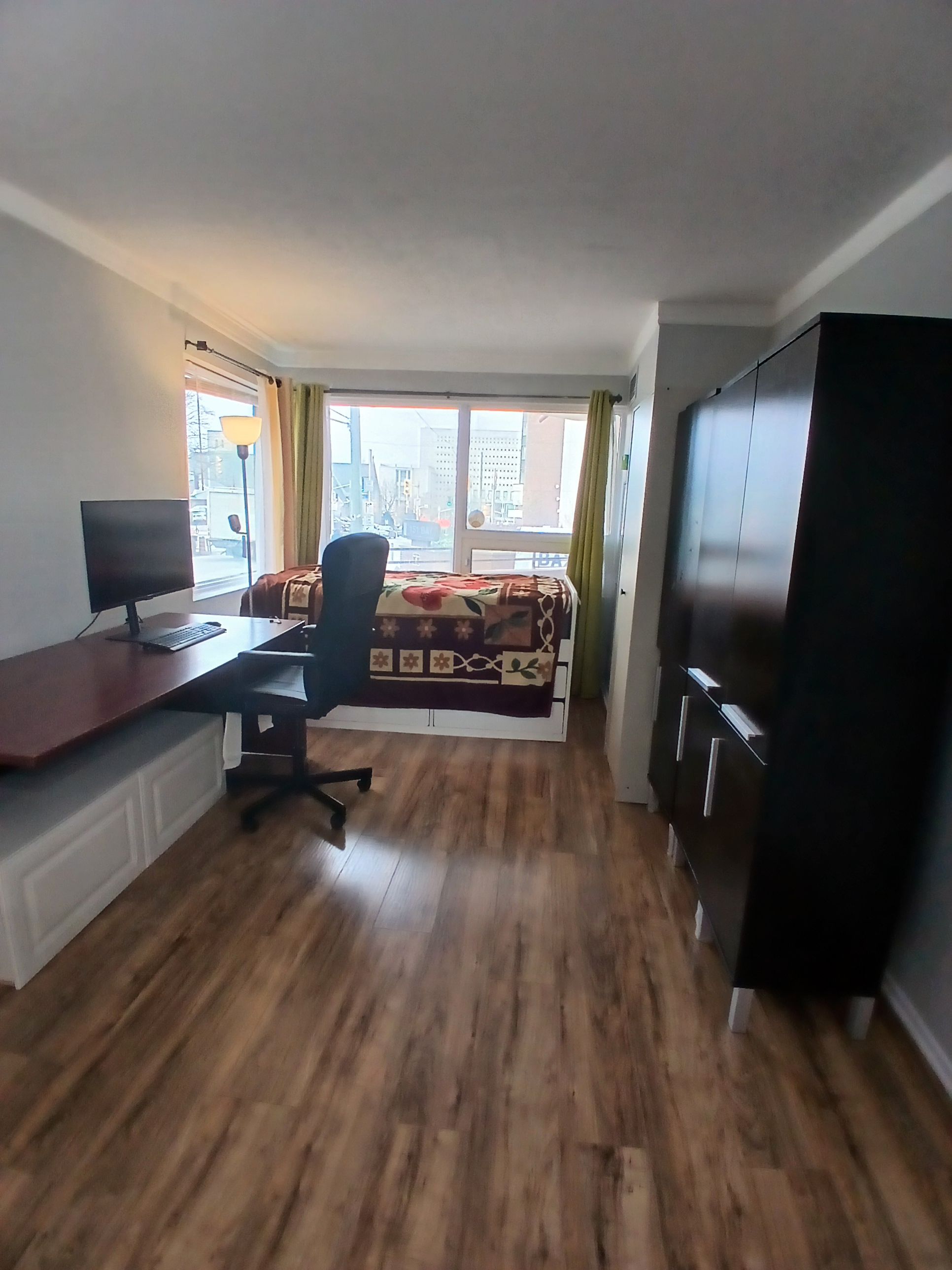 Available immediately. Enjoy downtown living in the heart of downtown ottawa in a renovated, freshly painted, and generous space (close to 1,000 sq ft, one of the largest 2 bed apartments in the area) and convenience in this rarely offered ground floor courtyard facing end unit at park square. It offers unbeatable convenience with easy access to the lrt lyon station, just steps away for a short ride to university of ottawa and carleton university. Surrounded by shops, restaurants, offices, and cultural landmarks, this prime location puts everything you need within walking distance including food basics, lrt station, parliament, financial district, city hall, court house, nac and much more! There are two bedrooms, the primary bedroom includes corner and large windows, ensuite bath and walk-in closet. There is also a 3 piece up-scale full bathroom with glass shower. Spacious living/dining room with walkout to private terrace, house-sized kitchen with loads of cabinets spaces. All utilities are included in the rent: heating, central ac, hydro and water. No hot water tank rental (saving of $50/month), 1 reserved heated under-ground parking spot is included (saving of $250/month), and 1 locker is included (saving of $50/month), hassle-free living in a well-maintained building featuring building amenities: such as an indoor pool, saunas, bike storage room, and workshop. The storage locker and laundry are conveniently located at the same floor close to the unit. Brand new stainless steel refrigerator and stove. Non-smoking building. No pets, no smokers.
