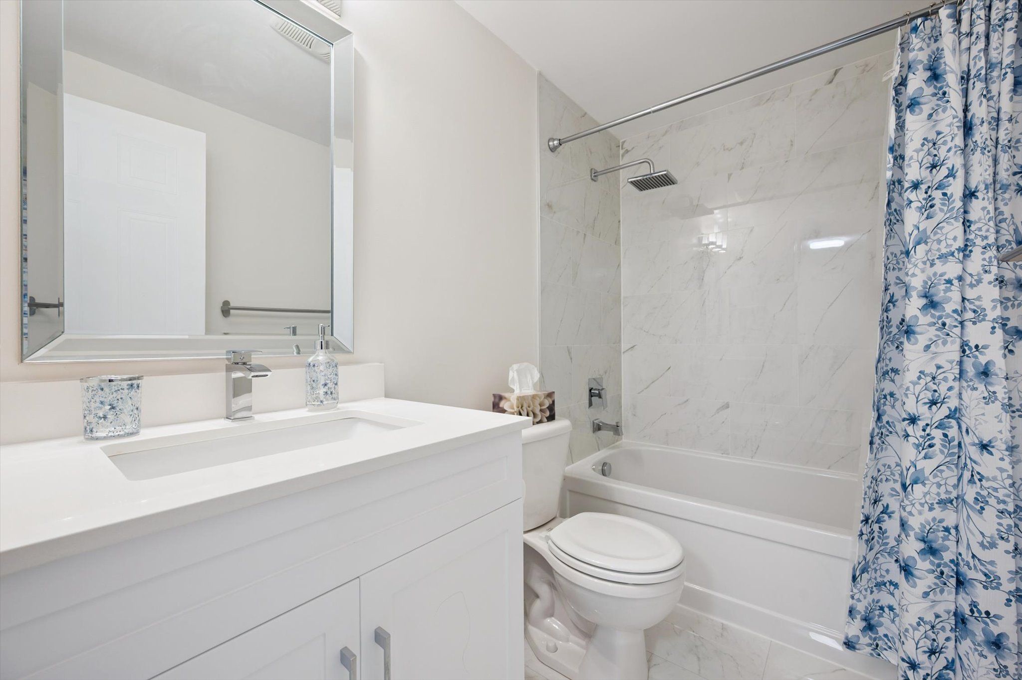 • Fully renovated kitchen with quartz countertops and modern appliances.