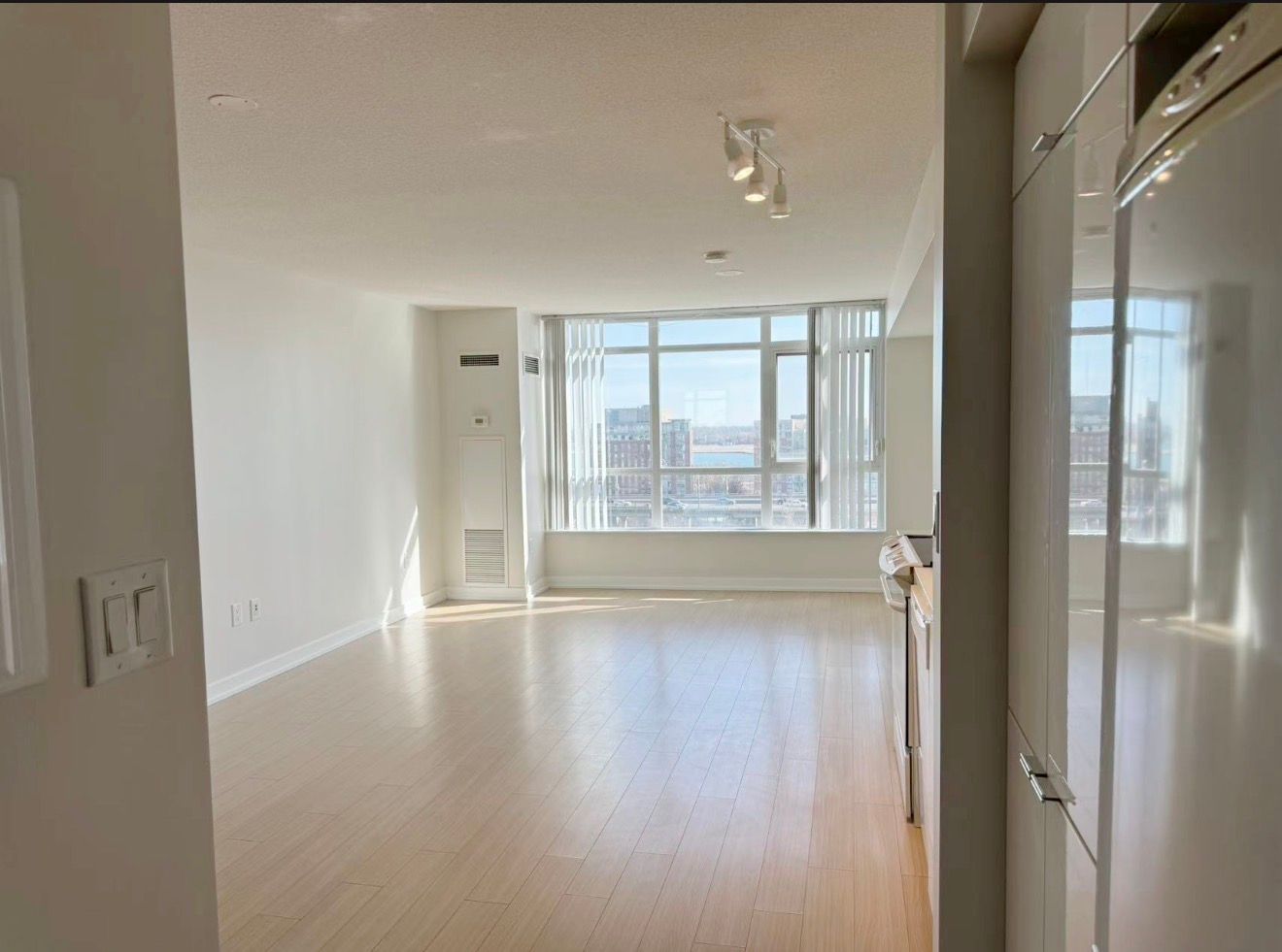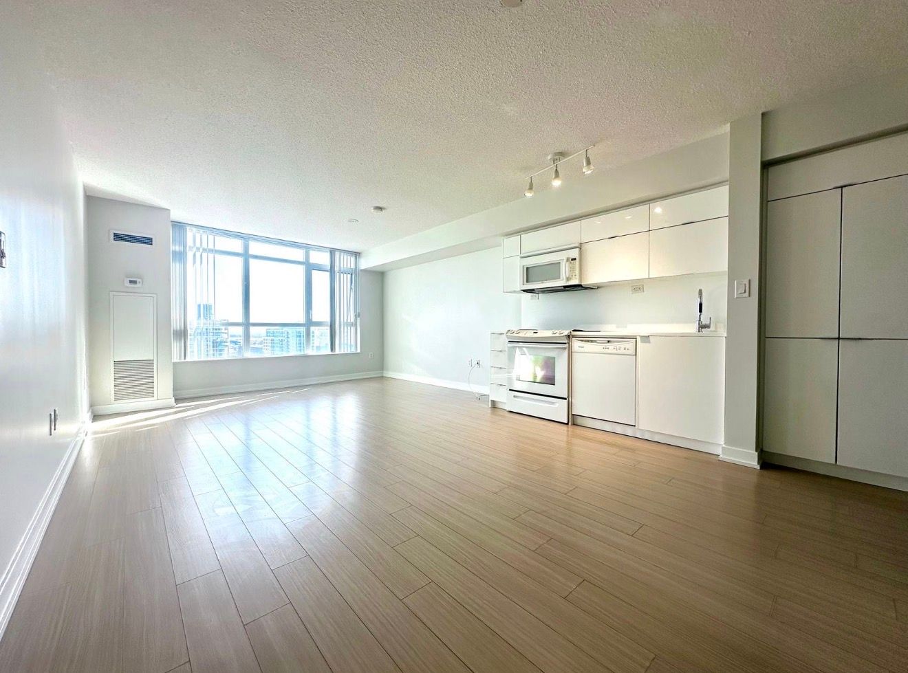 • Bright south-facing bachelor unit with unobstructed views of Canoe Landing Park.
