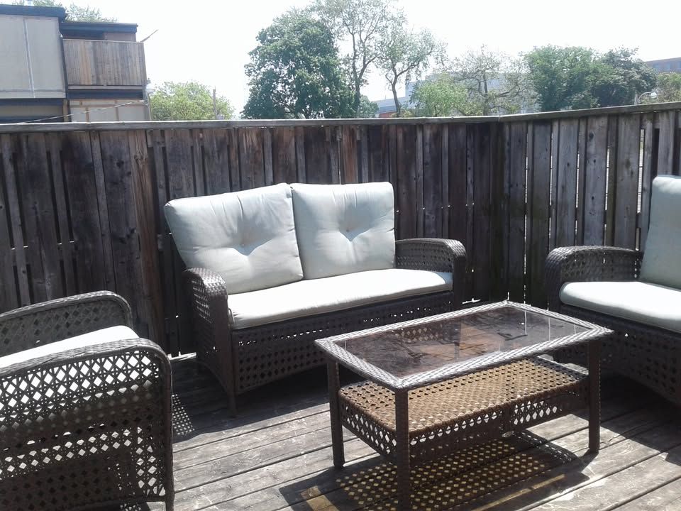 This stylish and sun-filled apartment in a prime west-end location near ossington, queen west,and dundas west. Featuring two spacious bedrooms with ample closet space. Beautiful hardwoodfloors run throughout, complemented by 9-foot ceilings. The kitchen is equipped with maplecabinetry, providing practical storage for everyday living. A versatile front living area orhome office adds flexibility to suit your lifestyle, whether you're working remotely orrelaxing. Enjoy access to a private rooftop deck with city views, perfect for entertaining orunwinding outdoors. Ideally located just steps to parks and dog-friendly green spaces, thishome offers the perfect balance of urban convenience and neighbourhood charm, placing you closeto some of the city's best shops, dining, and amenities.