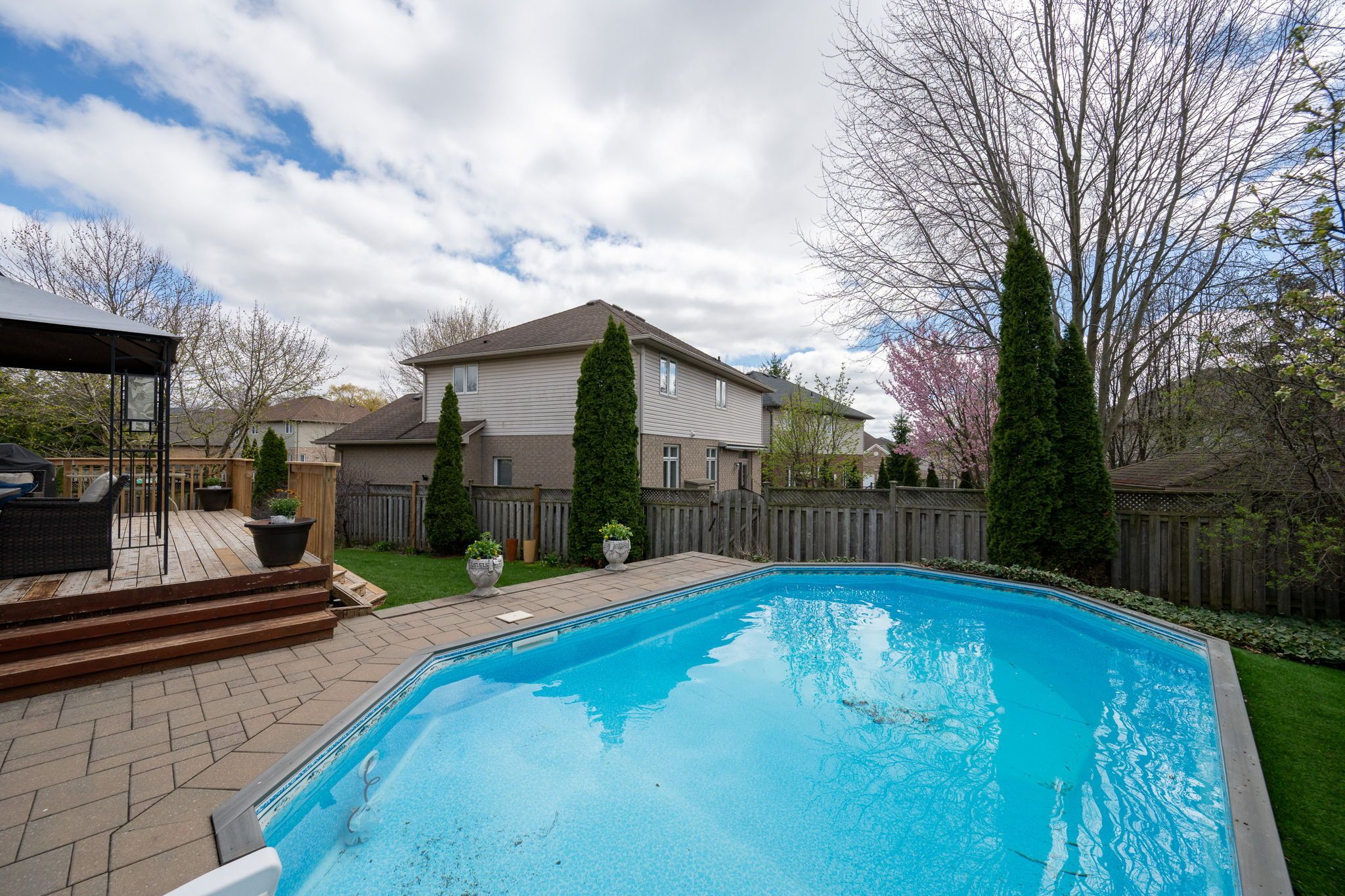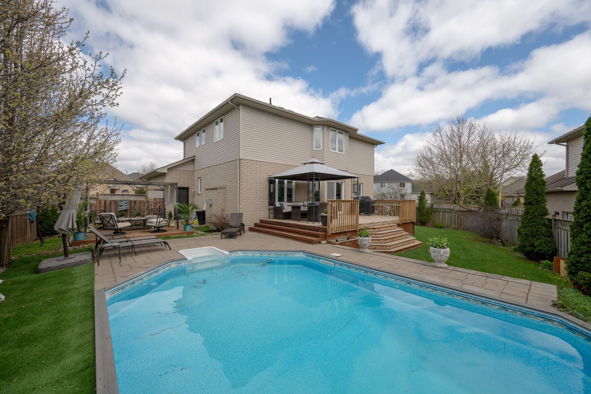 Welcome to the heart of westmount! This 4+1 bedroom, 3. 5-bathroom family home is situated on a premium corner lot in one of southwest london's most established neighbourhoods and sought-after communities. This 2004-built residence perfectly balances spacious interior living with a complete outdoor backyard retreat. The main floor features a traditional layout with formal sitting and dining room, ideal for hosting family gatherings. The bright living room is anchored by a gas fireplace and flows seamlessly into the breakfast nook and kitchen. You will find gleaming hardwood and ceramic tile throughout both the main and second levels. Upstairs, the primary suite serves as a true retreat, featuring a large walk-in closet and a private 5 piece ensuite with a jetted tub. Three additional generously sized bedrooms provide plenty of space for a growing family. The fully finished basement expands your living space with a large family room featuring a second fireplace, a fifth bedroom, and a versatile bonus room perfect for a home office. The exterior is a standout feature of this property. The oversized corner lot allows for a private onground pool, a large deck, and a patio with a gazebo, while still leaving plenty of grass space for kids or pets. The interlocking brick driveway and mature gardens add to the excellent curb appeal. Located in the highly desirable neighbourhood you are just minutes away from top-rated schools (w. Sherwood fox p. S., saunders s. S.), westmount shopping centre, and the startech. Com community centre/ymca. Don't miss the opportunity to plant roots in this mature, family-oriented neighbourhood. Schedule your private showing today!