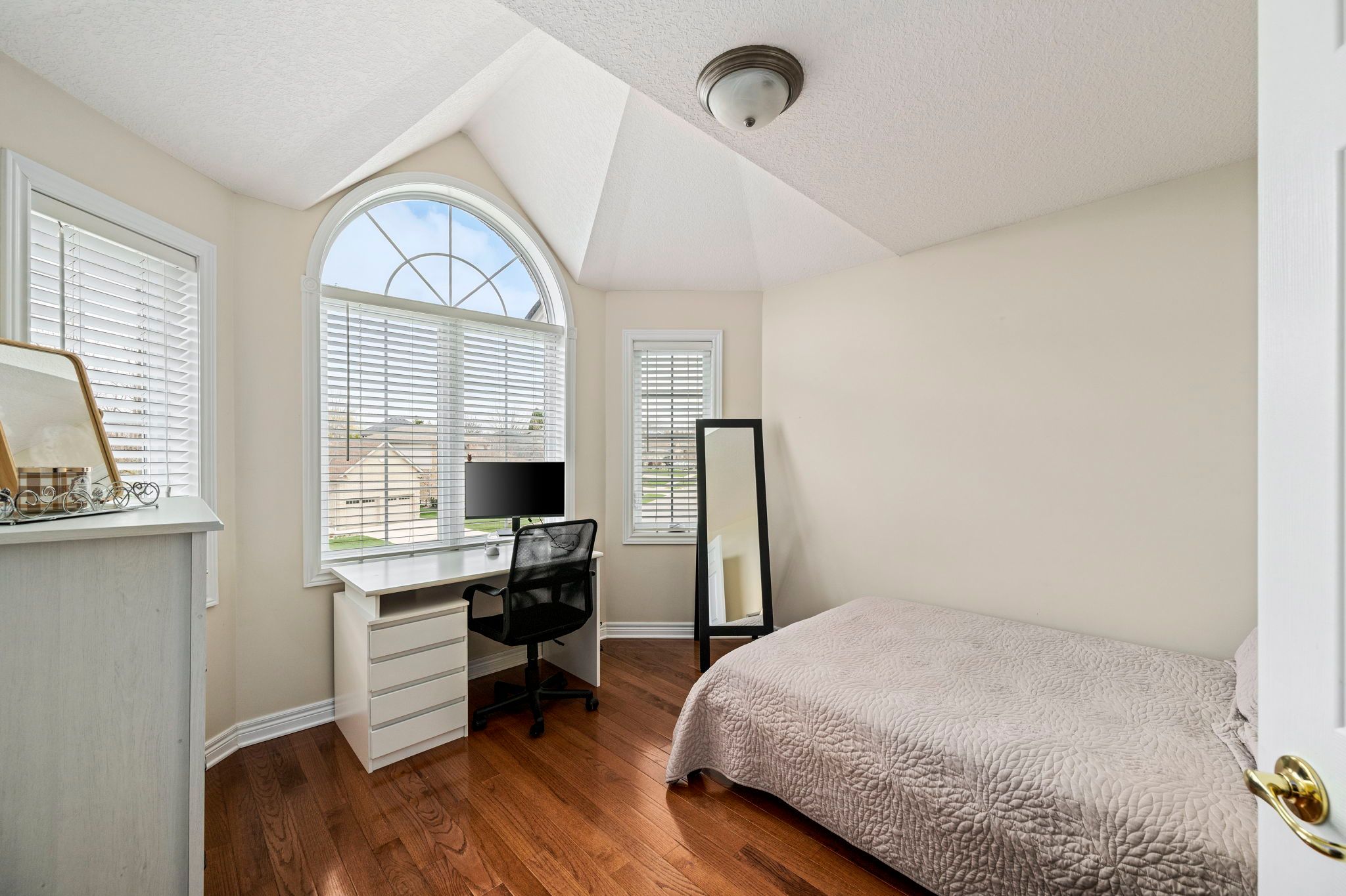 • Finished basement with family room, fifth bedroom, and office space.