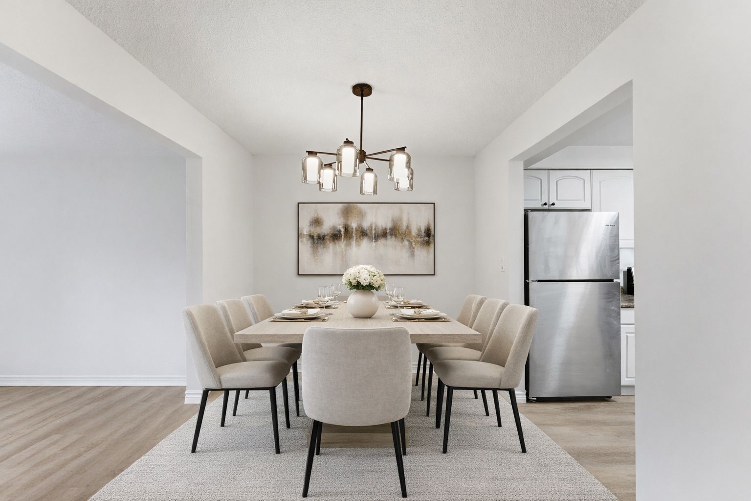 • Bright, comfortable layout with stainless appliances and new flooring.