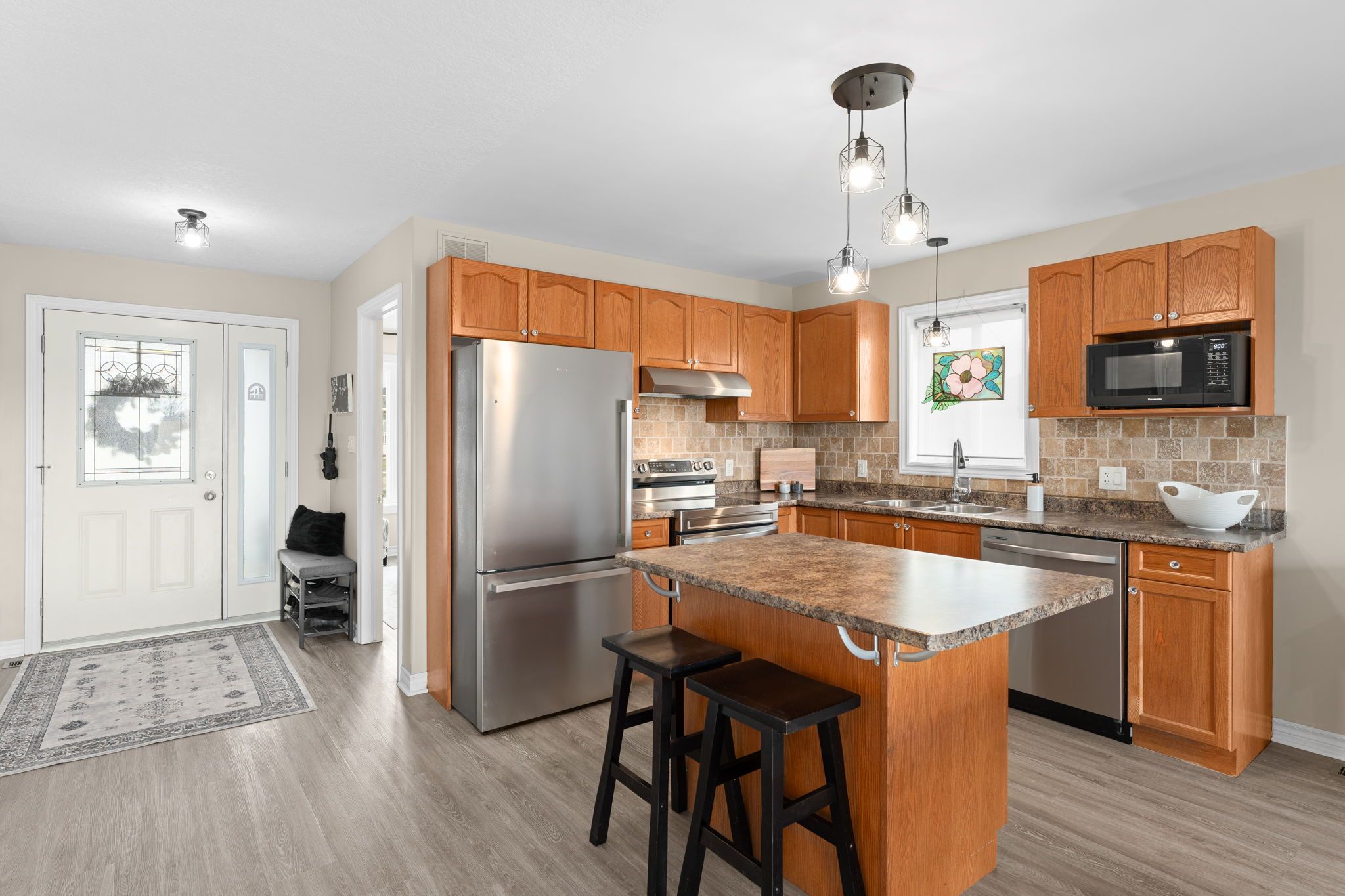 If you are looking for a charming house in a quiet and friendly neighbourhood, walking distance from restaurants, pharmacy, and more, look no further! This 2+1 bedroom, carpet-free home in amherstview has it all. Mint condition! Oversized single garage with loft storage area. Roof done in 2023. Cedar deck redone, windows replaced, main bath renovated, and lower bath shower replaced in 2024. Vanity in lower bath replaced in 2026. This home is fully finished on the lower level with a huge third bedroom, a large rec. Room, and 3 piece bath. There is ample storage under the deck, offering even more space for your needs. The house is located close to parks and nature trails that take you through the parkland area. Don't miss out on this property!