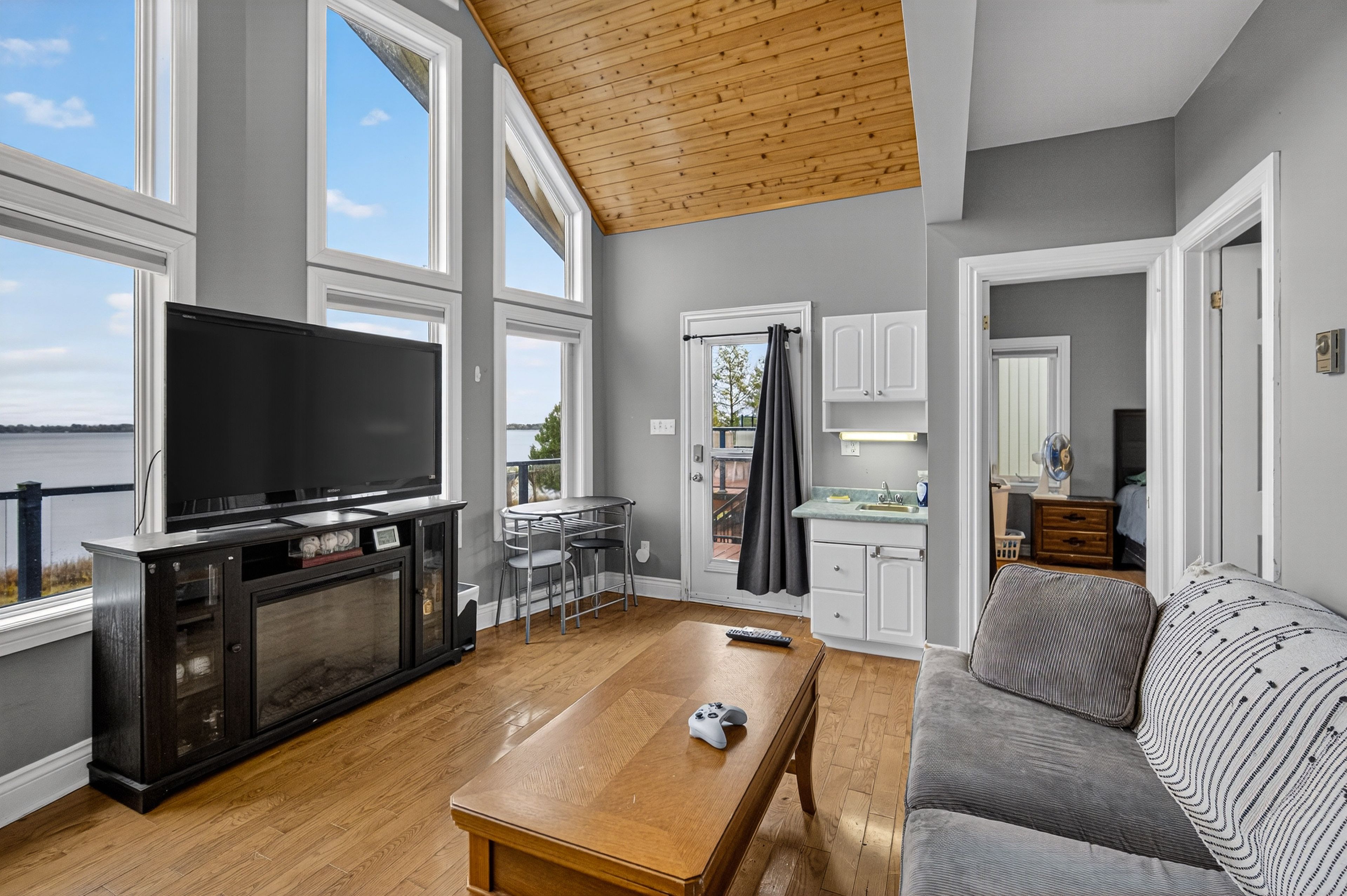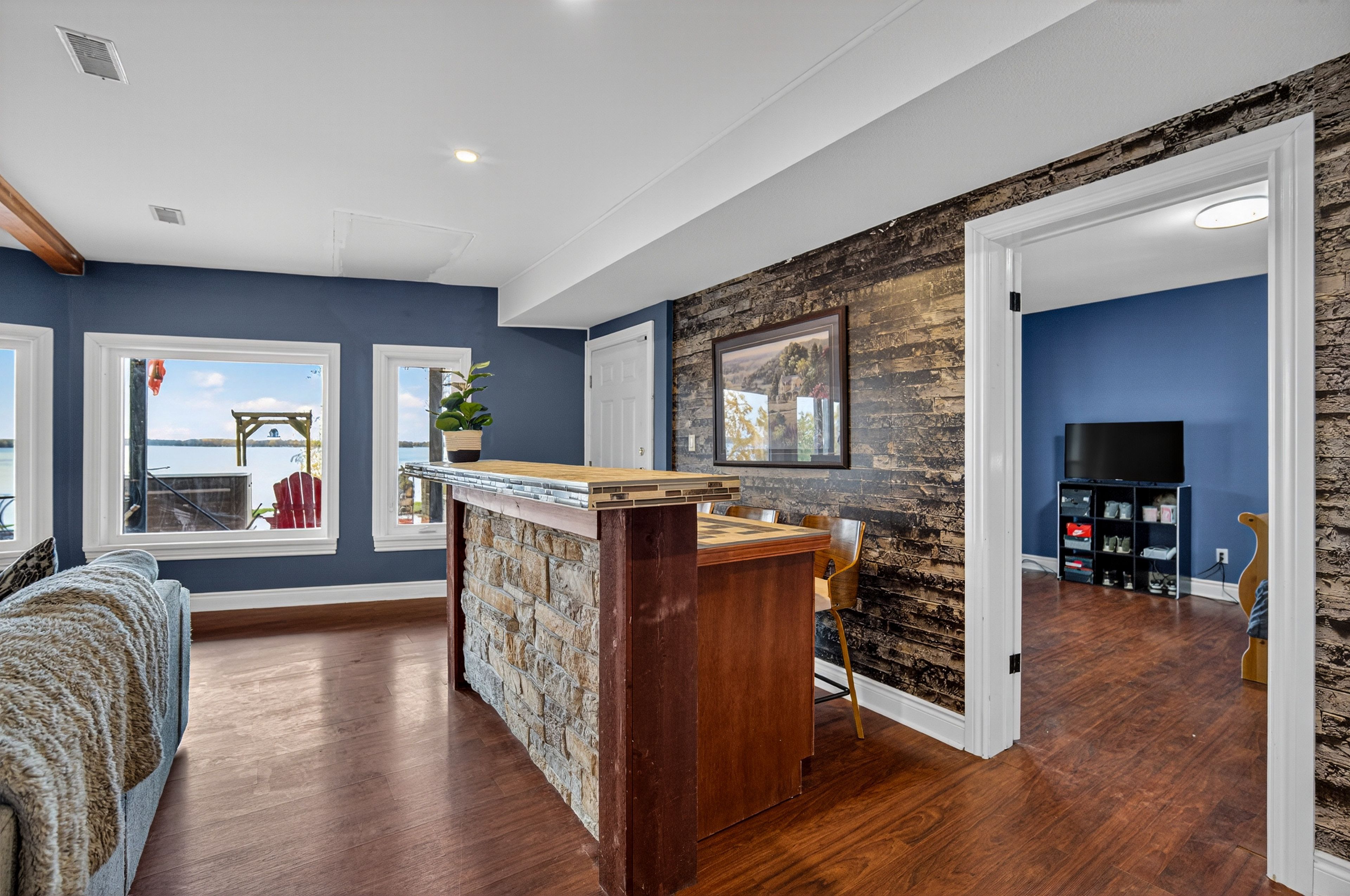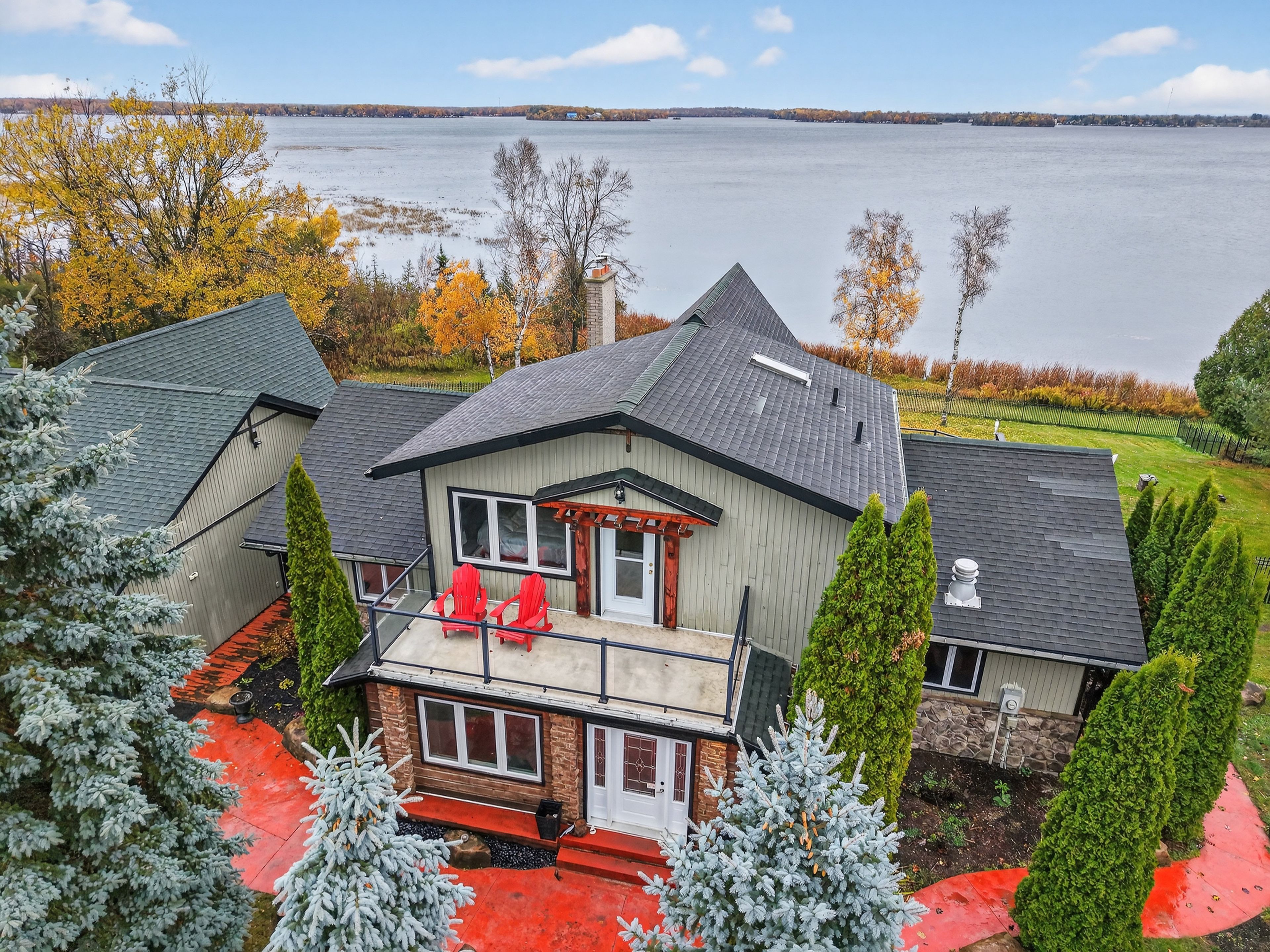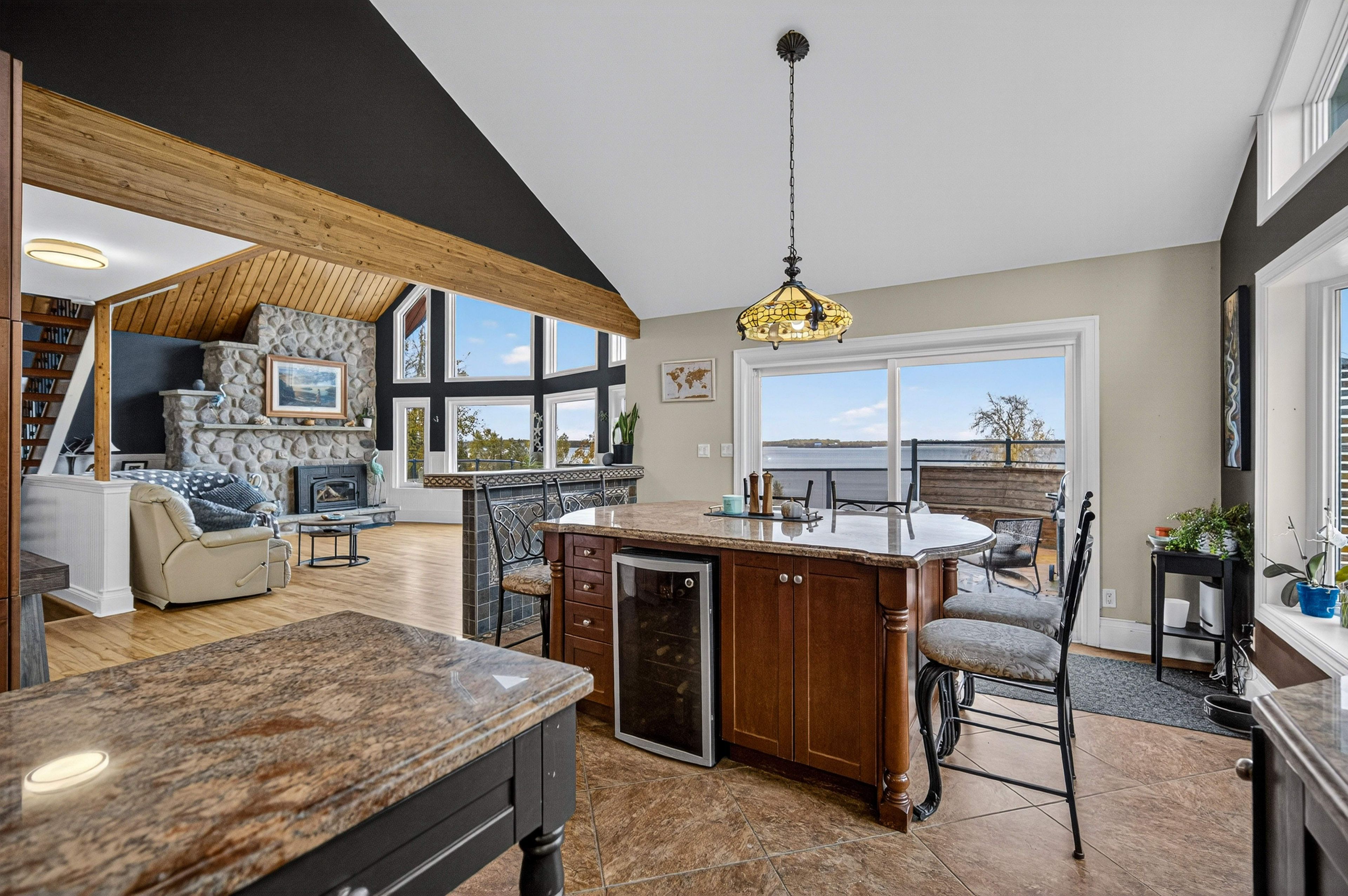 • Open-concept main floor with high-end kitchen and expansive lake-view deck.