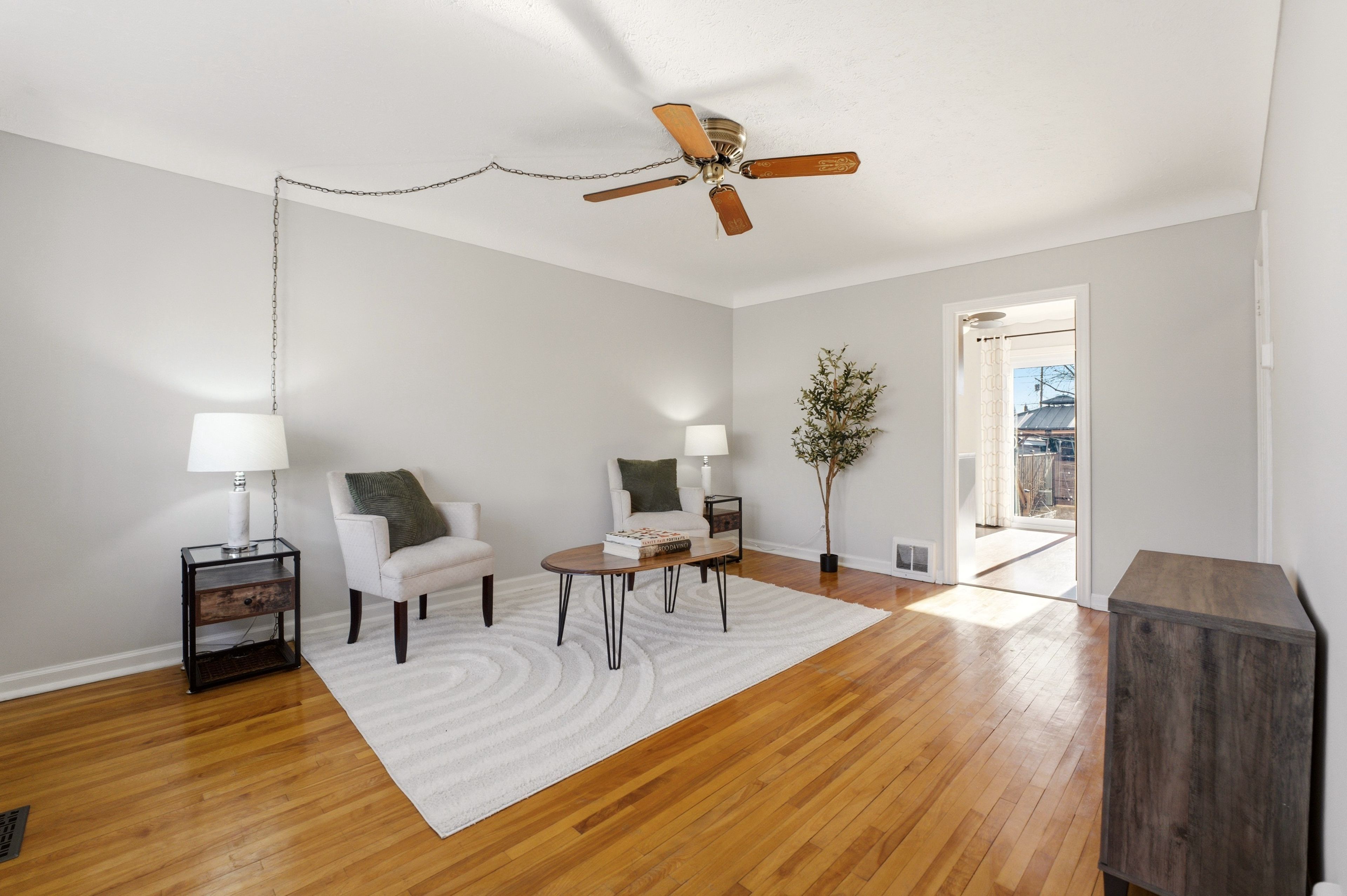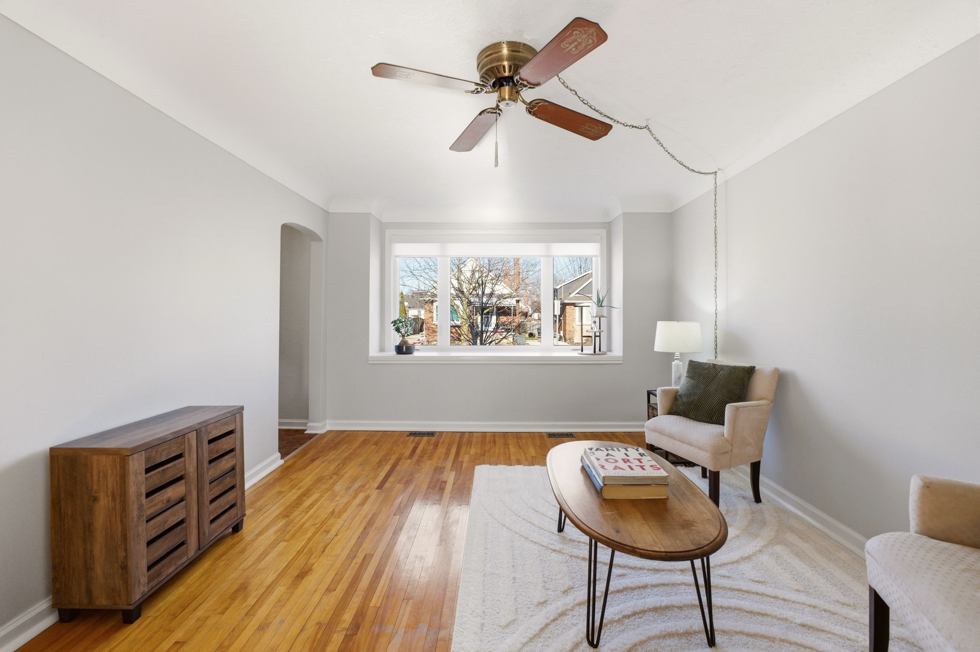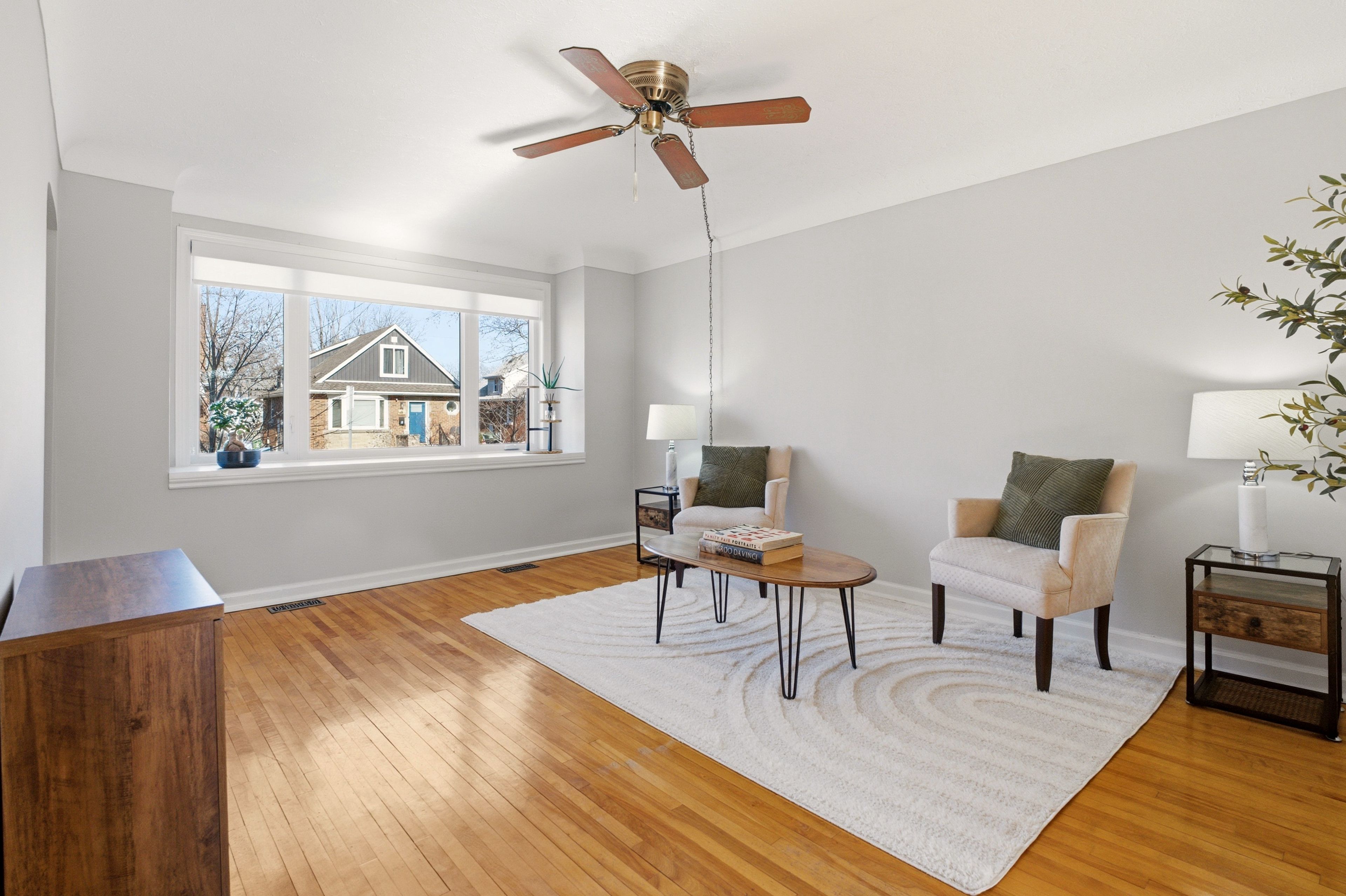 Welcome to this charming, sun-drenched detached one-and-a-half-storey home nestled in bartonville, and close to the rosedale area. Perfectly suited for families and entertainers alike, this home features a generously sized living room with a huge front window that offers a warm and inviting space to gather and relax. Freshly painted with modern neutral colours and original oak hardwood flooring throughout. The home also boasts an updated kitchen and bathroom, blending modern touches with classic comfort. Upstairs, you'll find two spacious bedrooms, while the main floor dining room offers flexibility and can easily be converted back into a primary bedroom to suit your needs. The fully finished basement expands your living space with a large recreation room, convenient laundry area, powder room, and ample storage. Key updates include most windows being replaced in 2021, a new sliding kitchen door in 2023, and a four-car poured concrete driveway completed in 2022. A handy side entrance adds extra convenience and potential. Step outside to enjoy the large, fully fenced backyard featuring a gazebo, shed, and play structure-ideal for outdoor living and family fun. Located close to montgomery park, with easy walking access to public transit and the future lrt, this home offers both comfort and convenience in a fantastic neighbourhood.