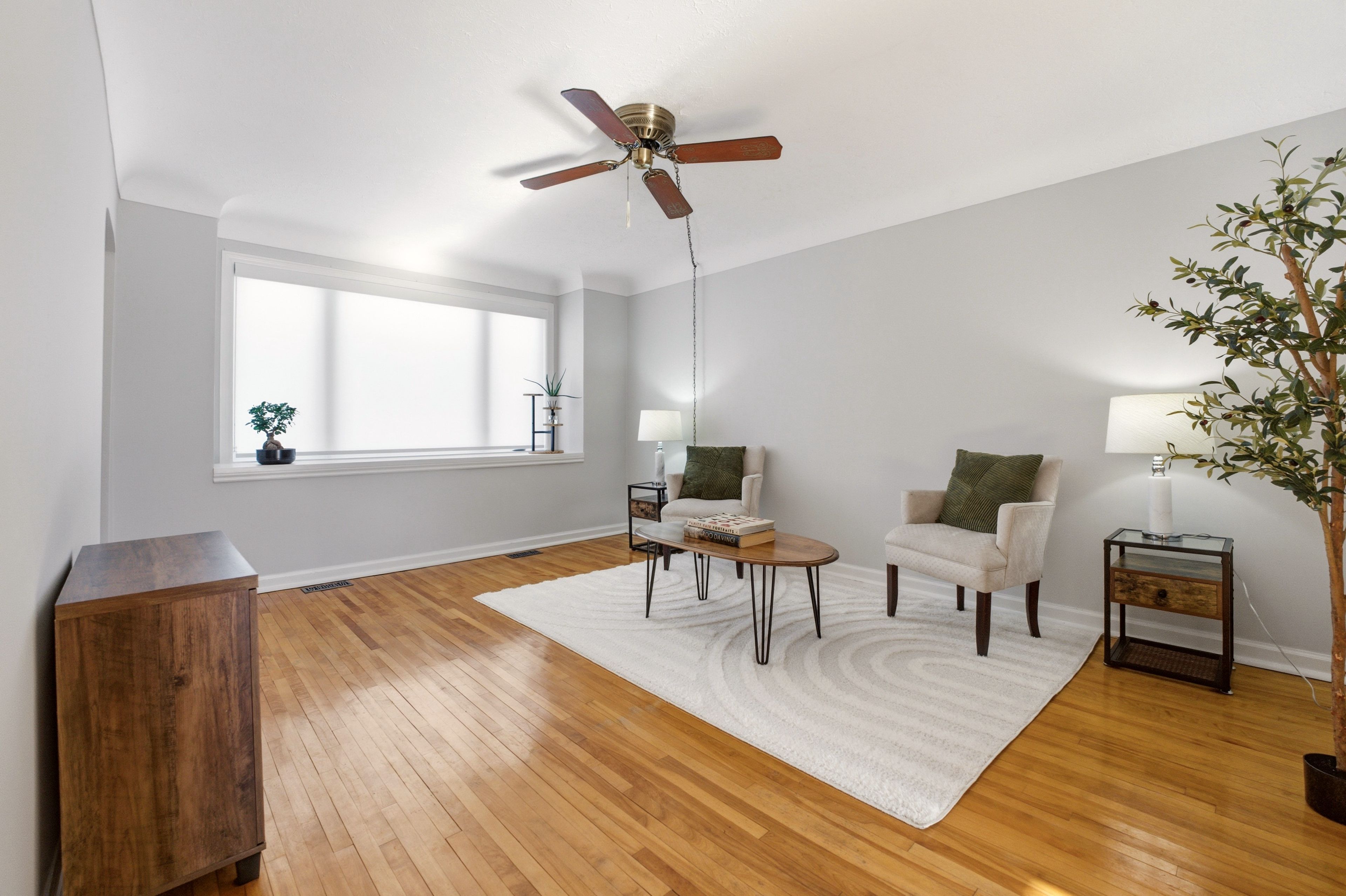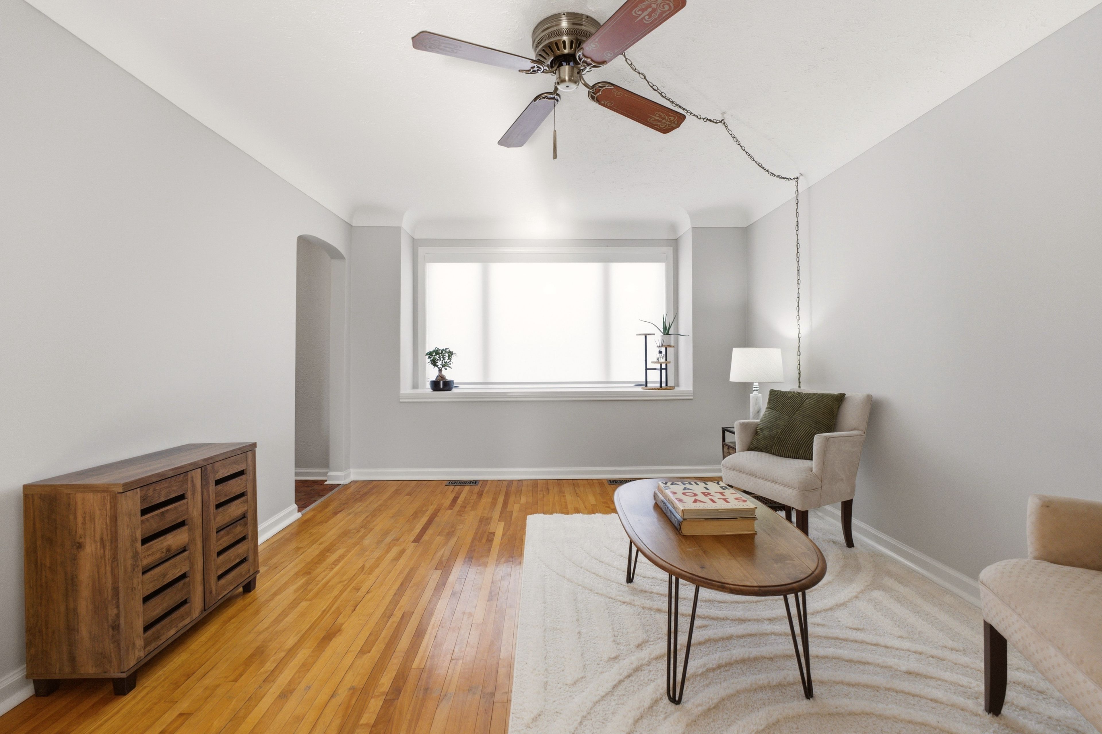 • Sun-drenched home with original oak hardwood flooring throughout.