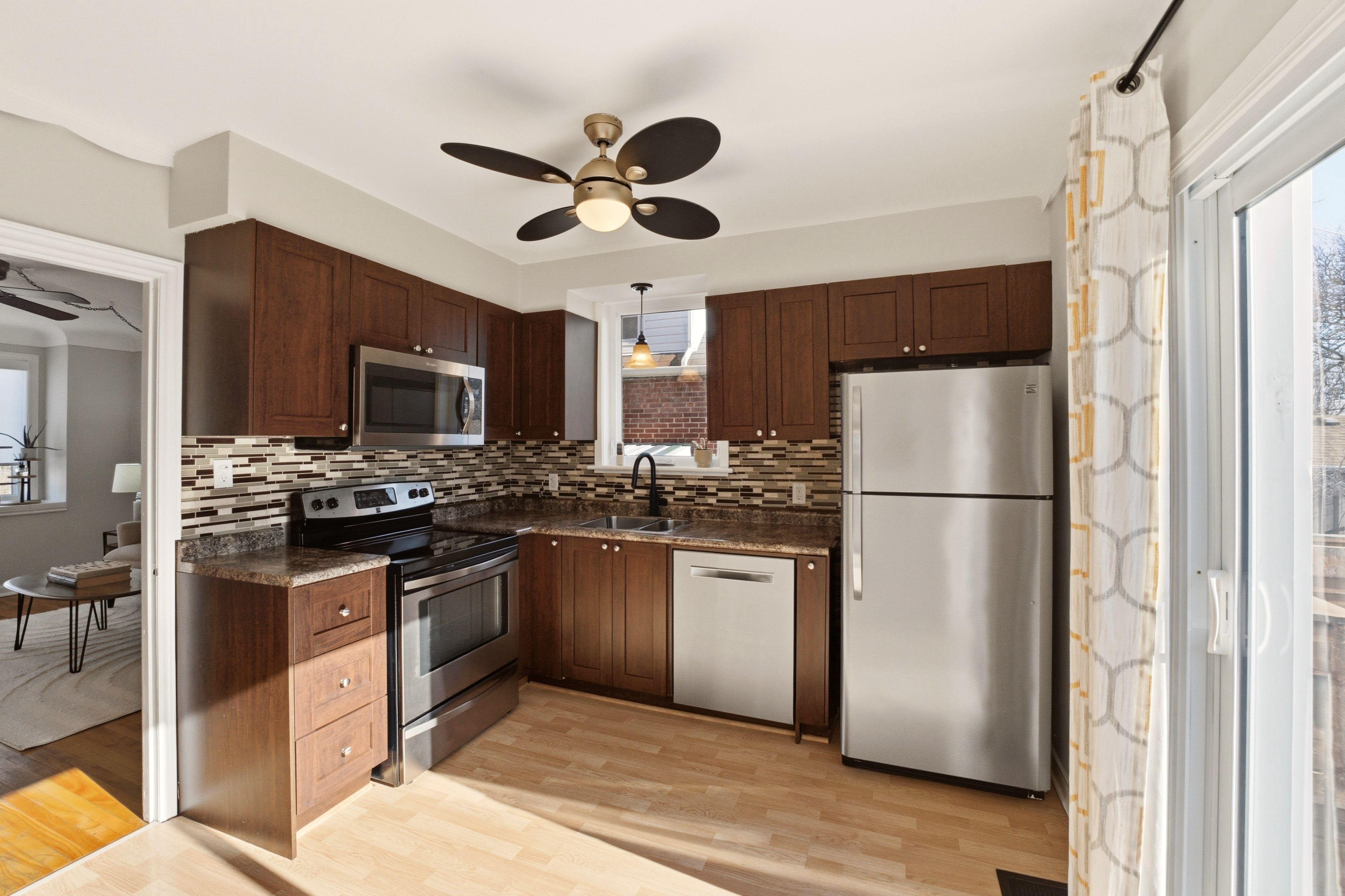 • Updated kitchen and bathroom blend modern style with classic comfort.