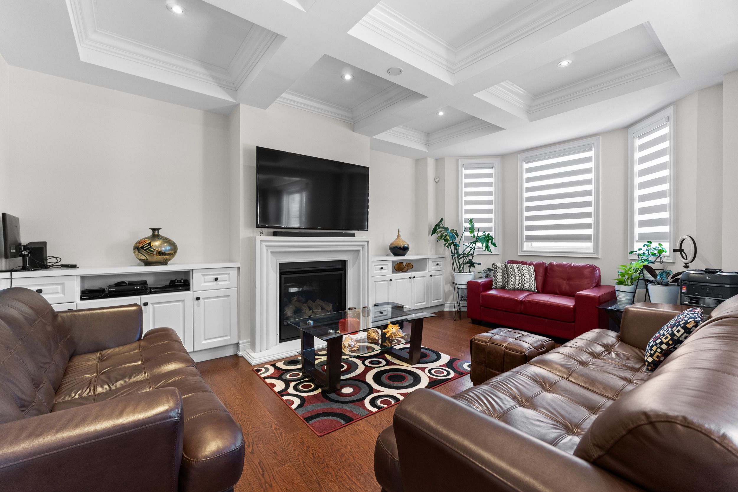 • Spacious family room featuring a cozy gas fireplace.