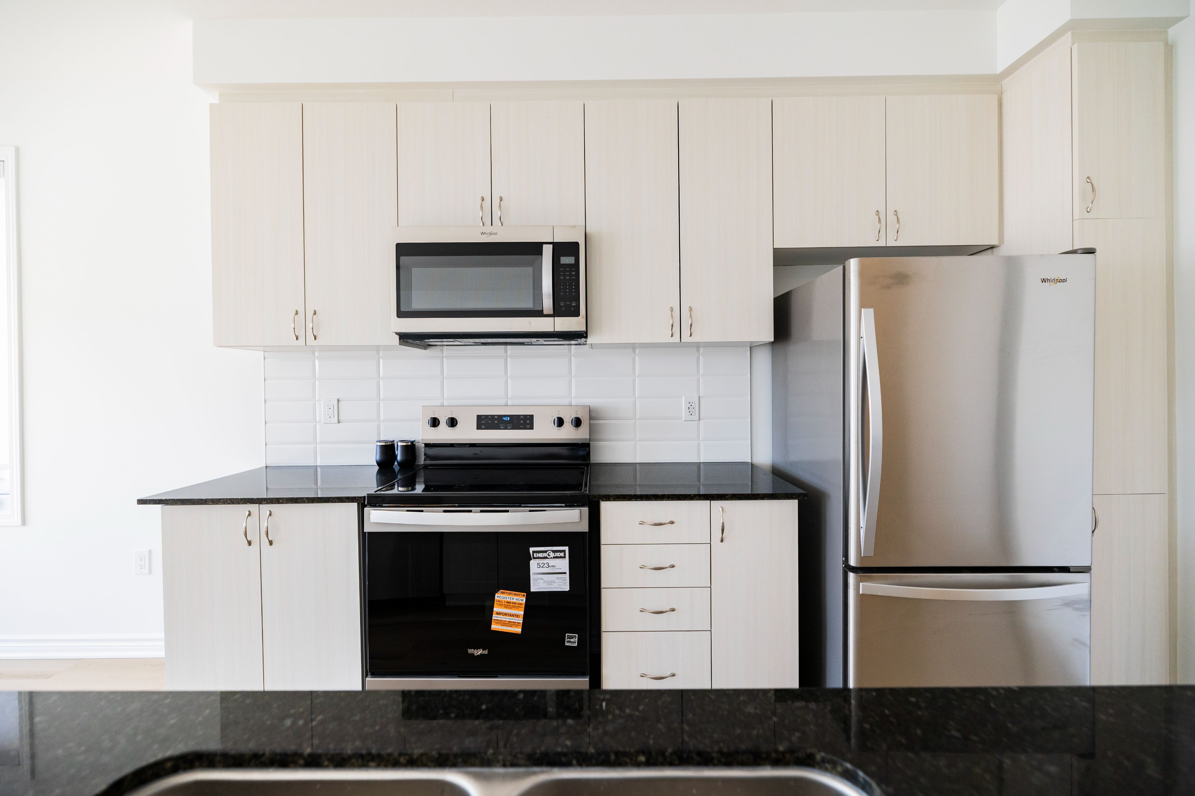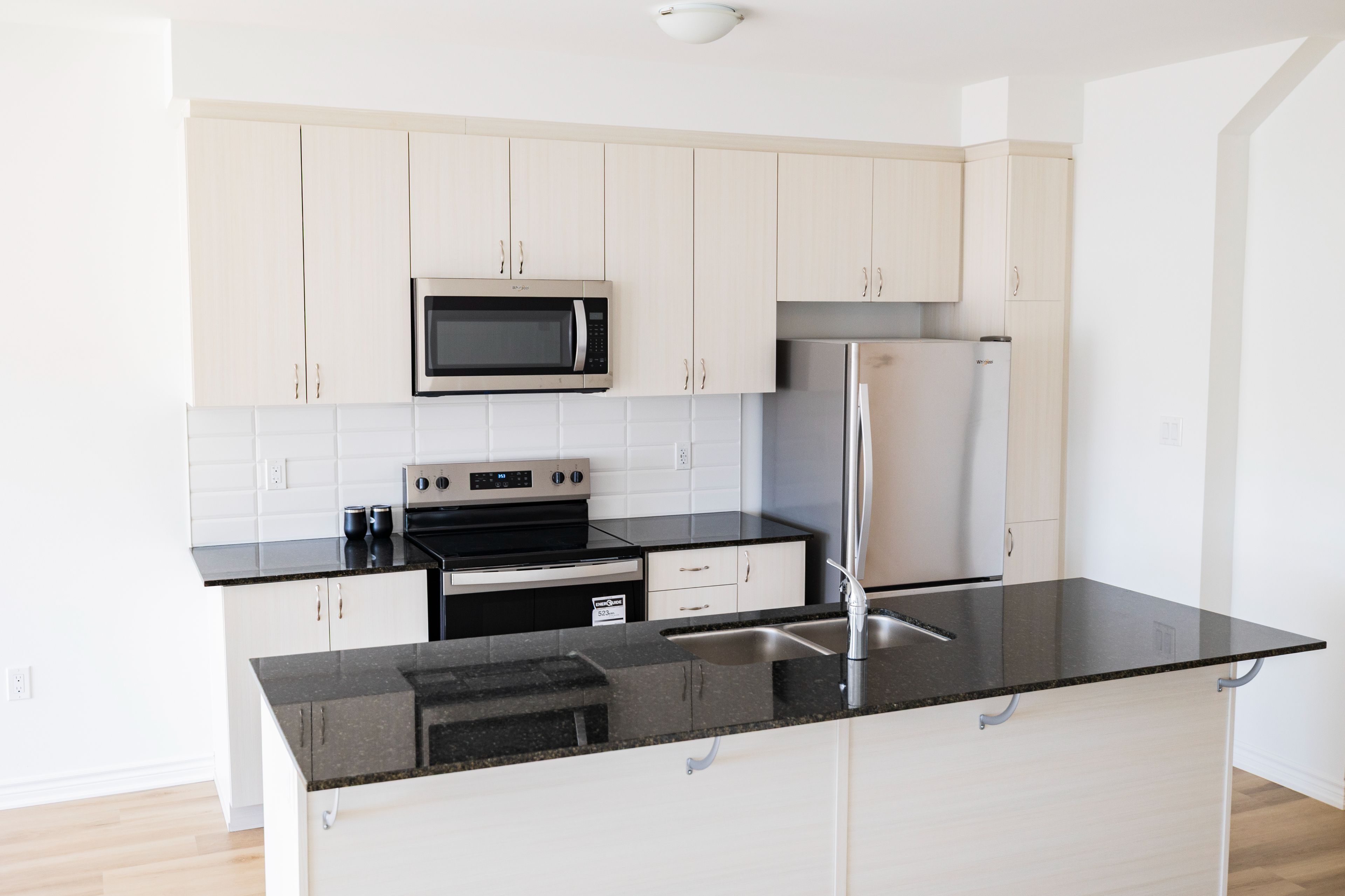 • Upgraded gourmet kitchen with quartz countertops and stainless steel appliances.
