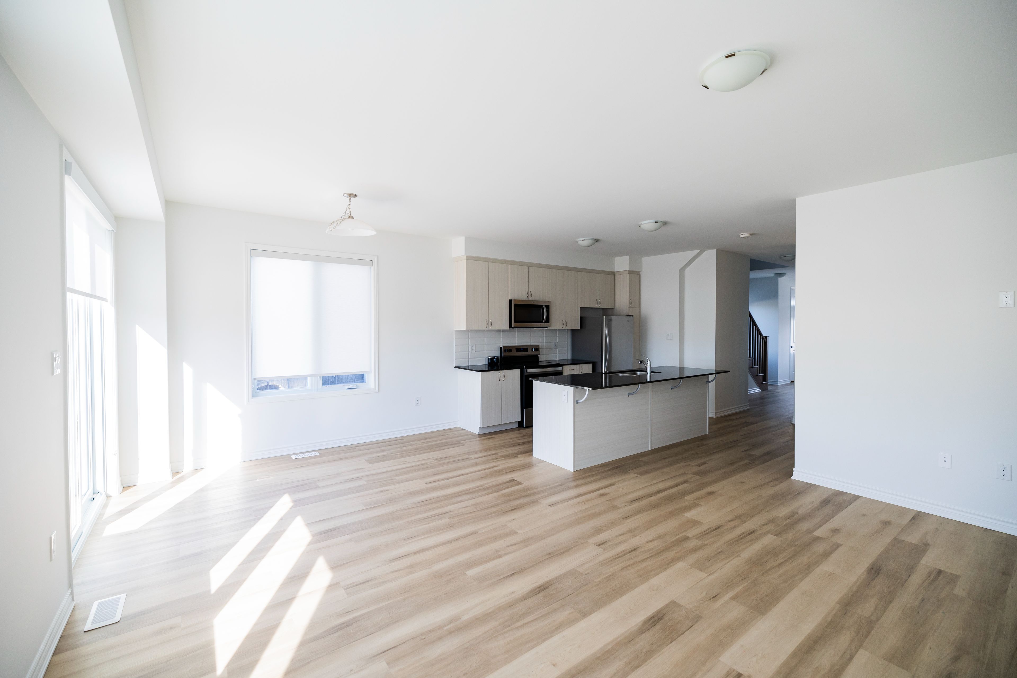 Experience refined comfort in this brand-new, never lived-in 1,829 sq. Ft. Executive corner townhome offering 4 spacious bedrooms and 3 bathrooms. Designed for modern living, this carpet-free home features 9-ft ceilings on both the main and second levels, creating a bright, open, and upscale atmosphere throughout. With its north-east exposure and additional corner windows, the home enjoys an abundance of natural light all day, enhancing the elegant living spaces. The upgraded gourmet kitchen blends style and functionality with quartz countertops, stainless steel appliances, zebra blinds, and generous cabinetry, complemented by a sun-filled open-concept dining and living area-perfect for entertaining or relaxed everyday living. The great room features a media-ready wall with integrated cat6 wiring, ideal for high-speed streaming, gaming, or a seamless work-from-home setup. An elegant oak staircase leads to the second level featuring hardwood flooring throughout, beautifully finished bathrooms, and the convenience of second-floor laundry. The spacious primary suite offers a private ensuite, providing comfort and privacy. Additional highlights include a practical mudroom with walk-in closet access from the garage and thoughtful storage throughout. Situated in a family-friendly neighborhood with a park nearby for children and outdoor enjoyment, this home offers the perfect balance of peaceful living and everyday convenience. Available april 1, 2026. Easy showings via lockbox. Tenant pays 70% of utilities.