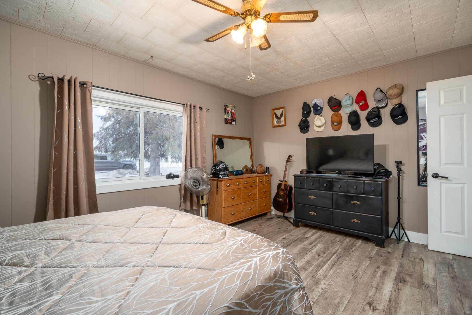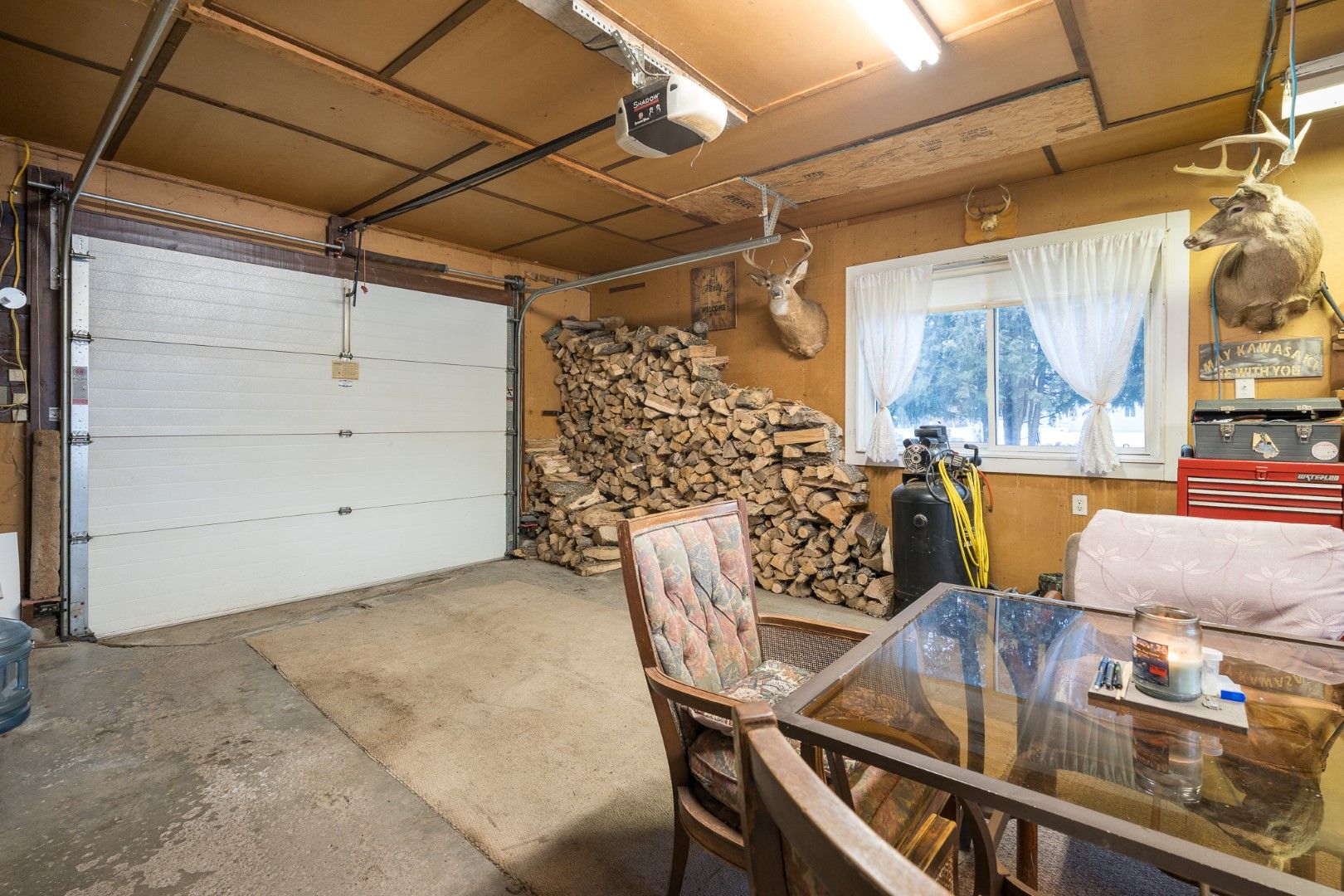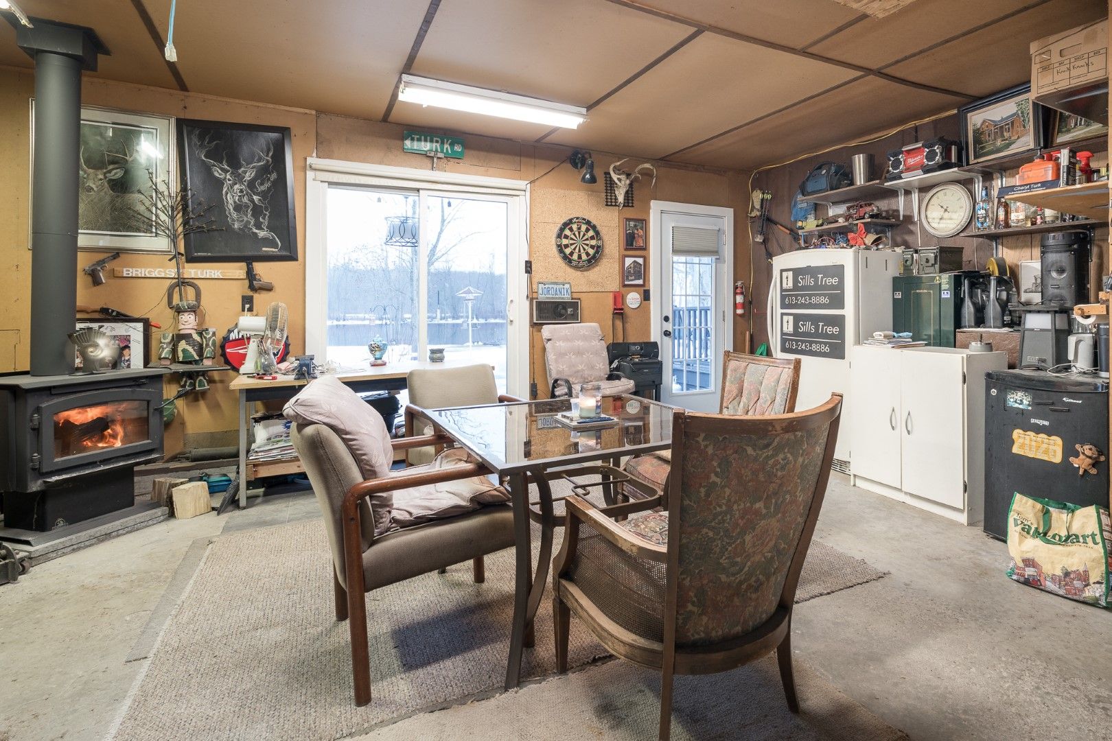 • Attached garage converted to a Man Cave with fireplace.