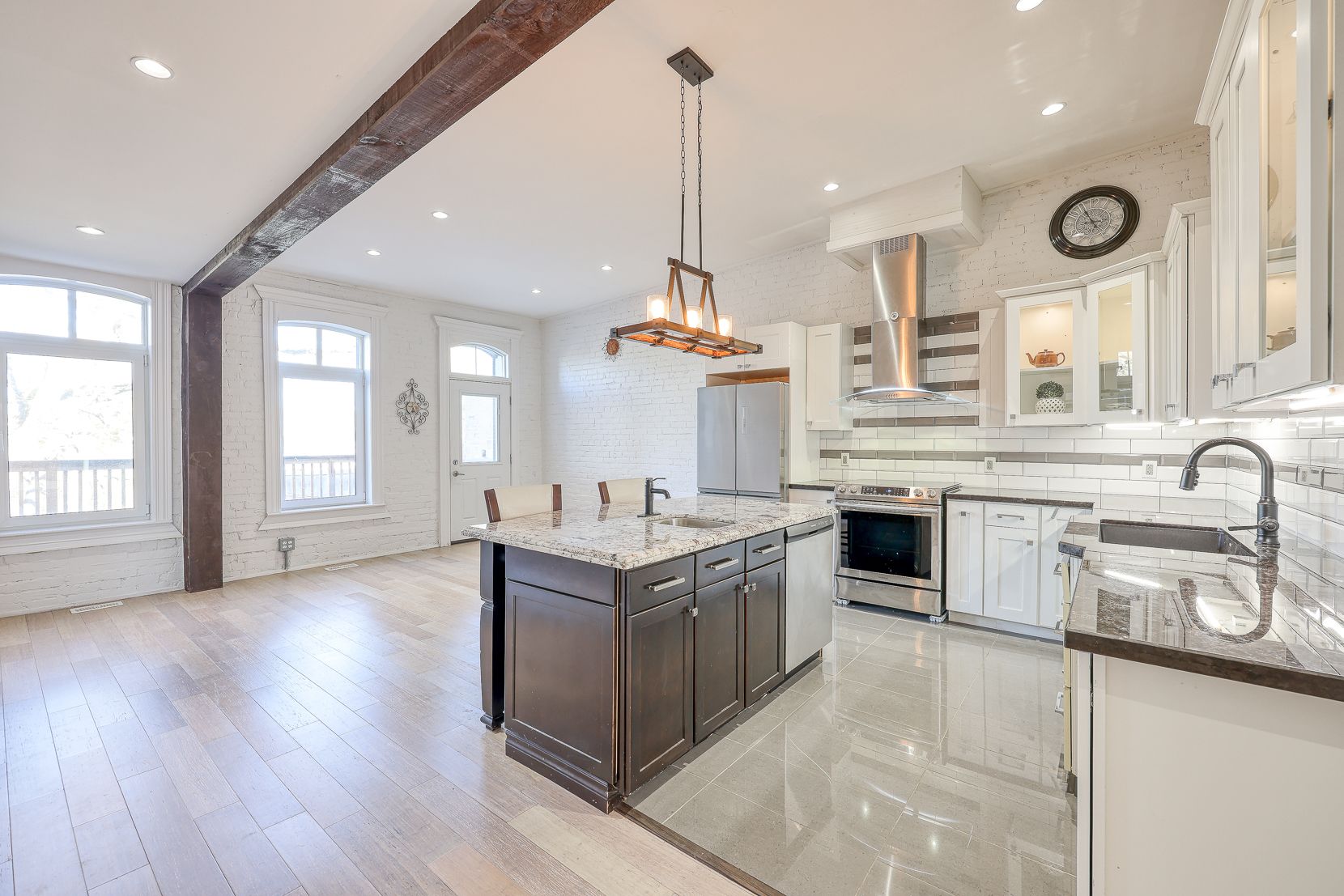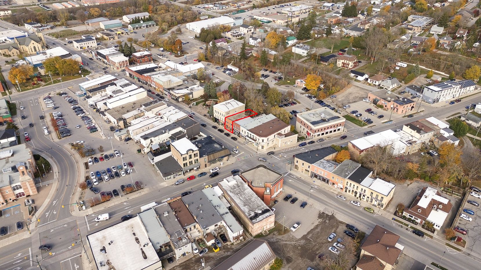 Prime location in downtown ingersoll! New listing new price! Fabulous opportunity to own a centrally located commercial building in the heart of ingersoll's downtown. Property offers excellent visibility, core pedestrian traffic, and flexible central commercial zoning. A wide variety of permitted uses include: retail, professional office, food service, and medical. The building features 2 separate commercial spaces on ground level (addresses are 151 & 153 thames st south) and a stunning 2-bedroom apartment with 1 bath on the upper level. The upper apartment is magazine worthy offering 11 ft ceilings, 1034 sq ft, granite kitchen countertops, gorgeous exposed brick walls, bamboo flooring, a luxurious 4 piece bath w/ clawfoot tub & glass shower, stylish european windows draw in natural light & cool breezes, and a wooden beam adds a beautiful rustic appeal to the space. There's also an utility closet w/ furnace & water heater, in-unit stackable washer/dryer, and stainless steel appliances including, dishwasher, fridge, stove, and range hood w/glass canopy. Step out from the kitchen onto a generous sized deck that offers peaceful views of the trees and soothing sounds from the river below. 151 thames is approx 462 sq ft, has a 2 pc bath, laundry room, and has been renovated with modern upgrades, plumbing, new wiring, and drywall (currently being leased as a hair salon), this unit has access to basement from a man door inside the unit, this is where the furnace, water heater and electrical panel can be found. 153 thames is approx 488 sq ft has a 2 pce bath, and has been fully renovated with a coffered ceiling, updated drywall, wiring, 2 piece bathroom, kitchenette, and sound barrier insulation, this unit has an basement where you will find the furnace, and electrical panel that is accessible from behind the property. All 3 units have their own hydro panel, furnace & ac, w/the furnaces owned and 2 hot water tanks rented. Tenants pay utilities in retail units.
