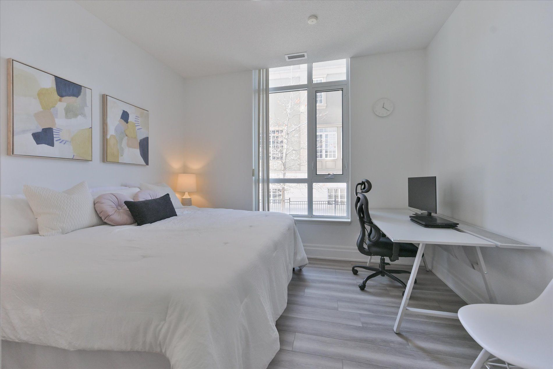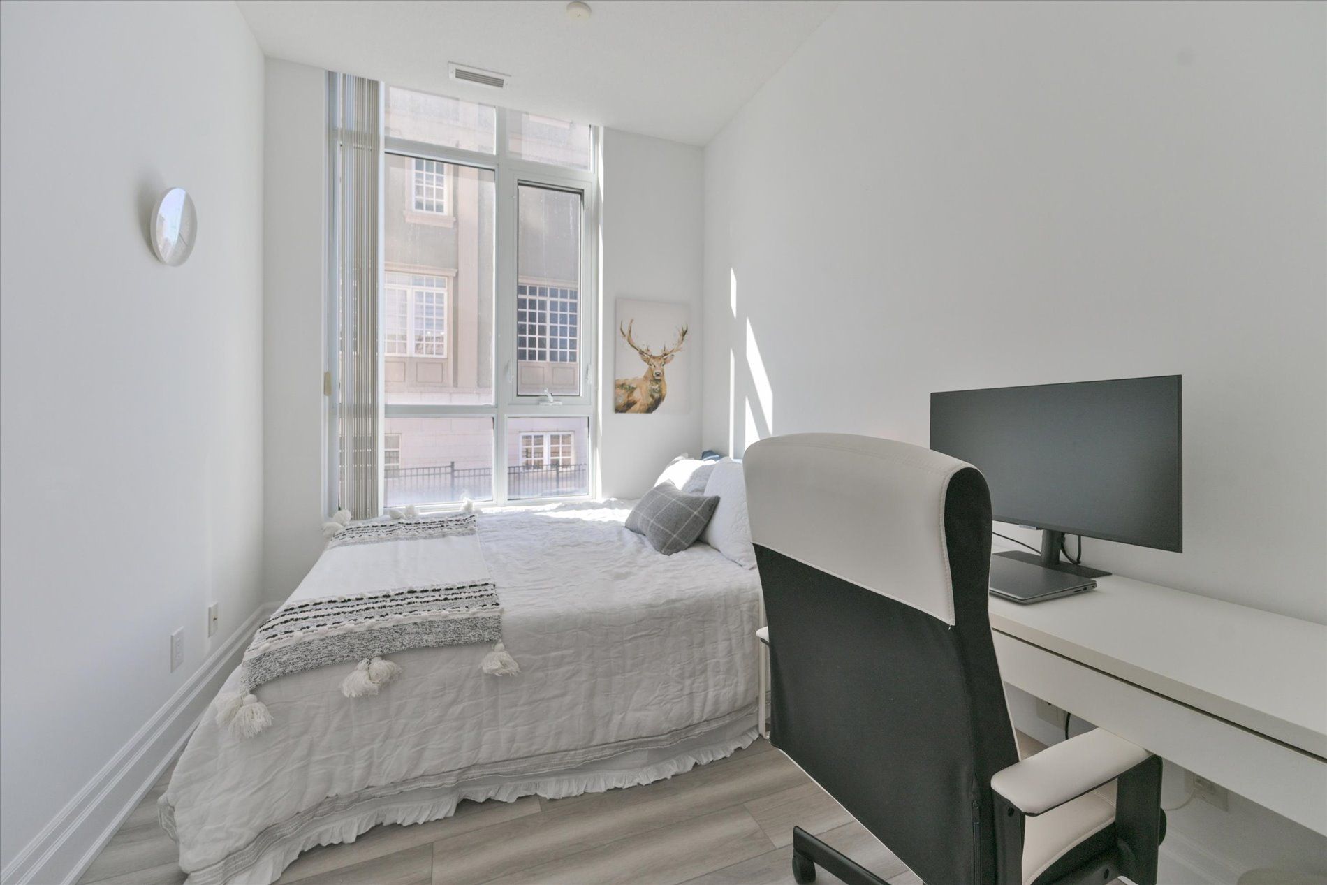 • Bright corner suite with high ceilings and large windows throughout.