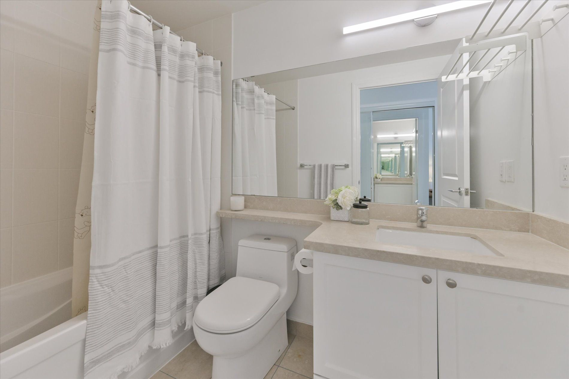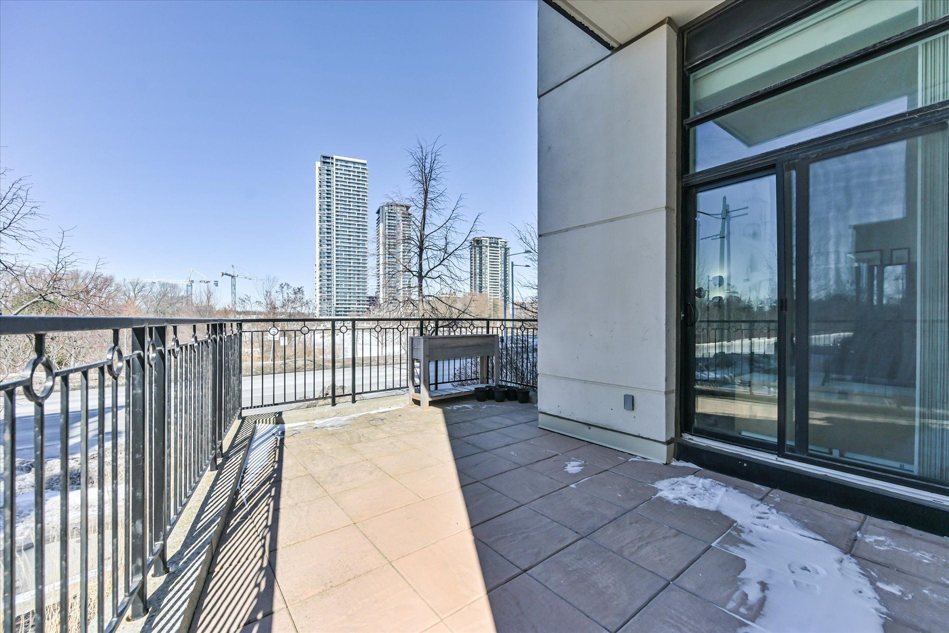 • Oversized private terrace offers views of a peaceful park and ravine.