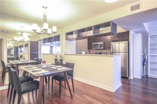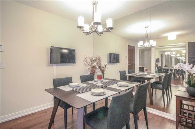 Bright and spacious 2+1 bedroom open-concept corner unit in tridel's ventus i. Floor-to-ceiling windows fill the living areas with abundant natural light. Features include laminate flooring throughout, stainless steel appliances, upgraded light fixtures, mirrored closet doors, and floor-to-ceiling wall mirrors in the den (currently used as a dining area). Enjoy premium building amenities including 24-hour concierge, alarm system, party room, fitness centre, bbq area, and outdoor terrace. Conveniently located just minutes from highways, public transit, shopping, restaurants, schools, and daycare. A perfect combination of comfort, style, and location