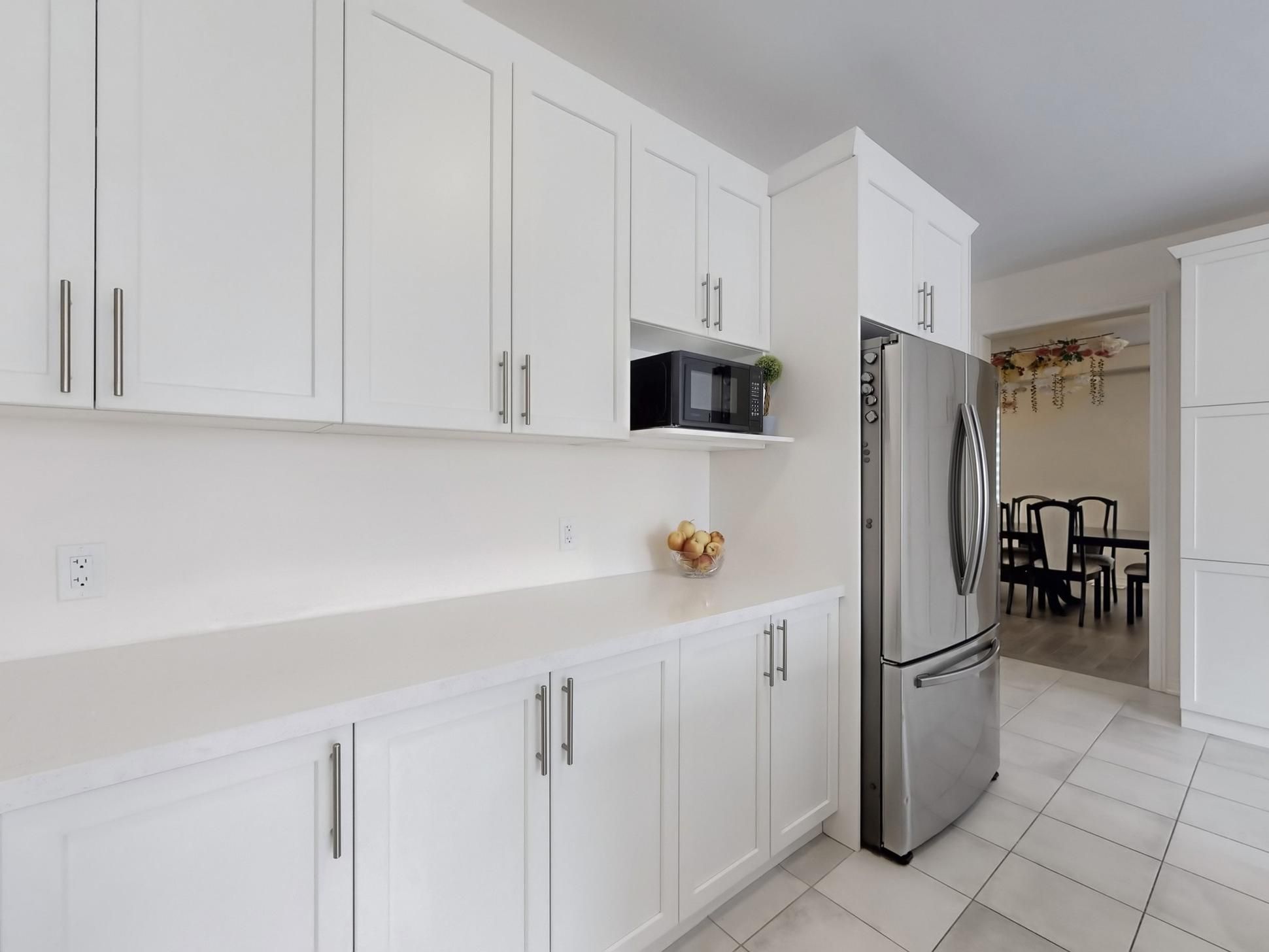 • Designer kitchen featuring quartz countertops and a walk-in pantry.