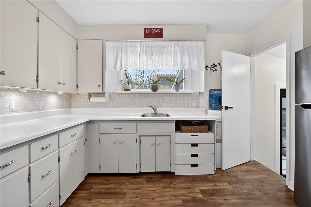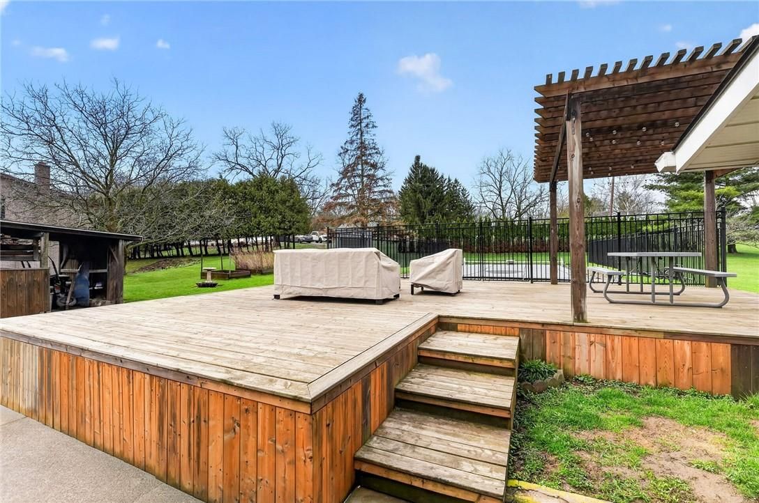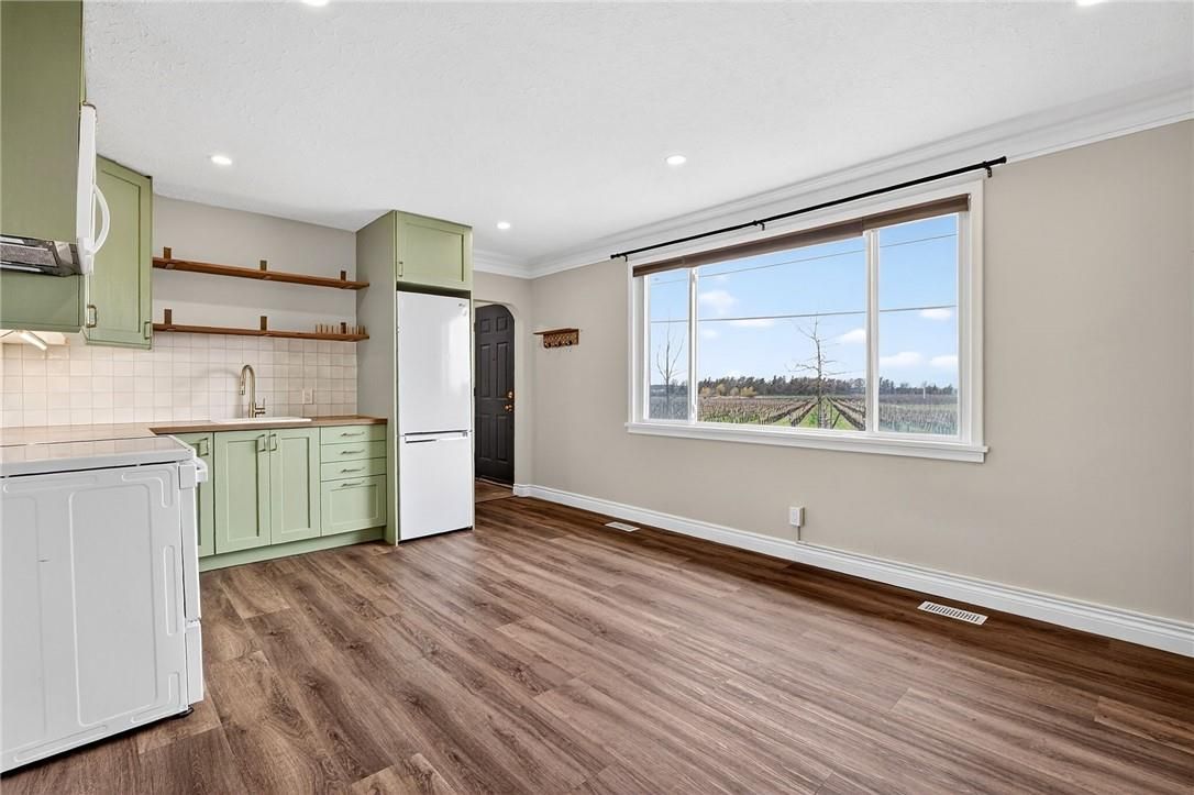 Located directly across from henry of pelham family estate winery and steps from the short hills conservation area, 1510 pelham road is a detached bungalow configured as a 3-unit home on a nearly half-acre lot in west st. Catharines - with all three units offering vacant possession on closing! The main floor houses two side-by-side units. The 1-bedroom unit features nicely updated vinyl flooring, a stunning green kitchen with ceramic tile backsplash and wood countertops, and a beautiful wood-burning fireplace (not in use) with brick mantle in the living area. The 2-bedroom unit offers original hardwood flooring in both bedrooms and the hallway, a 4-piece bathroom, and a second bedroom with a walk-in closet. The basement unit is thoughtfully constructed, featuring a deep green kitchen with gold hardware and ceramic tile backsplash, vinyl flooring, pot lights, a wood fireplace (not in use) in the living room, three egress windows, and a beautifully finished 3-piece bathroom with a walk-in shower featuring dark green ceramic tile surround, and a decorative mirror. Outside, the concrete in-ground pool is fully fenced and complemented by a deck and built-in gazebo - a natural space for outdoor entertaining. Updates: new oil furnace ('25), cistern pump ('25), sewage pump replaced ('22), and full foundation waterproofing completed approximately 12 years ago. Opportunities like this - vacant on closing, versatile, and directly across from a vineyard - don't come along often.