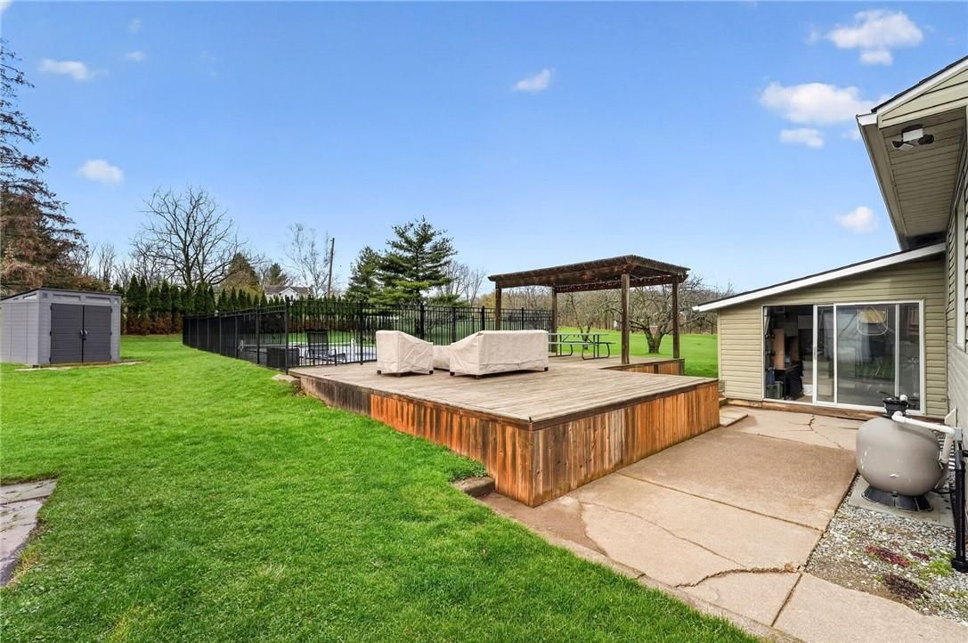 • In-ground pool with deck and gazebo, perfect for outdoor gatherings.