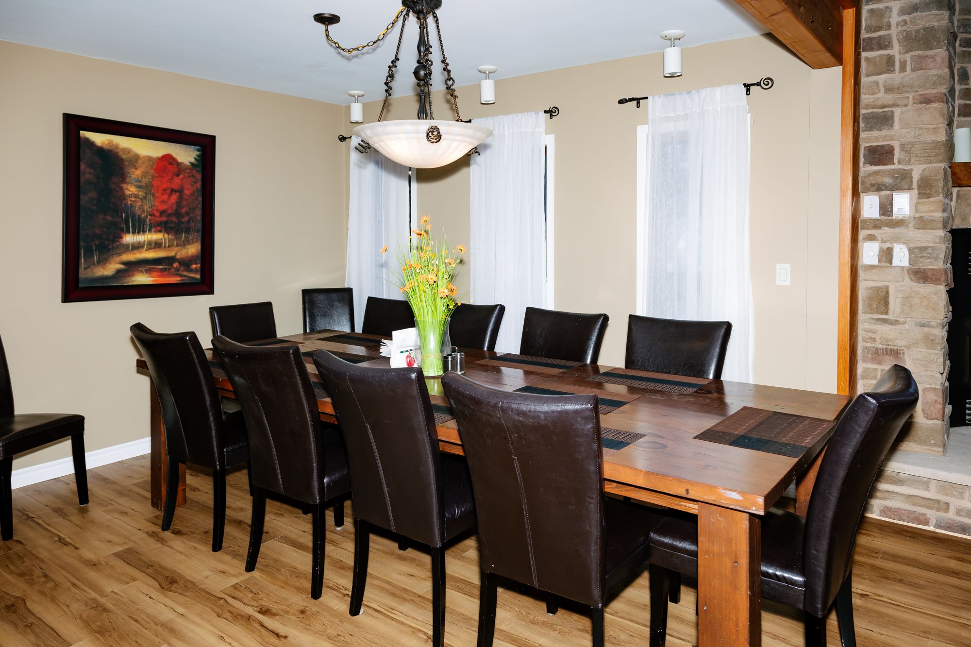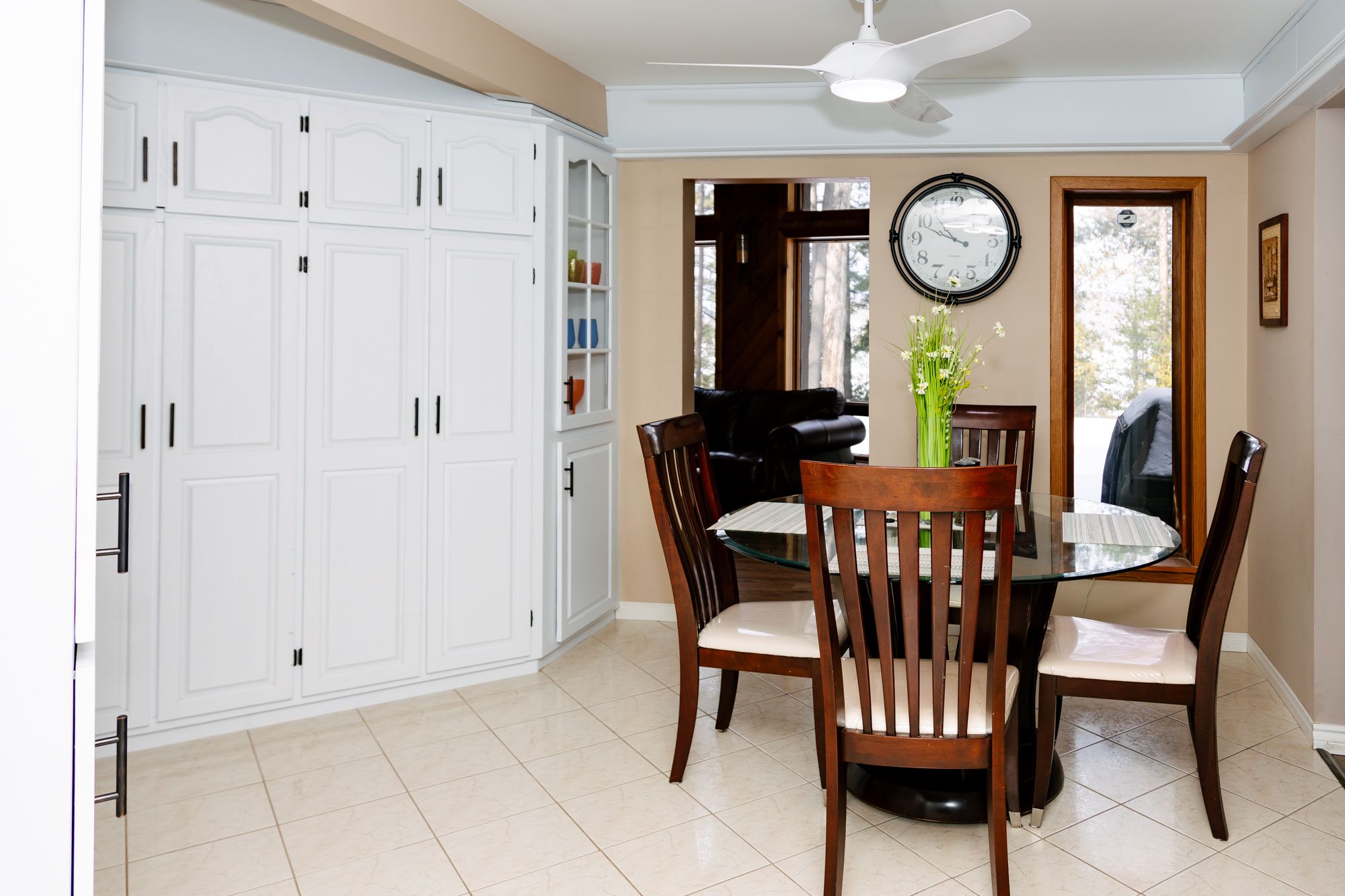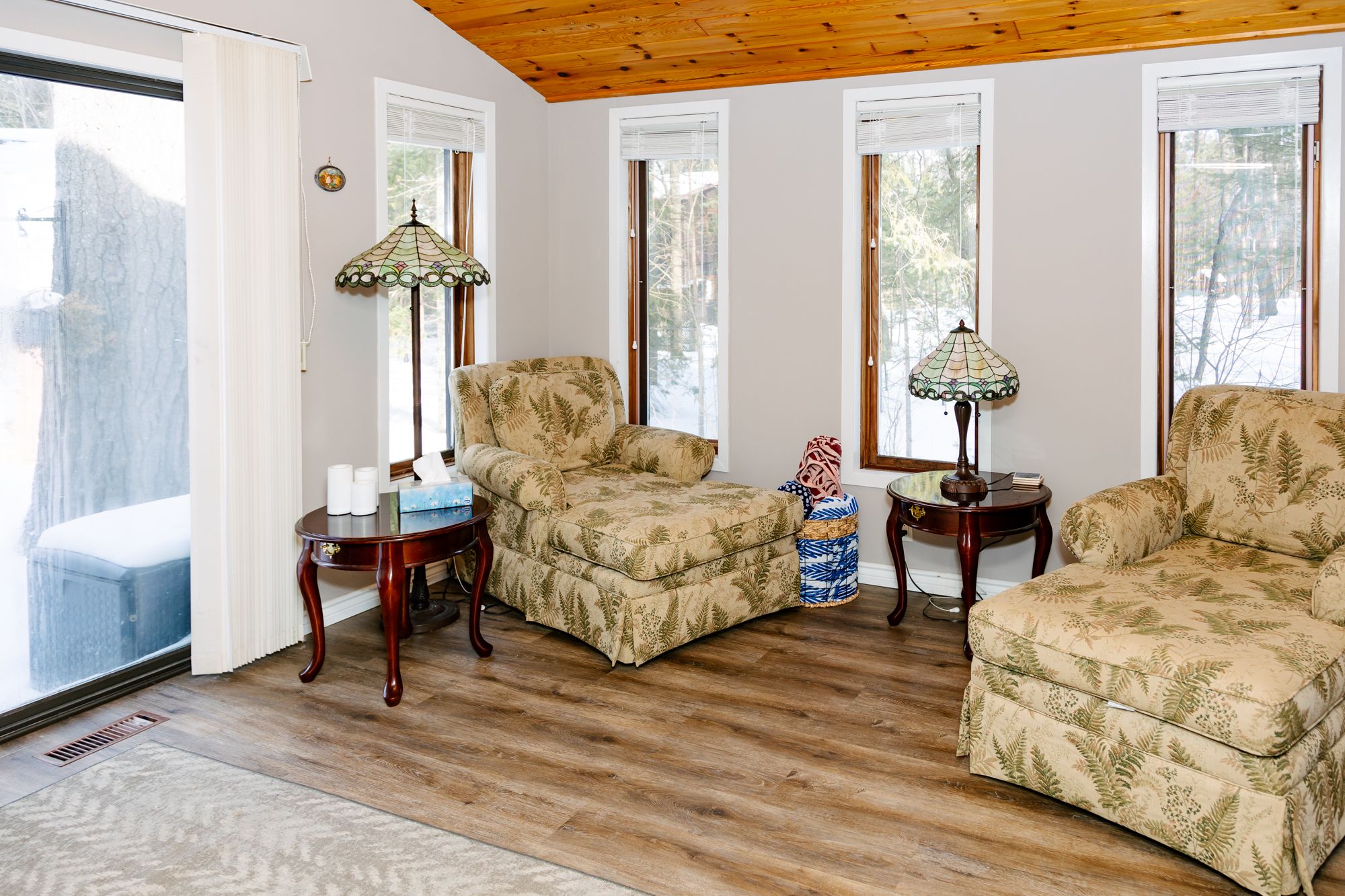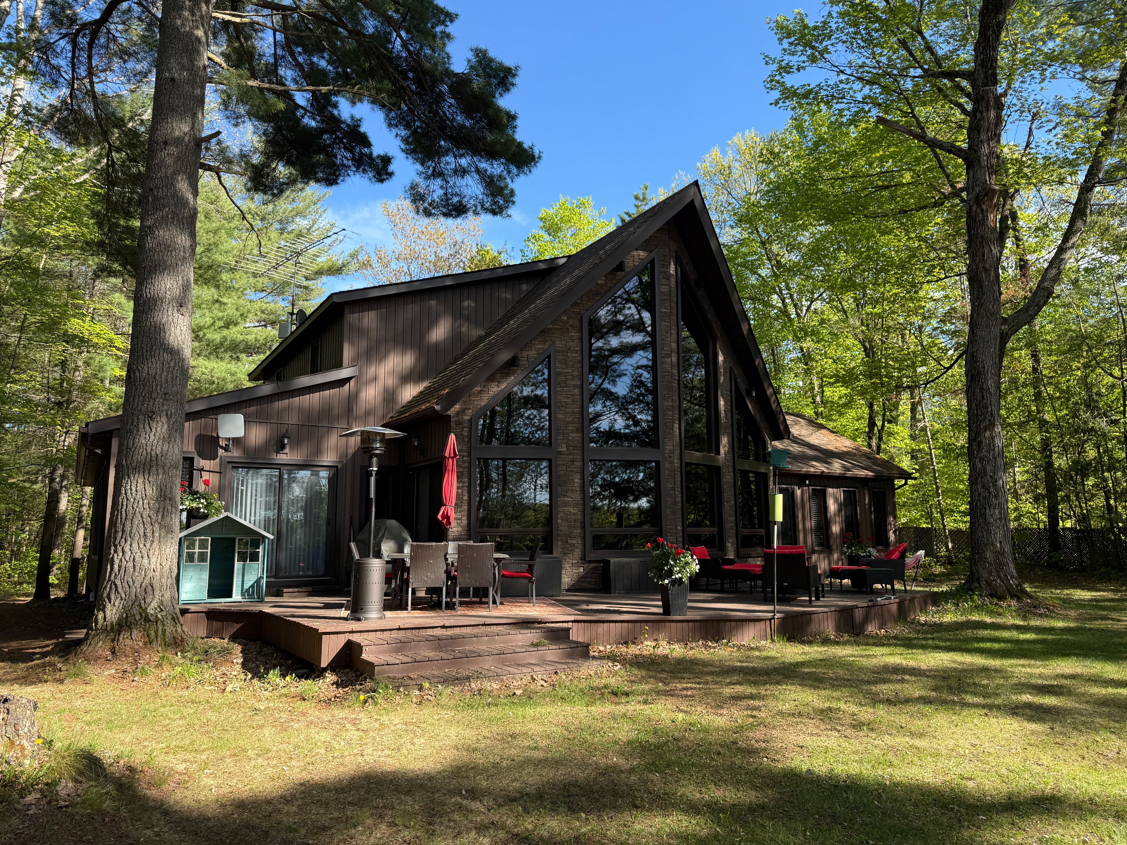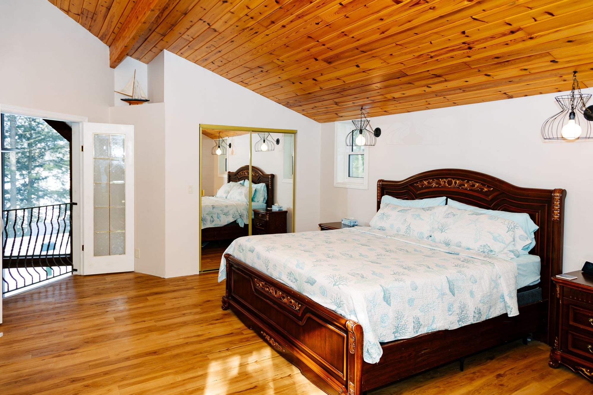 Set on a private, well-treed lot between carnarvon and minden, this spacious home offers a quiet setting just a short walk to twelve mile lake's public beach and the well-known peppermill restaurant. Positioned back from the highway for added privacy, the property also includes an 8' right of way to the lake, providing access to a beautiful shoreline and views across the desirable three-lake chain. With approximately 2,800 sq ft of living space, the home features 4 bedrooms and 3 bathrooms, with a layout that works well for both everyday living and hosting. The open-concept living room is bright and inviting, highlighted by floor-to-ceiling windows and 20' cathedral ceilings. The second-floor primary suite overlooks this space with a juliette balcony and includes its own private ensuite. Two wood stoves provide added warmth, while the generous dining area offers plenty of space to gather. A 48' x 24' garage with an attached woodshed adds practical storage and room for vehicles or hobbies. With a combination of privacy, lake access, and close proximity to local amenities, this property offers a flexible option for families or those looking to enjoy the haliburton lifestyle.
