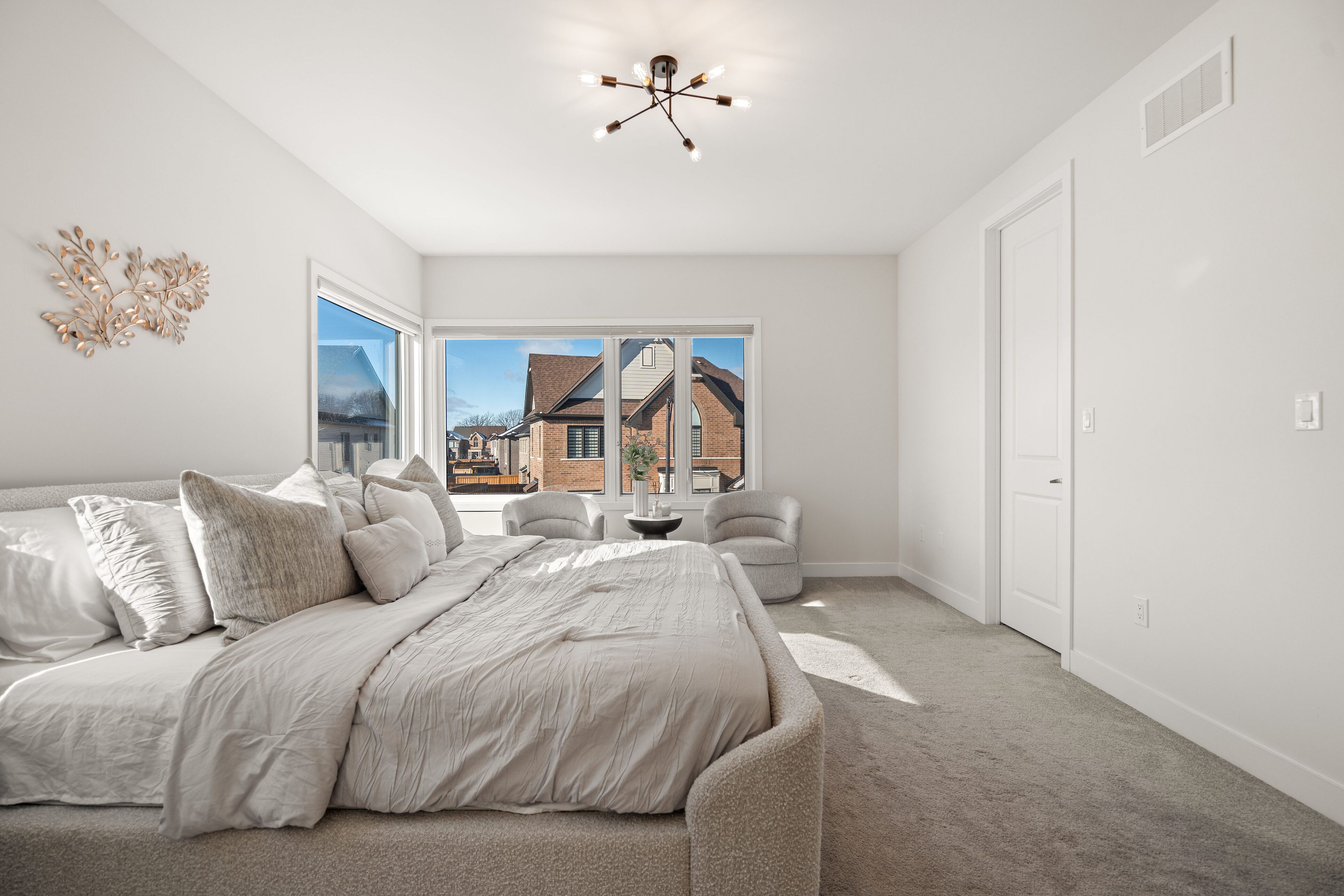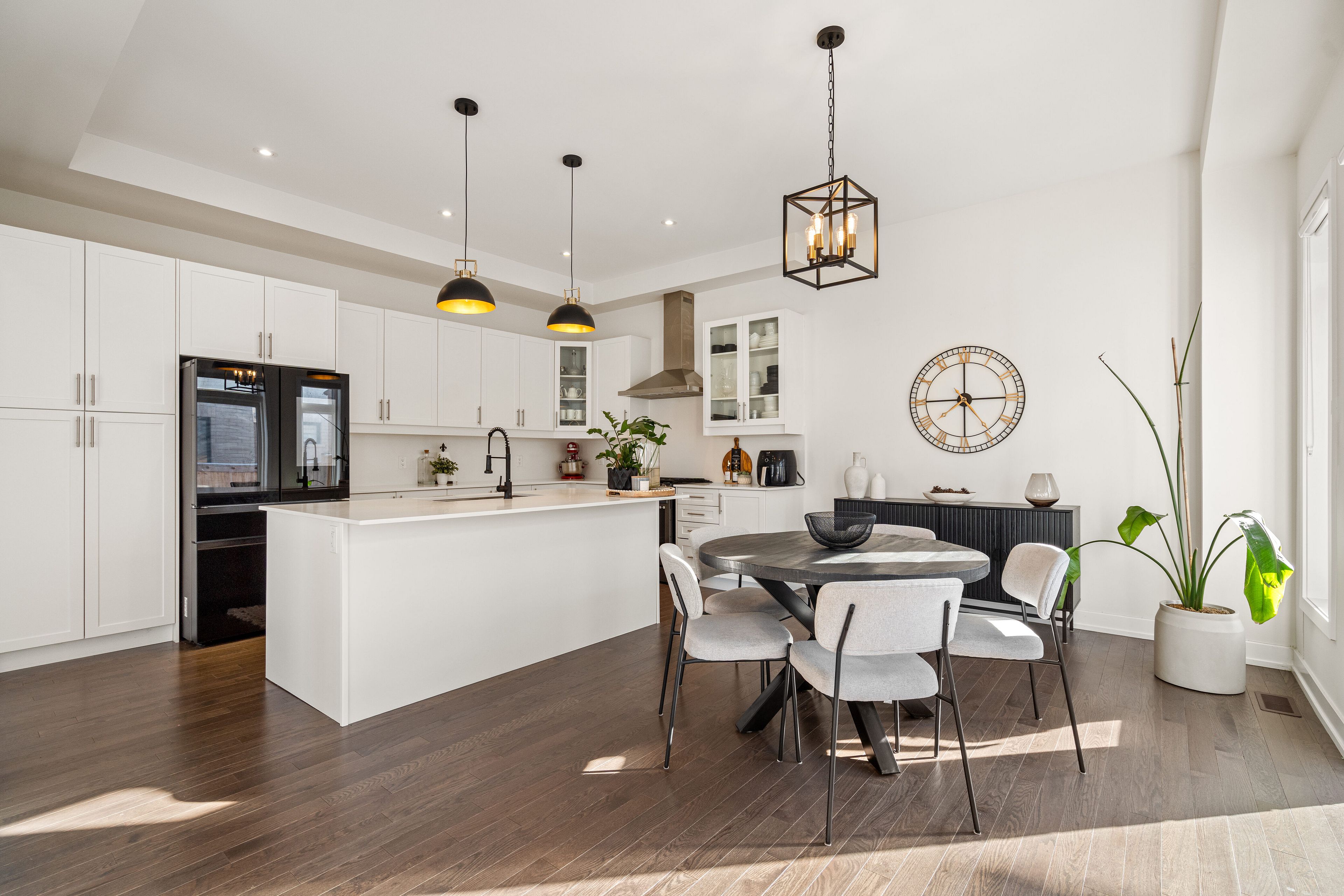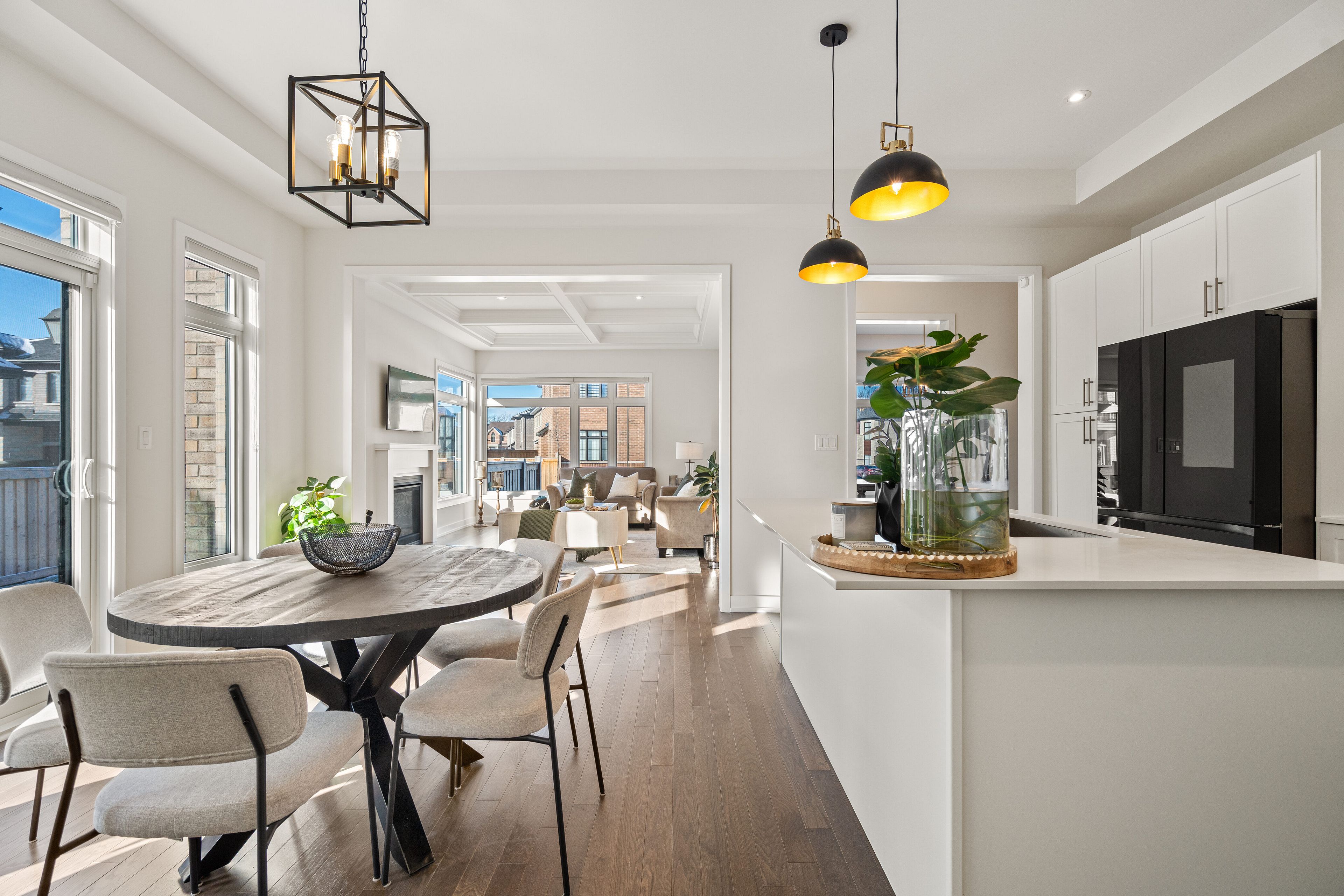 Welcome to an exceptional, upgrade-packed residence in milton, where modern elegance meets everyday comfort. Set on a premium corner lot fronting onto serene natural view of ravine & a pond, this home offers a striking modern elevation and over $250k in curated upgrades. Over 4500 square feet of living space. Step inside to soaring 10-feet main-floor ceilings, solid superior red oak hardwood, upgraded 8-feet doors and rich architectural details including a coffered dining ceiling and waffle ceiling in the living room. The open yet functional layout features separate living and dining spaces, a bright family room with a cozy natural gas fireplace and a chef-inspired kitchen with silky white quartz counters and backsplash, gas stove, premium stainless steel samsung bespoke appliances and a separate gas line ready for bbqs outdoors. Smart-home conveniences include motorized blinds, a full security/smart system, central vac rough-in, and 200-amp service with ev wiring and charger in the garage. A unique den/office with 20 feet ceiling overlooking the ravine & a pond. Upstairs, enjoy 9-feet ceilings, four spacious bedrooms, a luxurious primary retreat with a spa-style 5-pc ensuite and oversized walk-in closet, plus an upper-level laundry room for ultimate convenience. The finished basement with separate side entrance and full washroom offers incredible flexibility, ideal for an in-law suite or future legal rental conversion. Minutes to parks, trails, shopping, and highly regarded schools such as tiger jeet singh public school, hawthorne village public school, st. Bernadette ces, and craig kielburger ss, this home delivers refined living in a prime family neighborhood. Minutes away from 407, 401, & oakville.