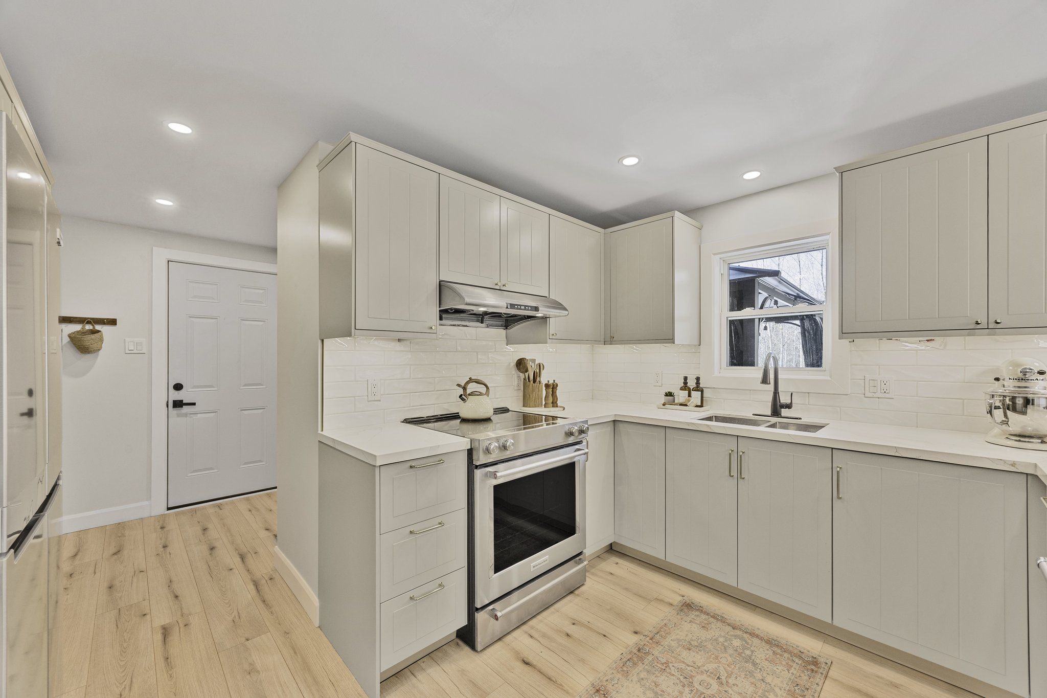Set on a private 1-acre lot (203 ft x 219 ft) surrounded by mature trees and scenic farmland, this beautifully finished raised bungalow offers space, privacy, and modern comfort-completely move-in ready. Located on a paved road with ample parking for vehicles, trailers, and toys, the home features a 13 ft x 23 ft attached garage with 9-ft ceilings and a functional mudroom off the kitchen with interior garage access, ideal for everyday country living. The exterior has been refreshed with new siding, and the rear deck has been re-faced and with new railings, creating an inviting outdoor space for relaxing or entertaining. Inside, the bright main level showcases new wide-plank flooring throughout and a brand-new kitchen, thoughtfully designed with quartz countertops, under-cabinet lighting, a coffee bar, pantry, and modern finishes. The open-concept kitchen and dining area offers a walkout to the west-facing deck-perfect for enjoying sunset views. The main bathroom features a custom tiled shower and a double-sink vanity, while the bedrooms offer large windows, generous closets, and excellent natural light. A convenient powder room completes the main level. The fully finished lower level adds valuable living space with a spacious family/recreation room, new flooring, a fourth bedroom with walk-in closet, and a laundry/storage area. Comfort and efficiency are prioritized with a bosch whole-home ducted heat pump system as the primary heating and cooling source, supported by a keeprite propane furnace as backup, along with 200-amp electrical service and a new exterior generator hookup. Additional features include a drilled well with water treatment system and a sump pump with battery backup. A beautifully maintained, move-in-ready country home offering modern finishes, thoughtful upgrades, and peaceful rural surroundings-an excellent opportunity in southgate.