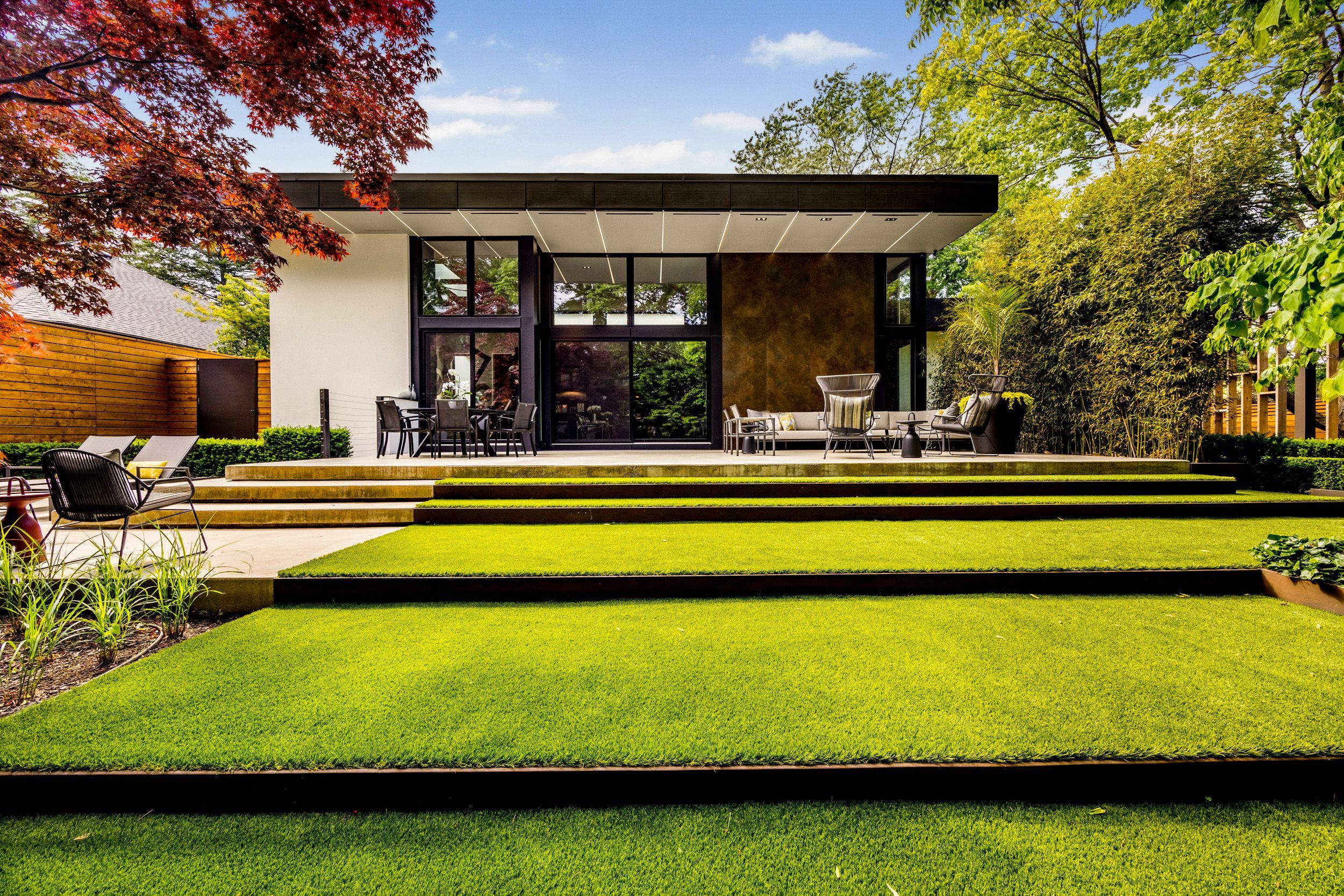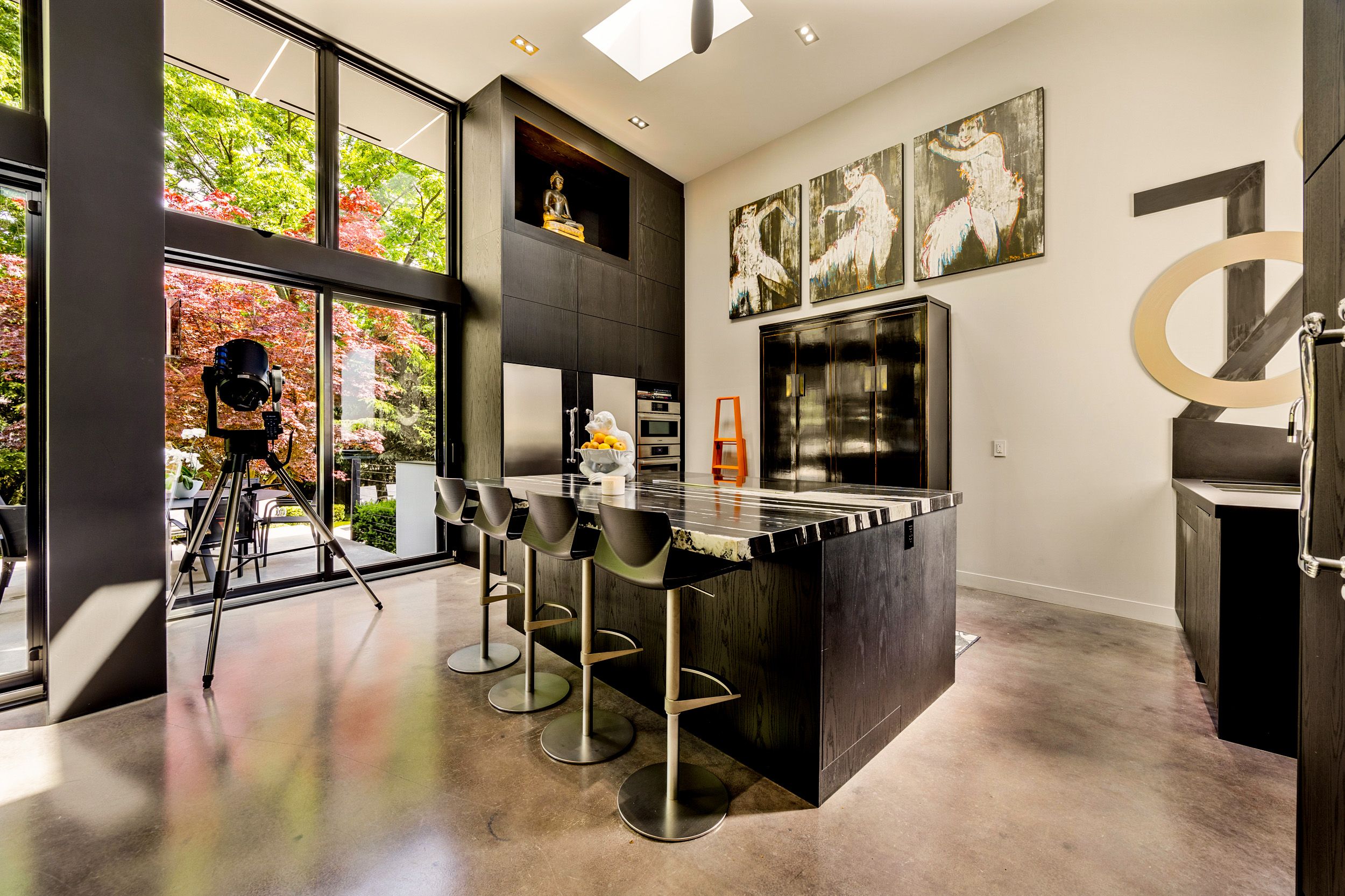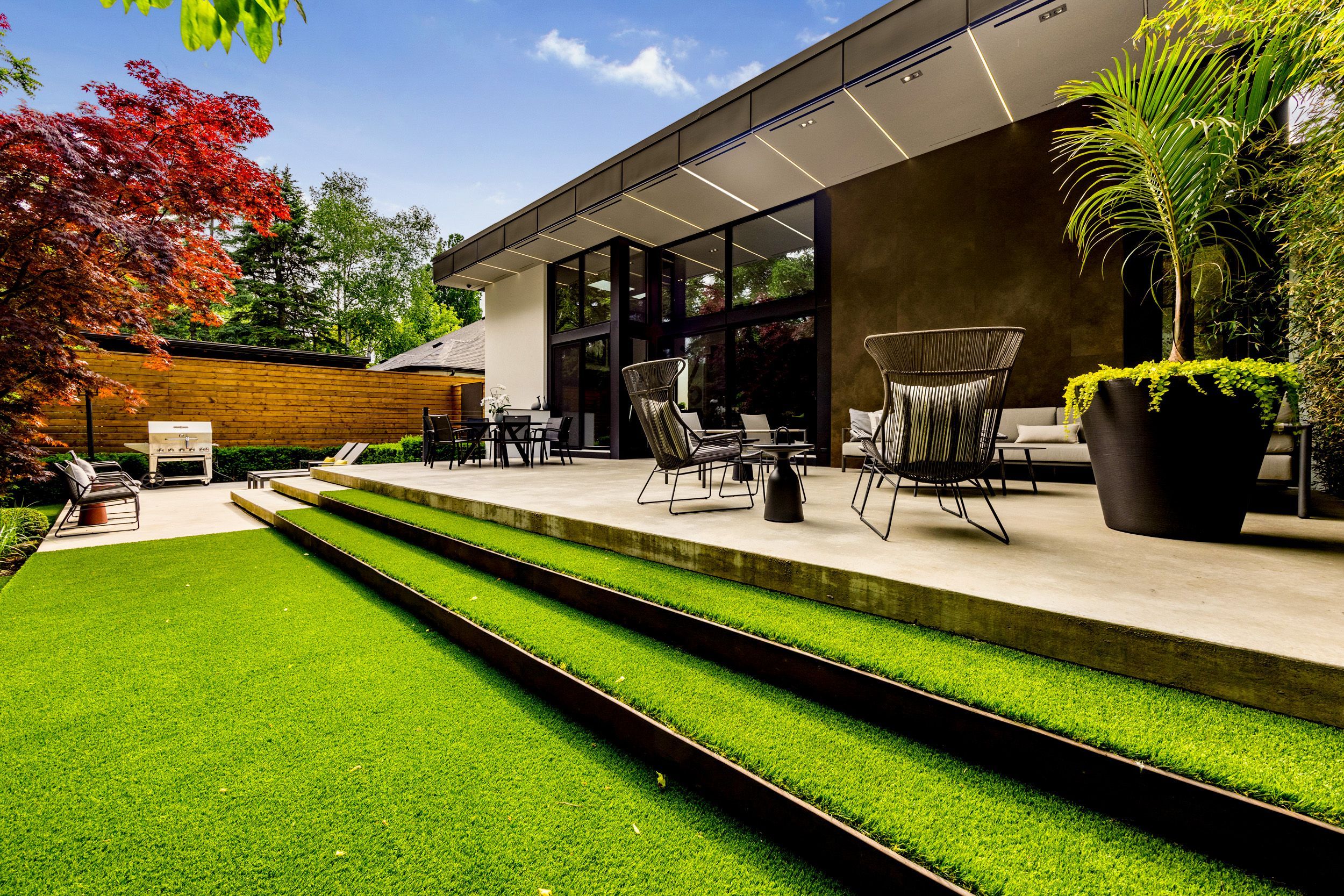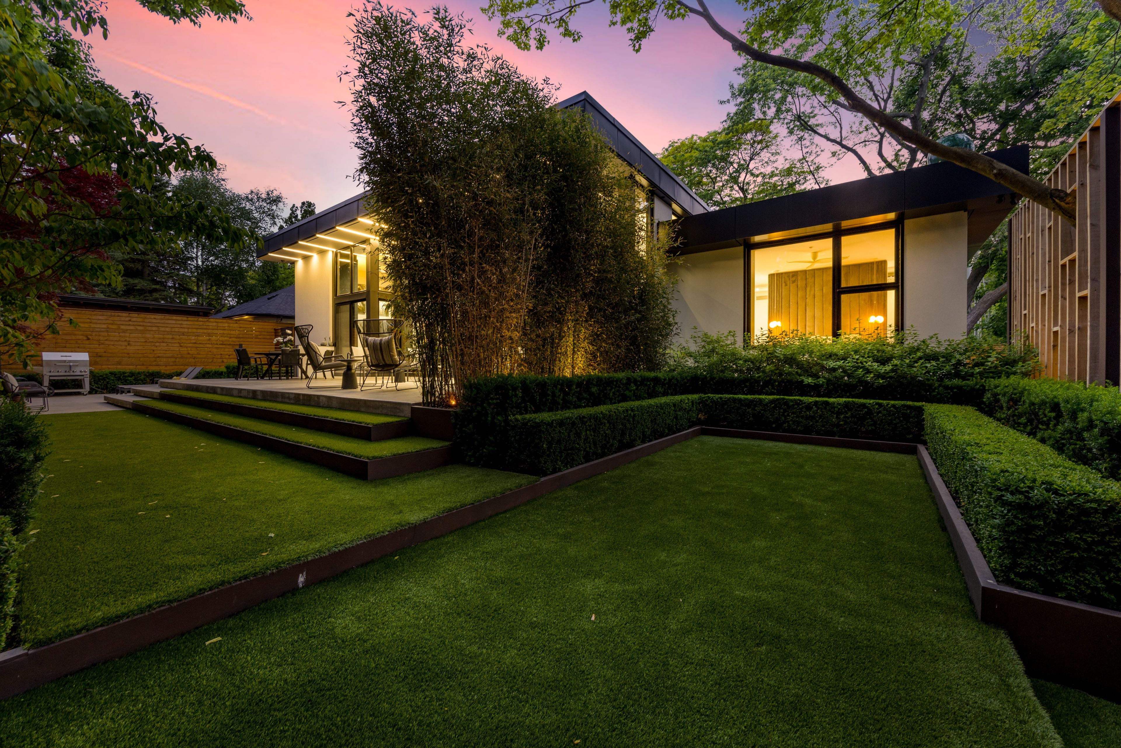 This genius custom-built bungalow has nearly 4,900 sq. Ft. Across two flawless levels, with 3+1 bedrooms and 4 baths. Every inch is designed to impress: soaring 15-ft ceilings, radiant heated concrete floors with individual sensors, retractable steel security blinds, and full genius home integration that gives you effortless control over lighting, sonos, climate, and security. The kitchen redefines luxury - seamless design, world-class function, and undeniable presence. Double ovens, a barista station, sparkling/flat water on tap, a striking wet bar, and custom cabinetry throughout. Outdoors, the innovation continues with a full-property snow melt system, a heated oversized patio, faux turf for effortless maintenance, a bamboo courtyard, gas fireplace, and built-in acoustic speakers-crafted for year-round entertaining. The lower level transforms into a private club: a granite-clad wet bar with dishwasher, guest suite, versatile family room, and a tiered theatre with a power-sliding door, 10 screen, and surround sound. An elevator connects it all -from the basement to a rooftop oasis unlike anything else. The primary suite is pure serenity. Overlooking a private bamboo courtyard and outdoor fireplace, it offers a spa-like ensuite featuring a deep soaker tub, toto wash-let toilet, and floor-to-ceiling stained-glass window. This residence redefines what it means to live without compromise, blending luxury, technology, and design into one unforgettable experience. Follow your dream, home.